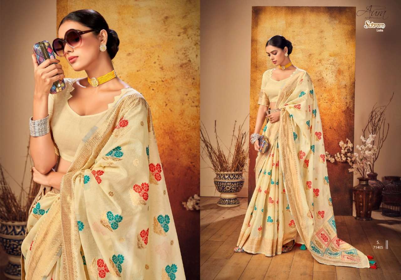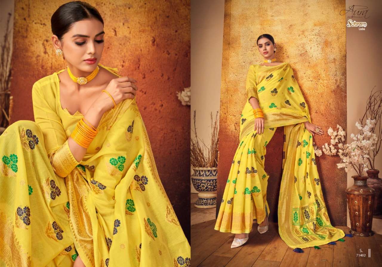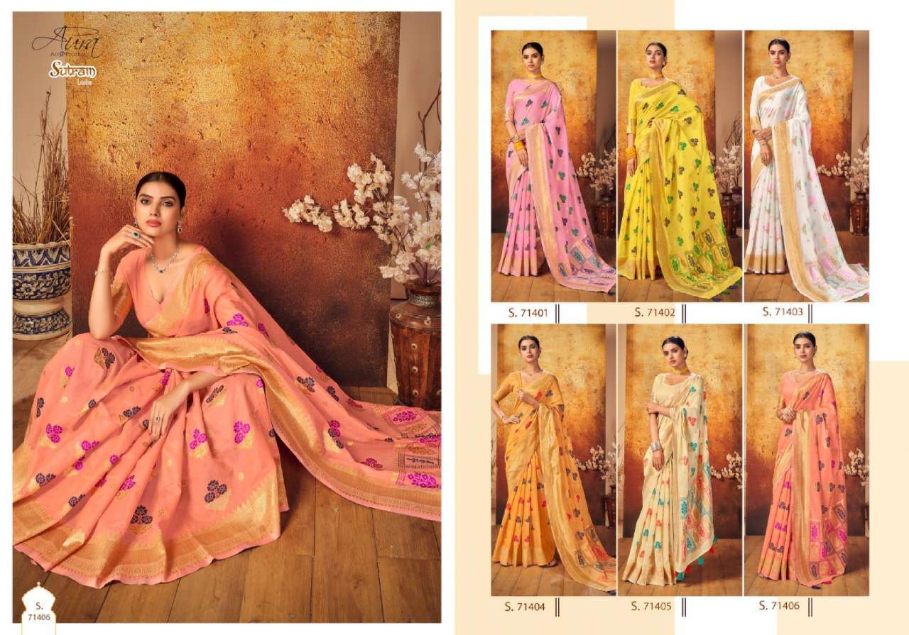 Aura Sutram lesha soft cotton summer wear sarees wholesaler