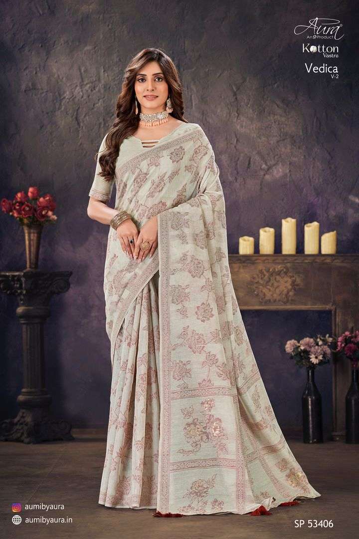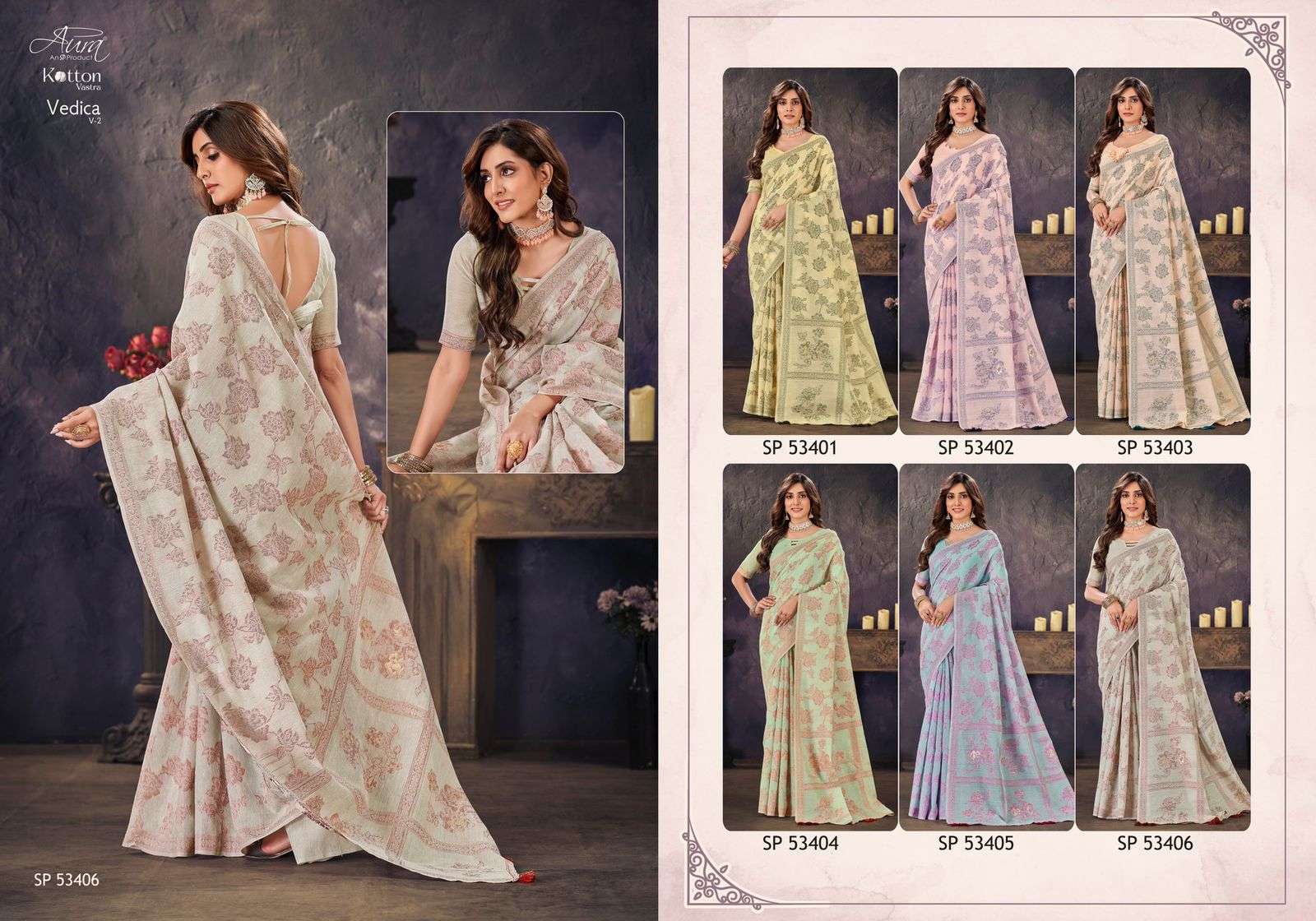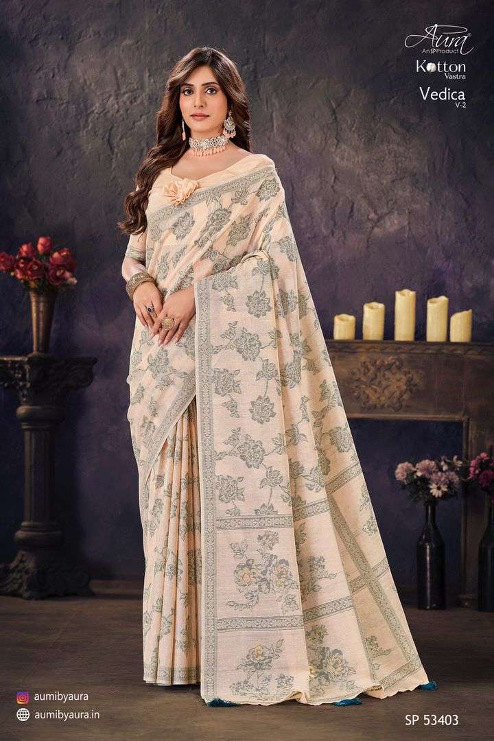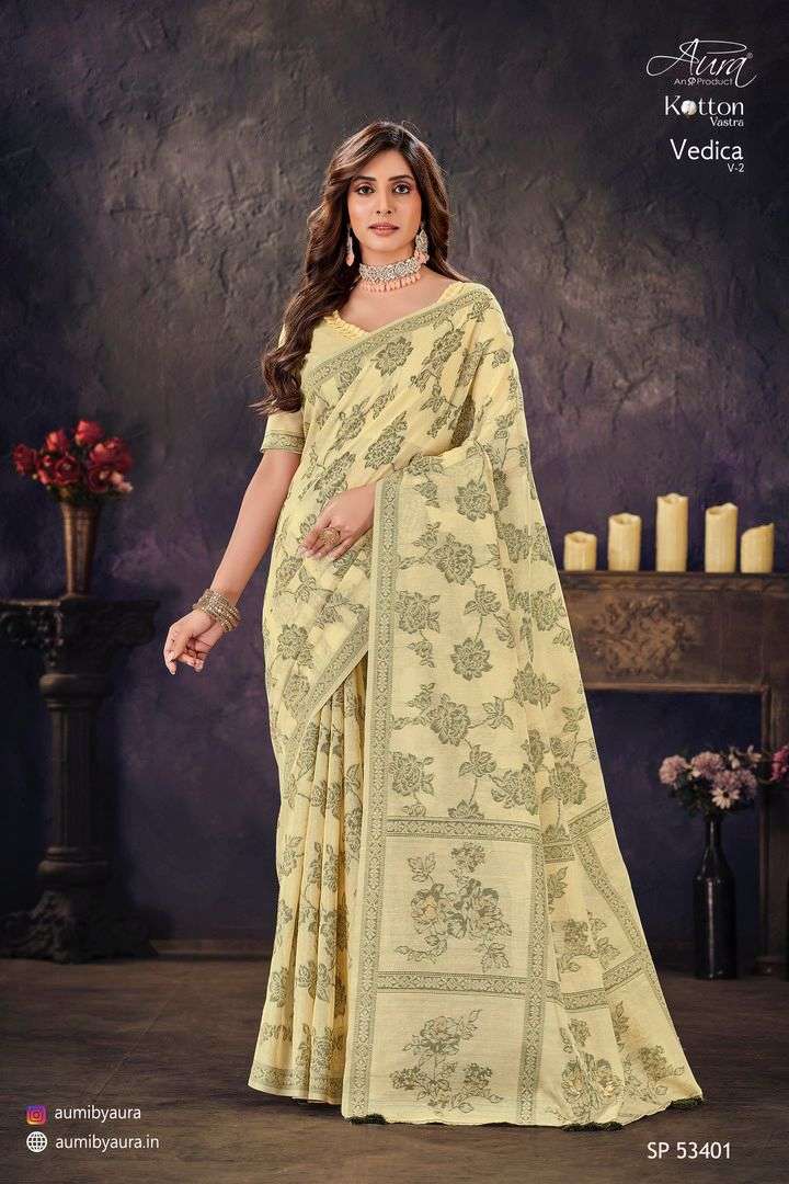 aura vedica vol 2 kotton vastra printed saree online wholesaler