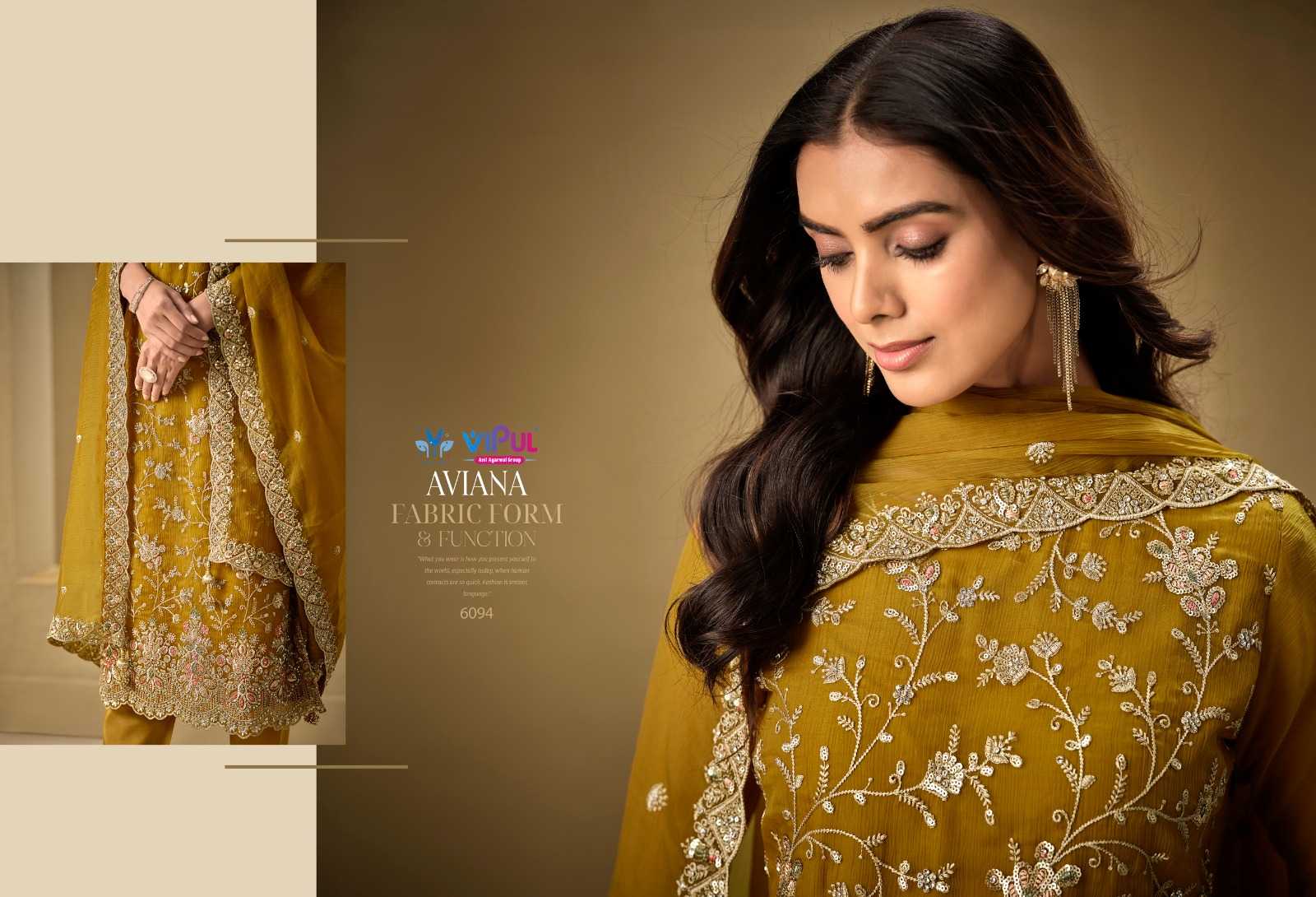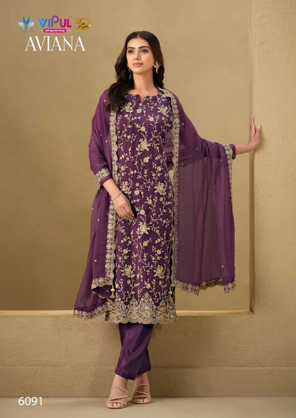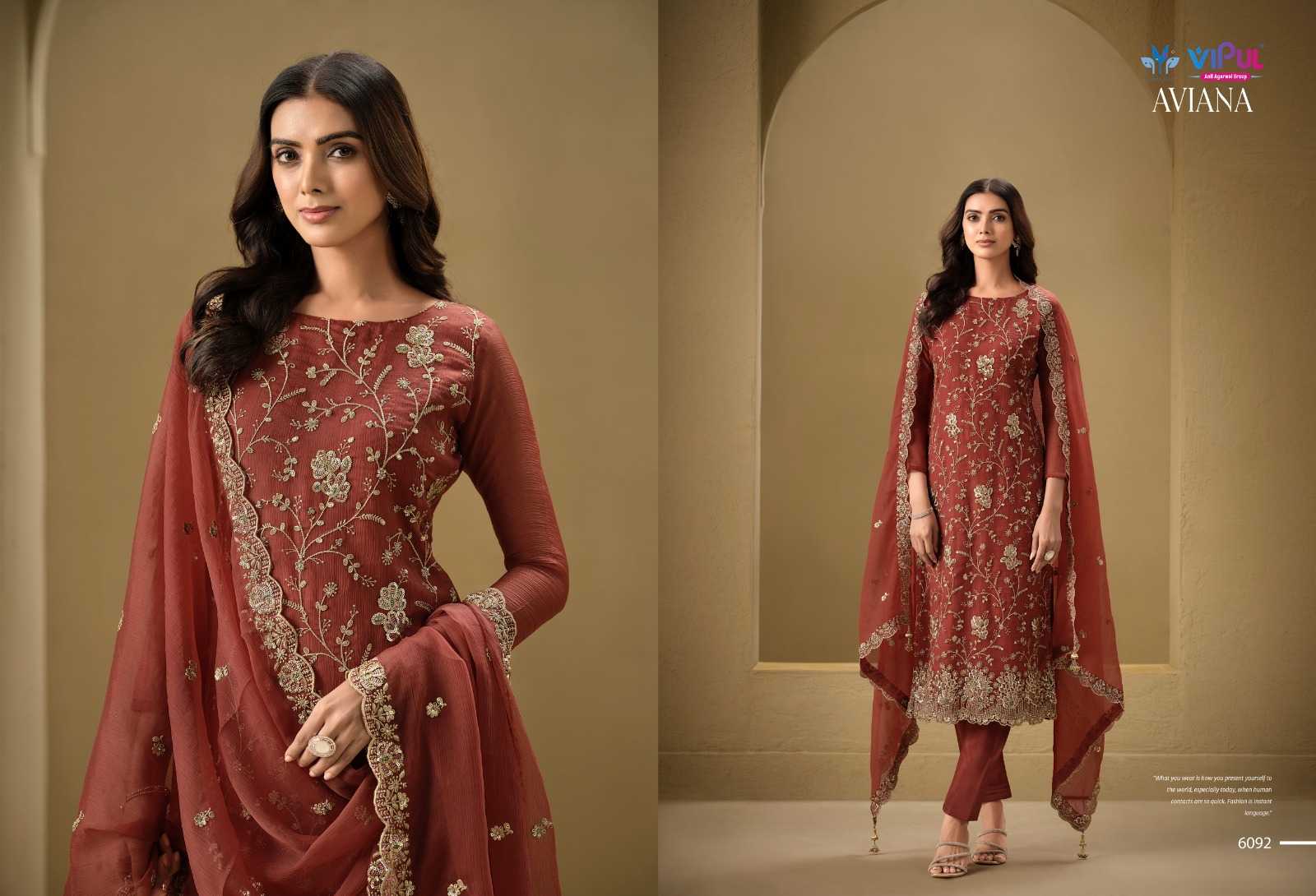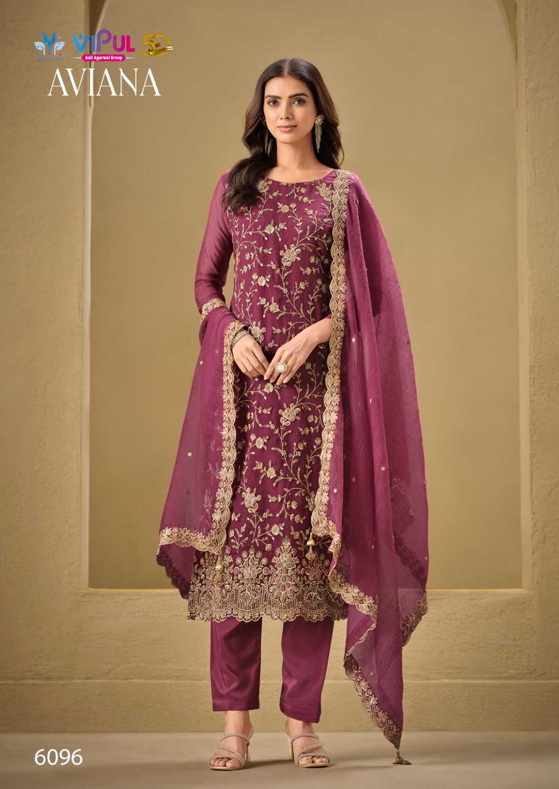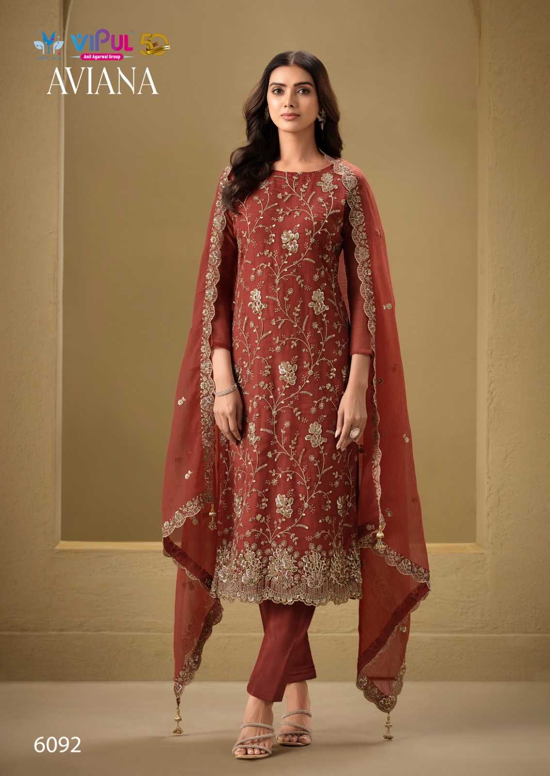 aviana by vipul fashion jarkan work organza chiffon trendy suits