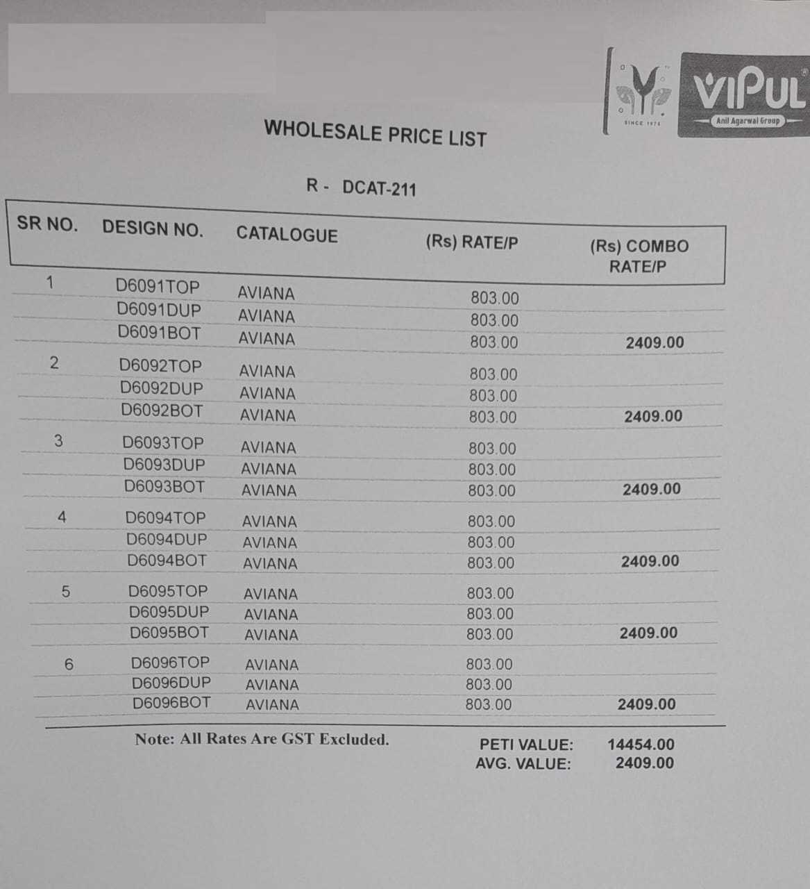 AVIANA by Vipul FABRIC & PRICE LIST ATTACHED |