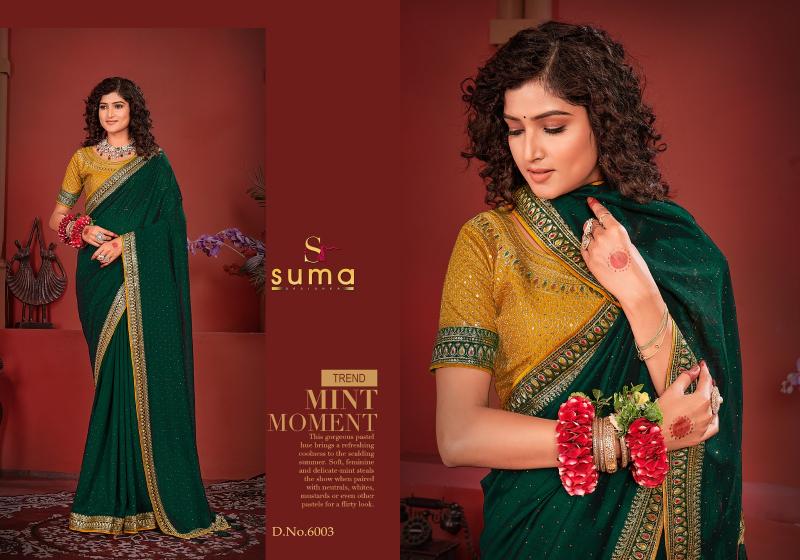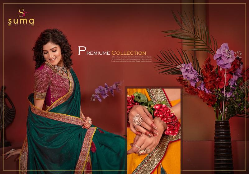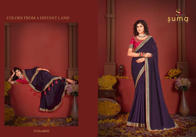 SALE SALE SALE SALE Brand : Suma Catalog Name: Avikya Series: 6001 To 6010 Saree Fabric: Vichitra Bluming Saree with Embroidery border & adorned with intricate Swarovski crystal work Blouse Fabric : Raw Silk With Embroidery Work Rate: 1370/- +5% Gst Occasion: Festival Wear,Party wear |