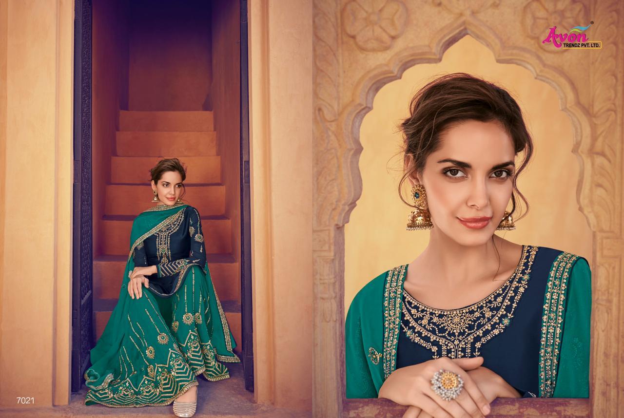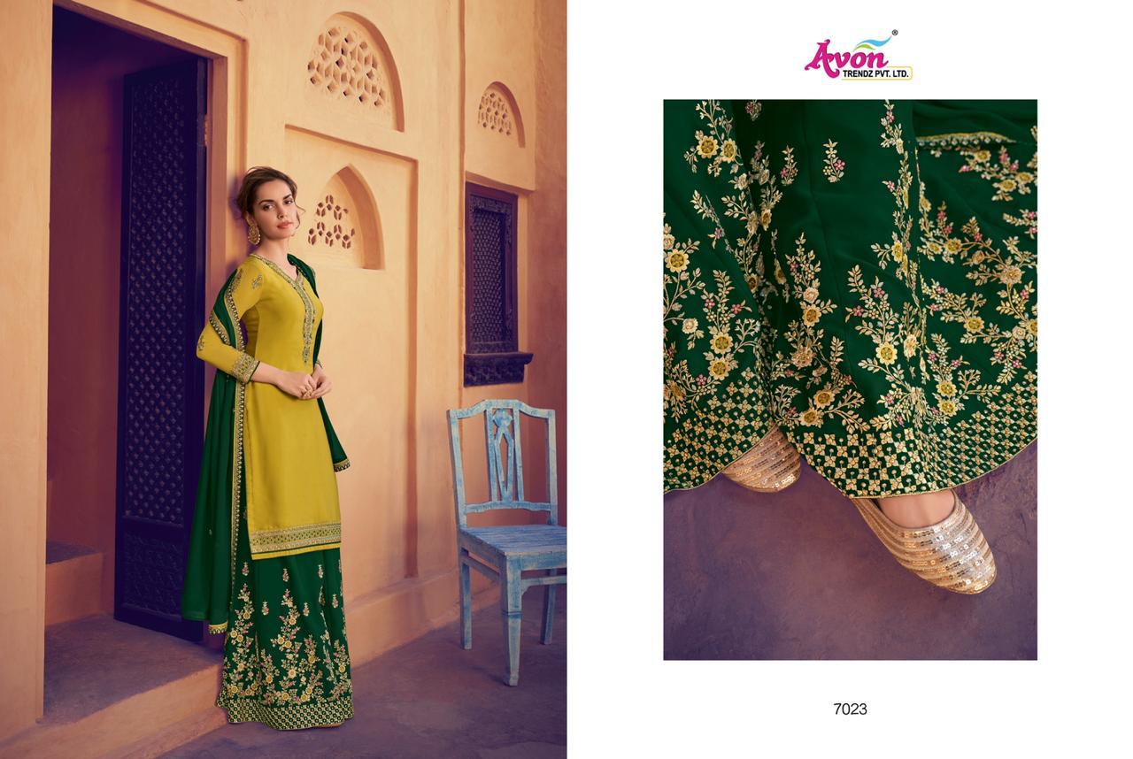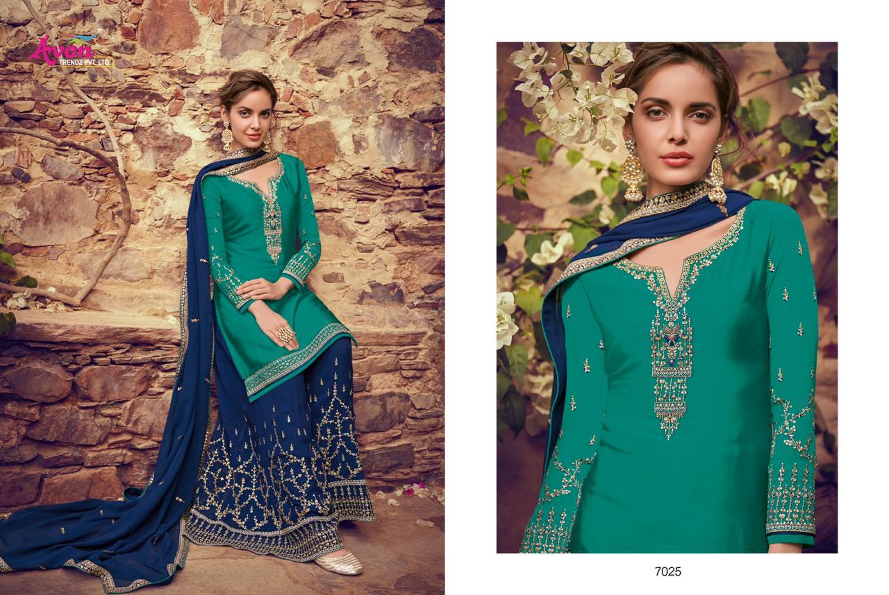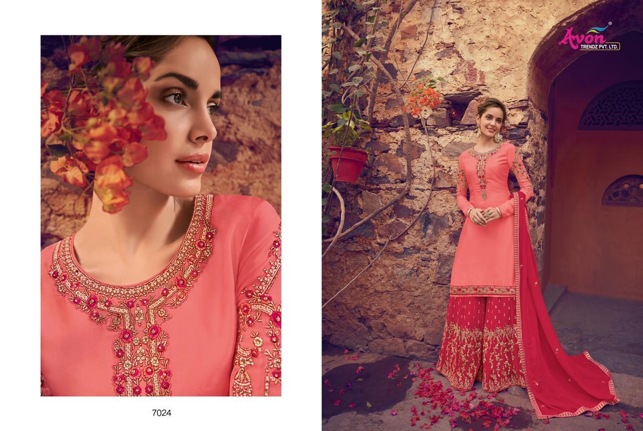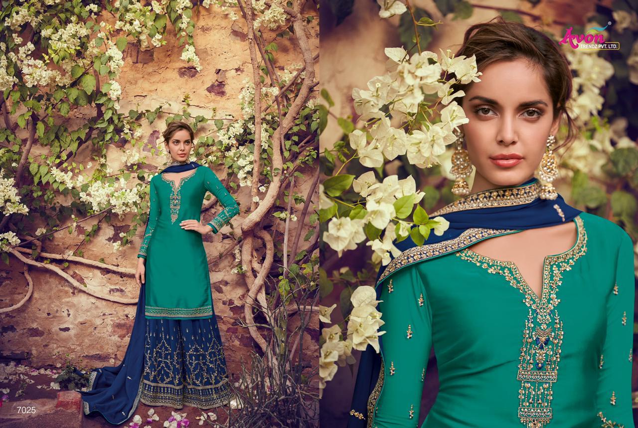 AVON AAROHI VOL-18 ( PLAZZO ) Satin georgette with embroidery work with fancy diamond work plazzo with georgette fancy lace work Dupatta Price- 2295/- Delivery 5-6 Days |