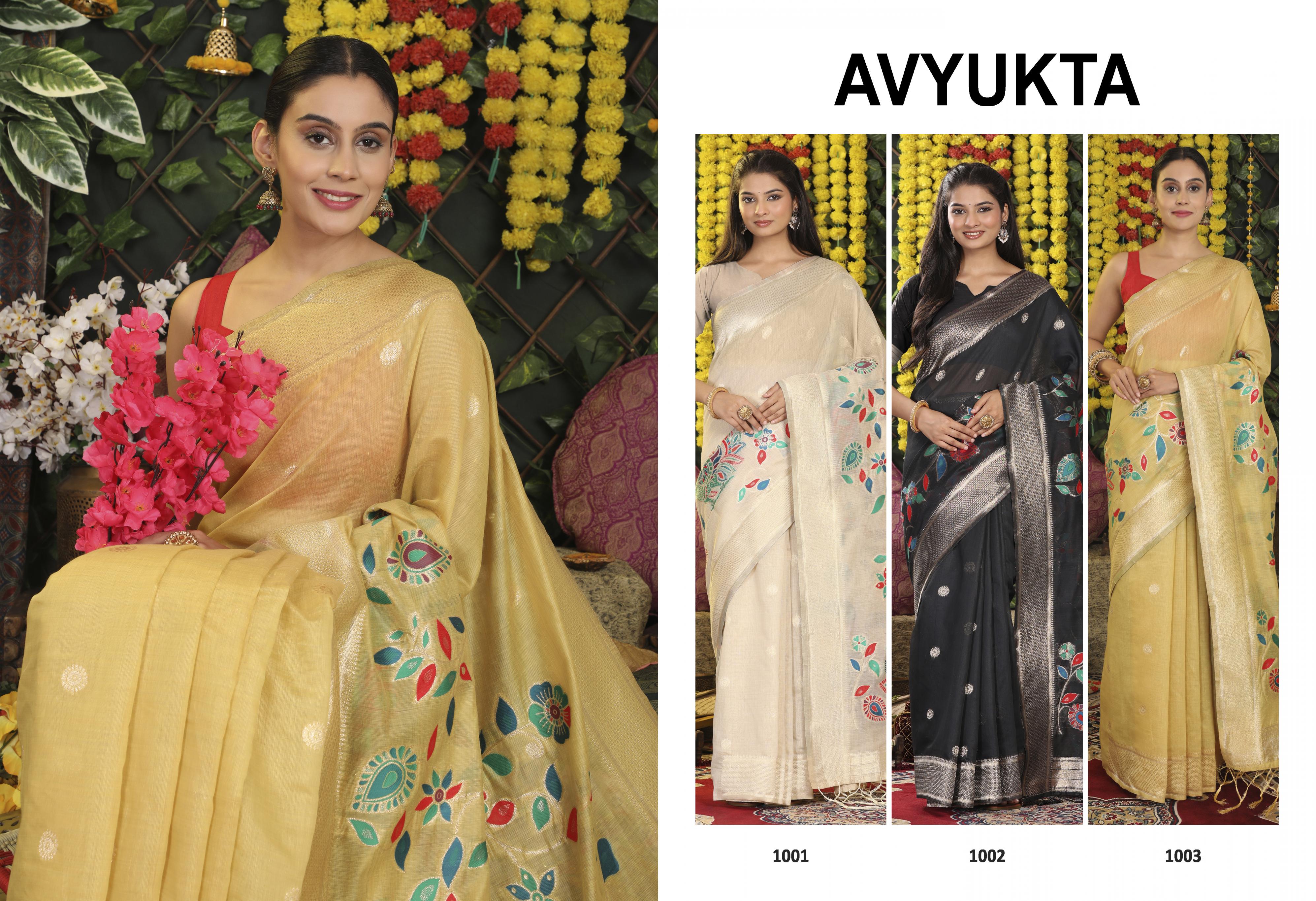 AVYUKTA by Astita fancy designer linen Cotton fabric saree with wholesale saree with latkan