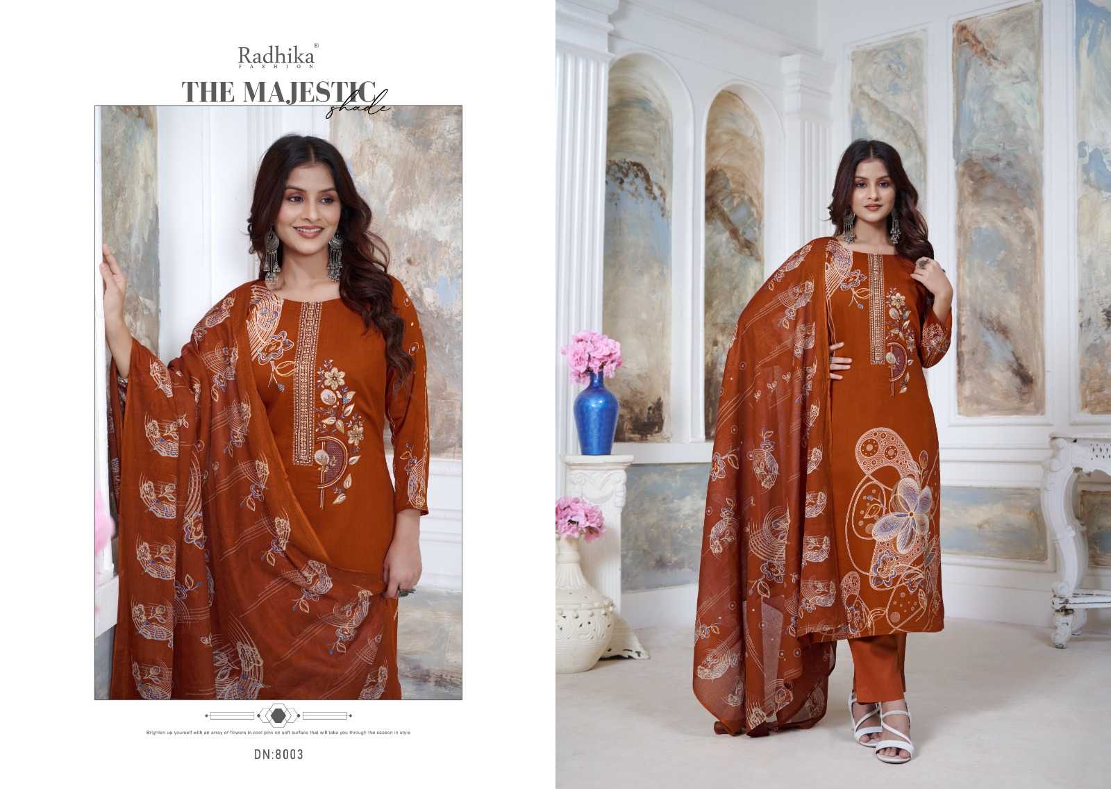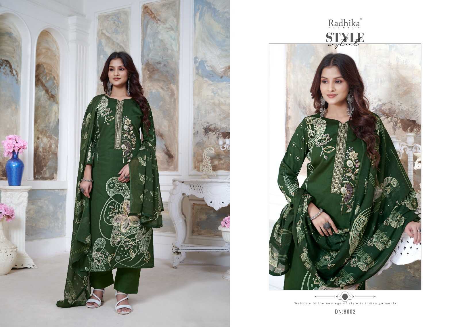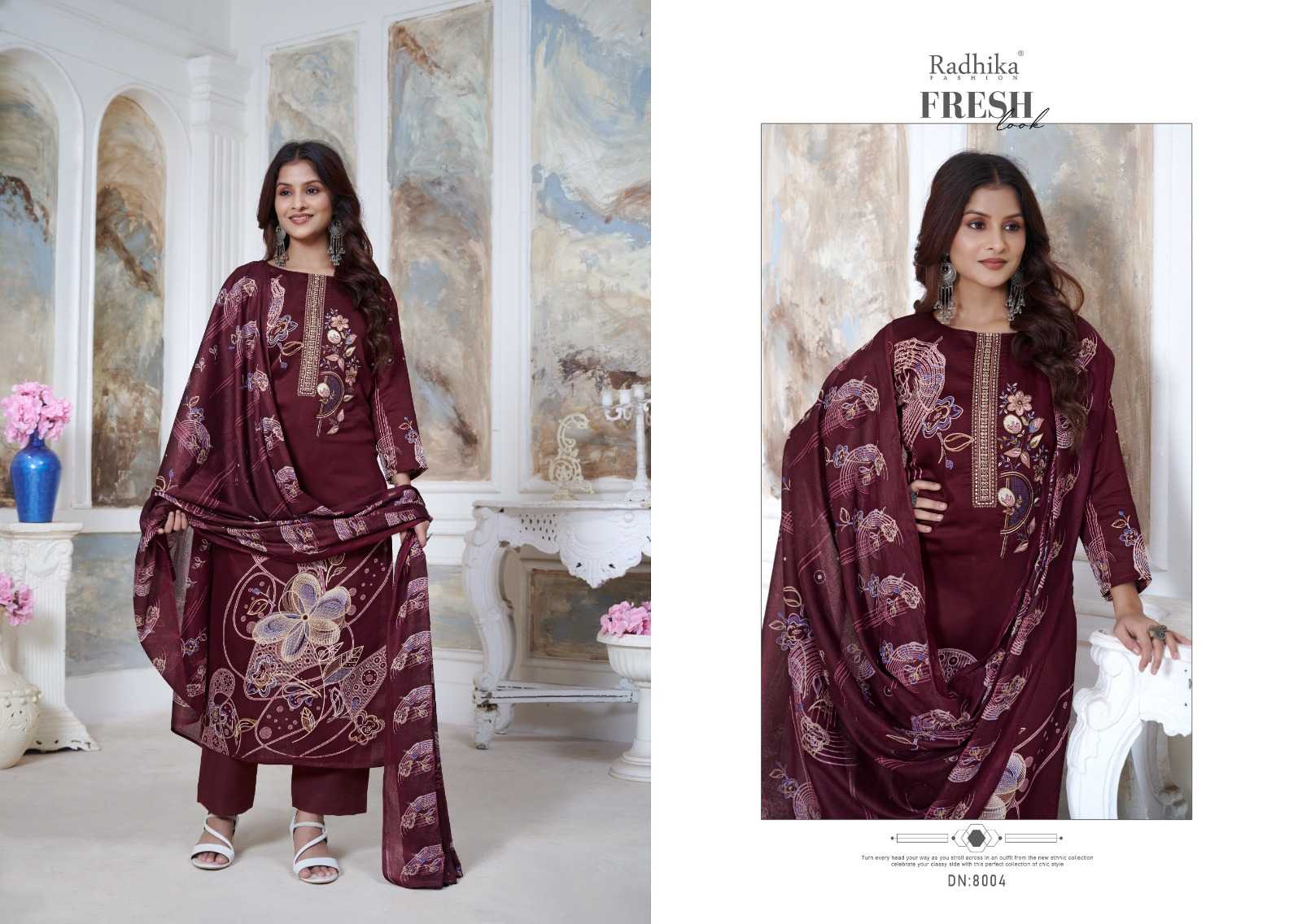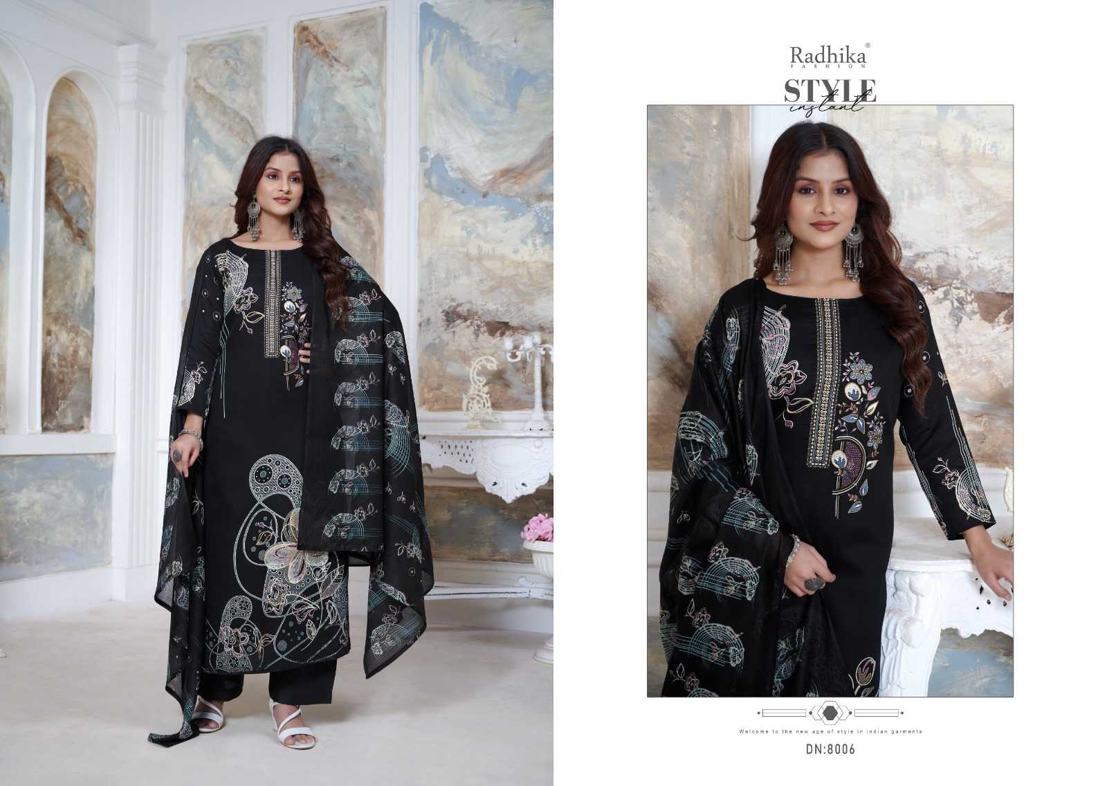 Radhika Creation Presents Latest Collection Launched on 17-10-2024. Presenting Beautiful collection of 6 PCS with Unstitched .