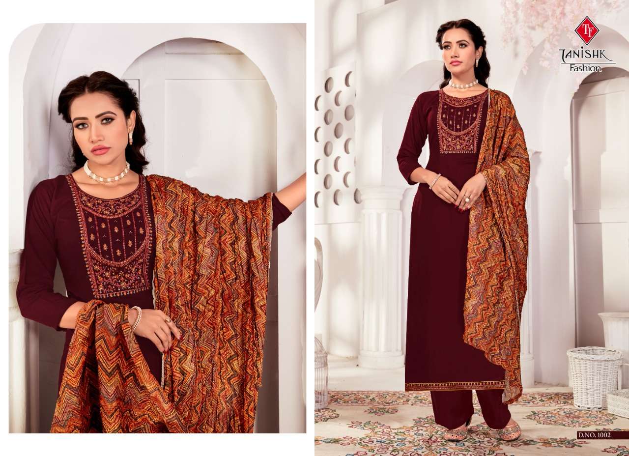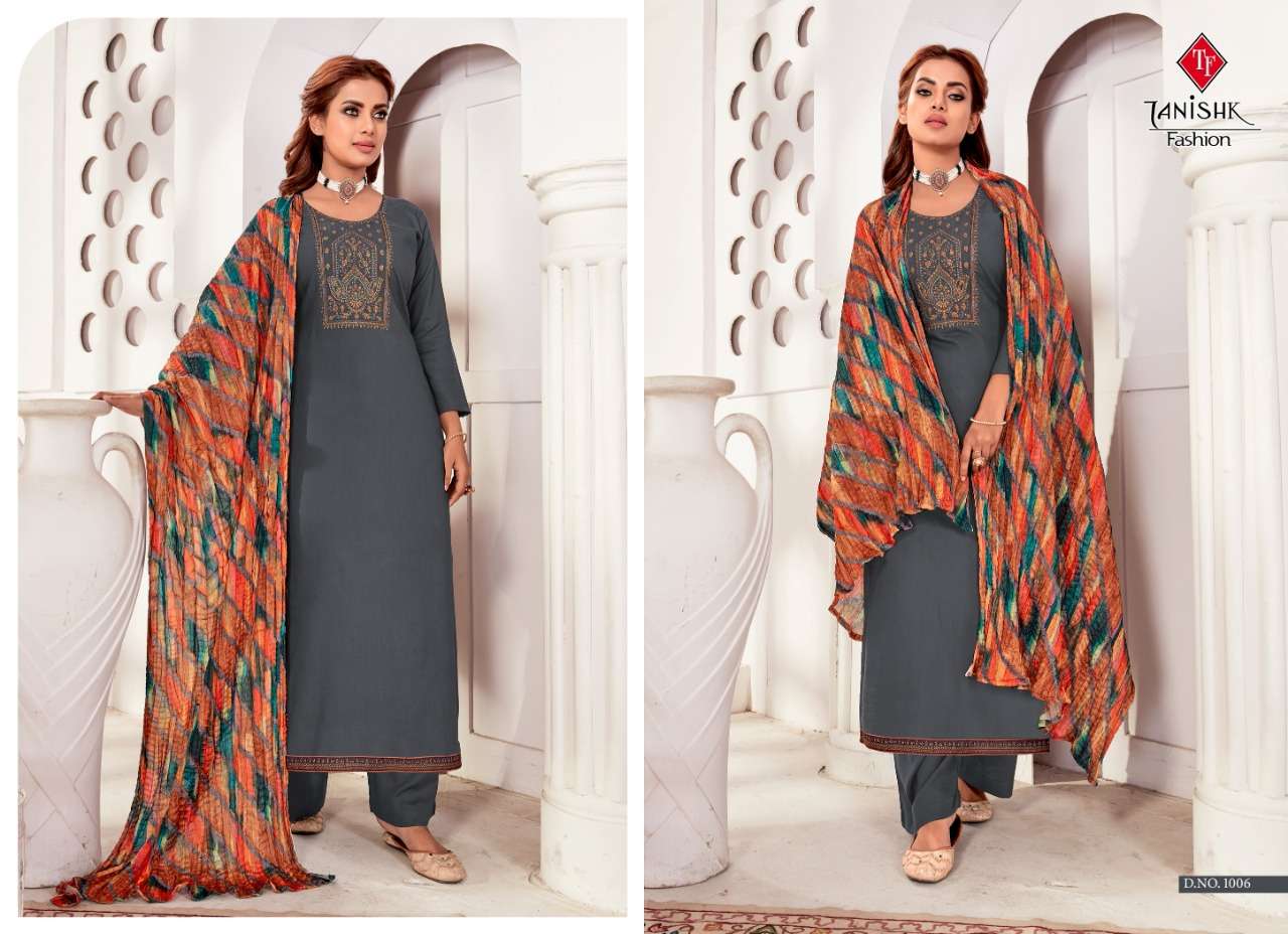 Tanishk Fashion Presents Latest Collection Launched on 04-01-2023. Presenting Beautiful collection of 8 PCS with Unstitched .