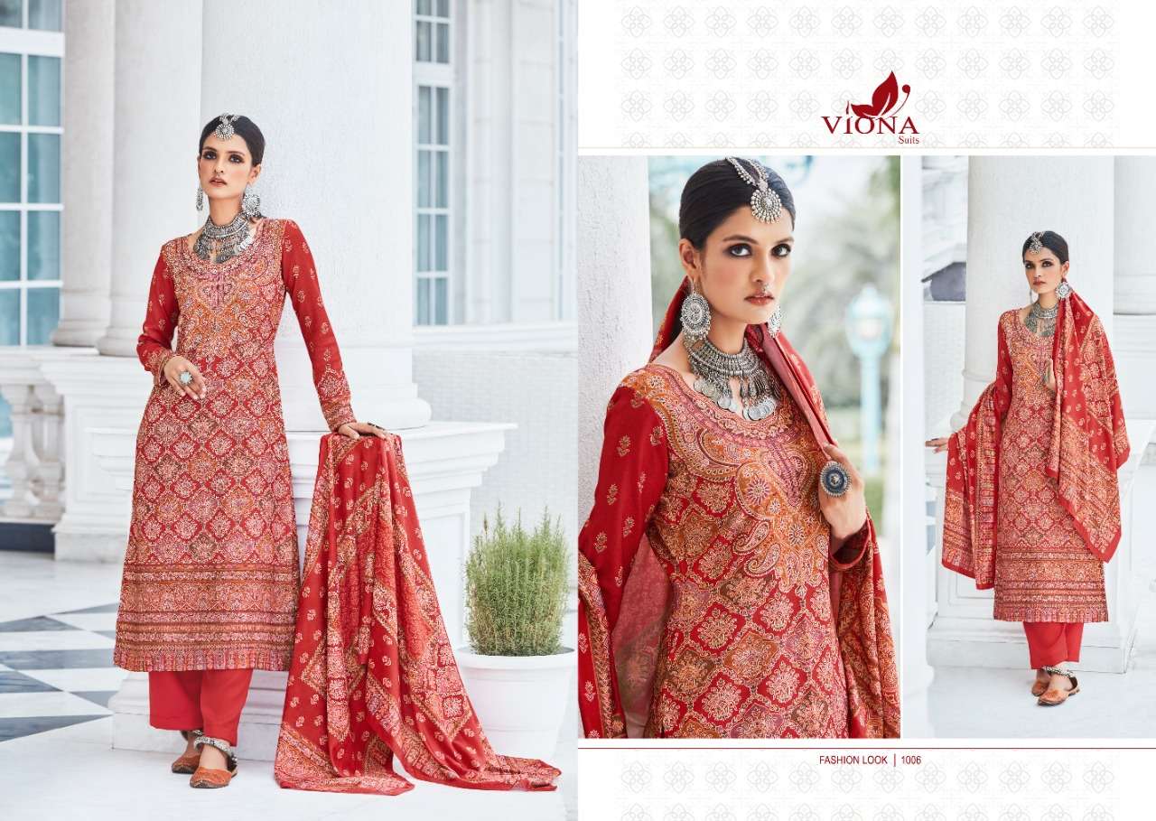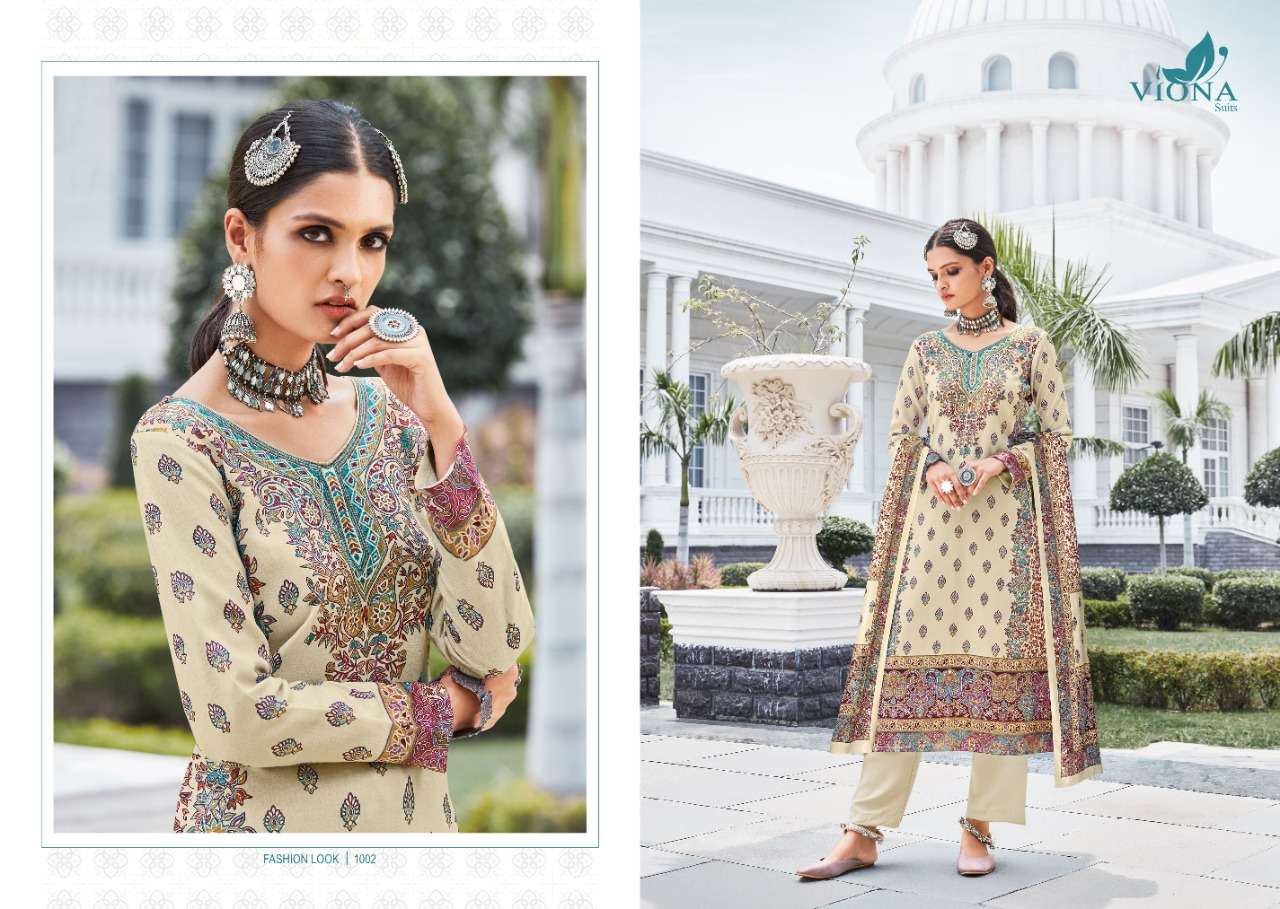 _VIONA SUIT, Hello Everyone, we feel great pleasure to launch our new catlogue on Heavy European  wool digital printed top and bottom with velvet duppatta digital printed collection of evergreen wear. Catalogue      Azmi Fabric Details:- Top :- Heavy European  wool Pashmina Digital Printed Bottom :  Heavy pashmina Twill bottom   Dup :  9000  Velvet Digital Printed Dupatta pcs: 8 Rate: 899/- Gst extra |