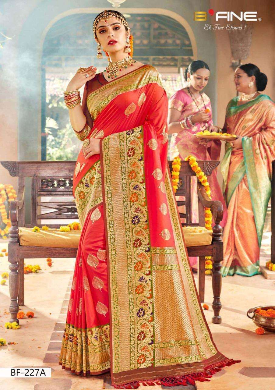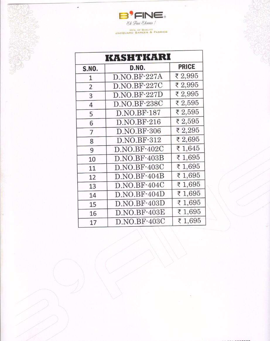 Brand. - B FINE . Catlog name - * KASHTKARI* Fabric- Silk . ONLY FULL SET PRICE LIST HAS ATTACHED GST 5 Percent Extra. Delivery from today |