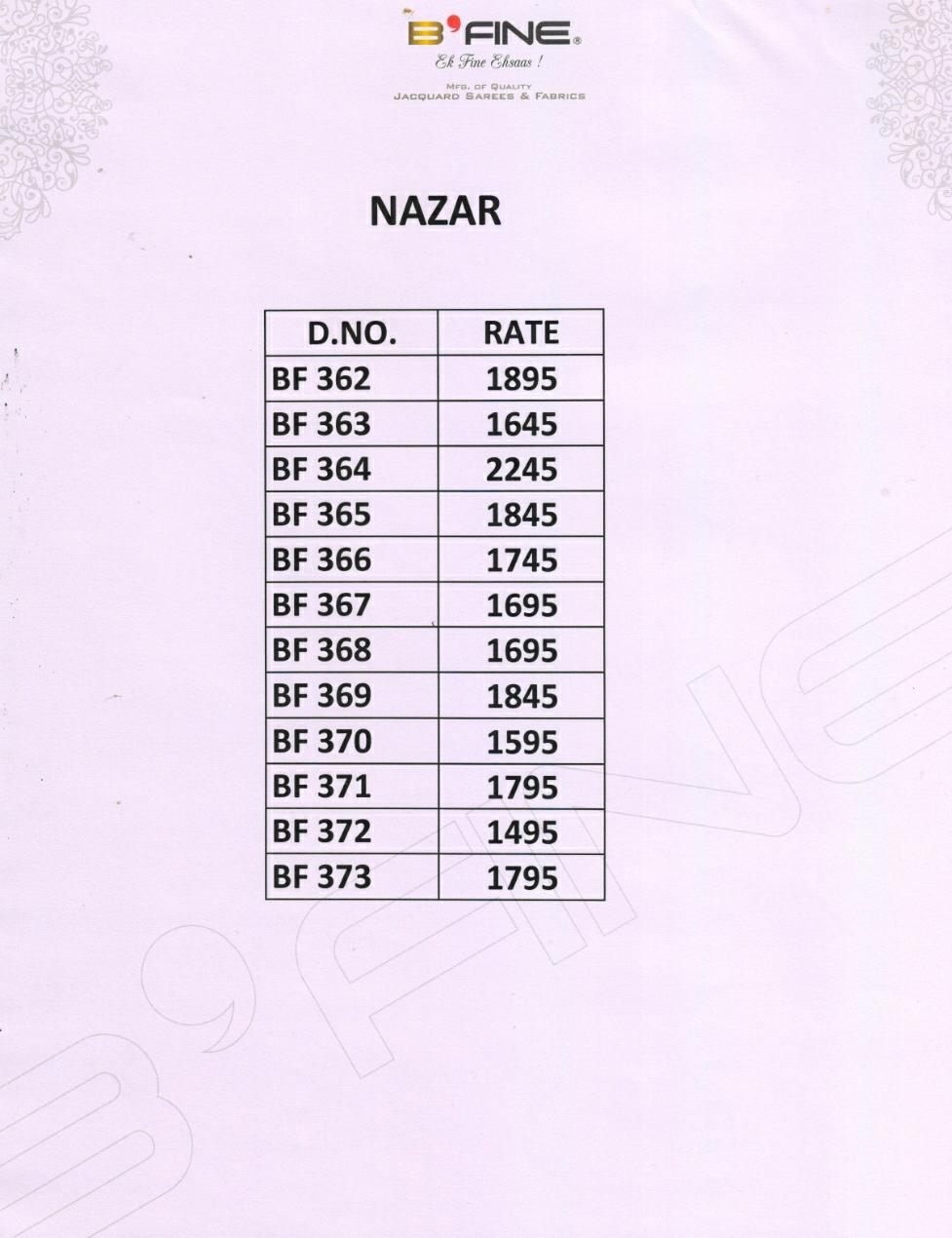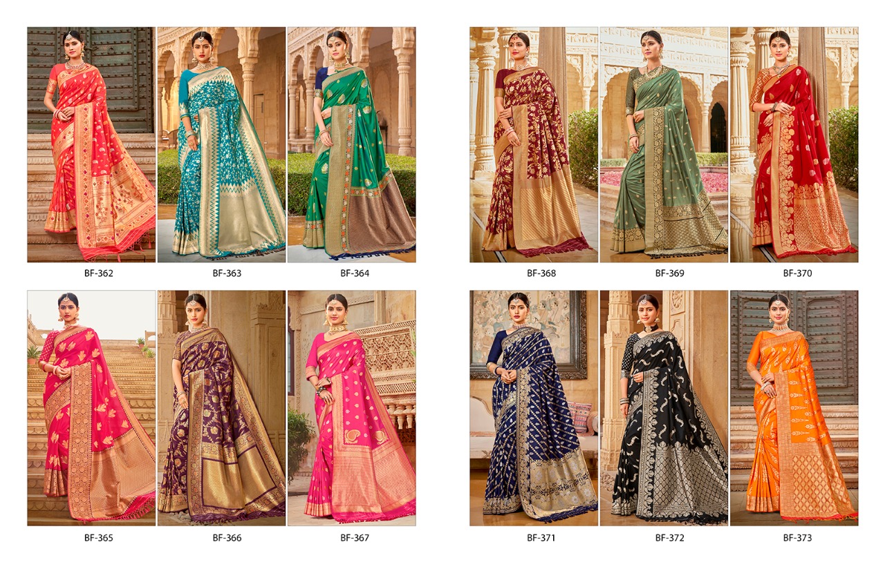 CATALOUG NAME – NAZAR SERIES – BF- 362 TO BF- 373 TYPE - SAREE FABRIC – BANARASI SILK JECORD RATE - 1775/-₹ PC - 12 GST 5 Percent Extra. |