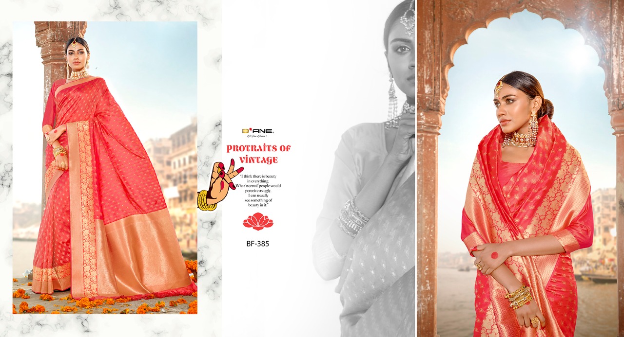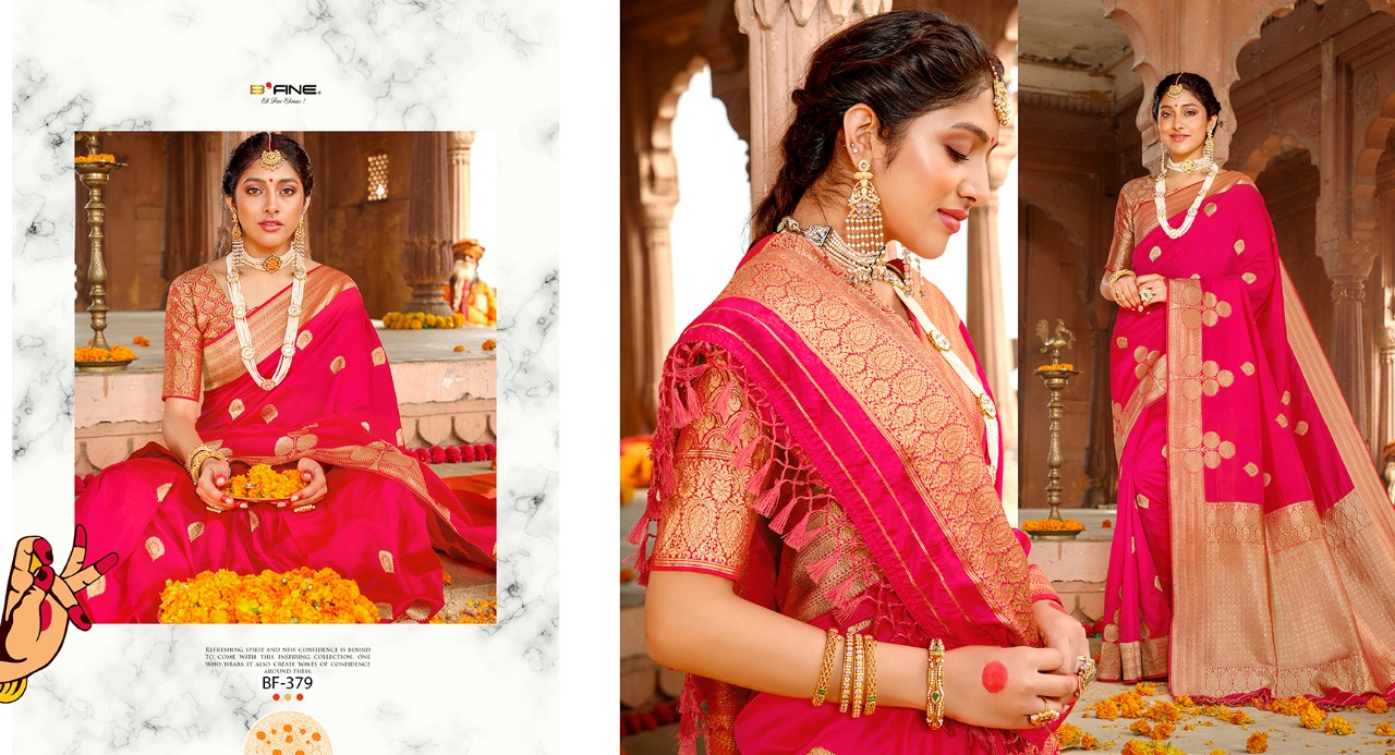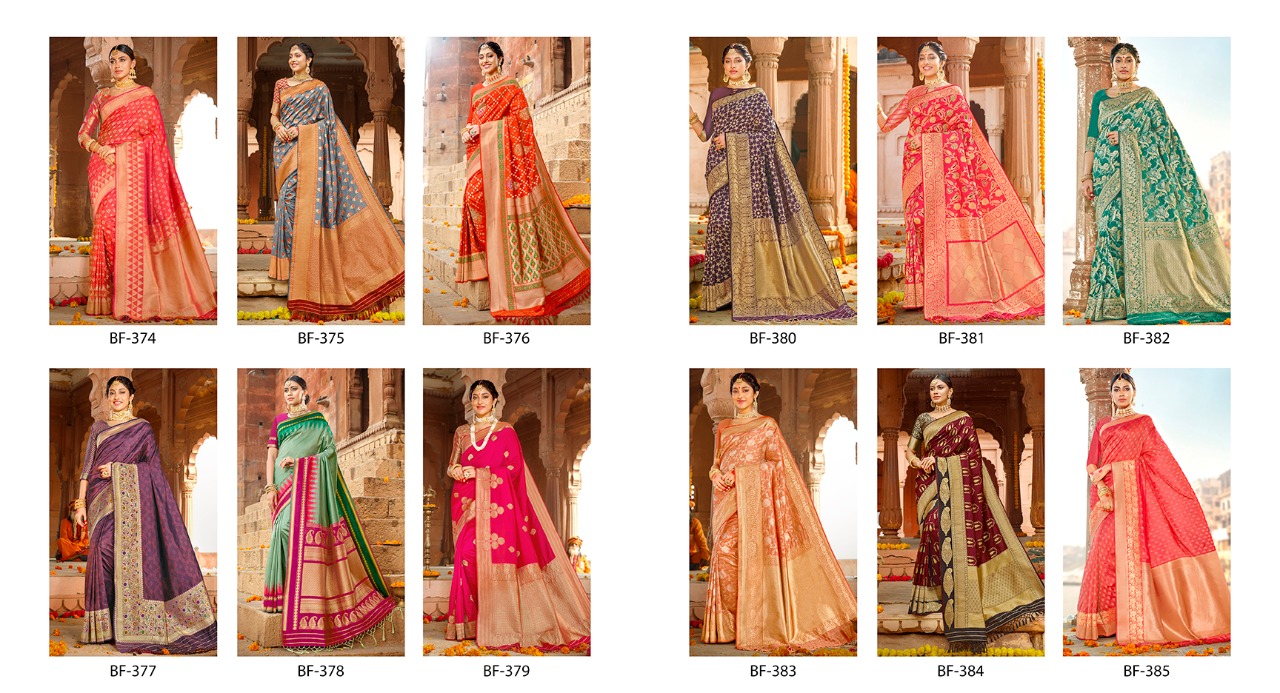 CATALOUG NAME – MYRA SERIES – BF- 374 TO BF- 385 TYPE - SAREE FABRIC – BANARASI SILK JECORD RATE - 1841/-₹ PCS - 12 GST 5 Percent Extra. Delivery 3-4 days |