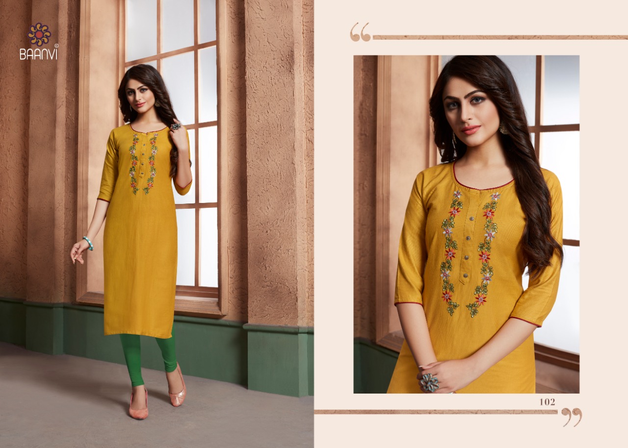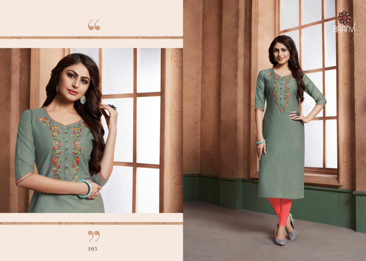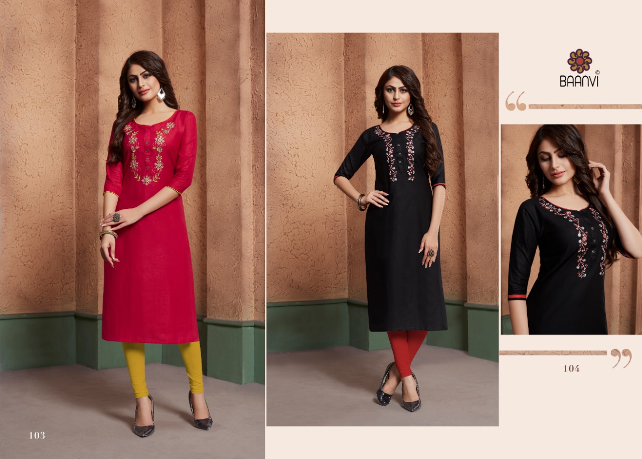 Baanvi Present Fusion Cotton Embroidery Long Straight Kurti Wholesaler