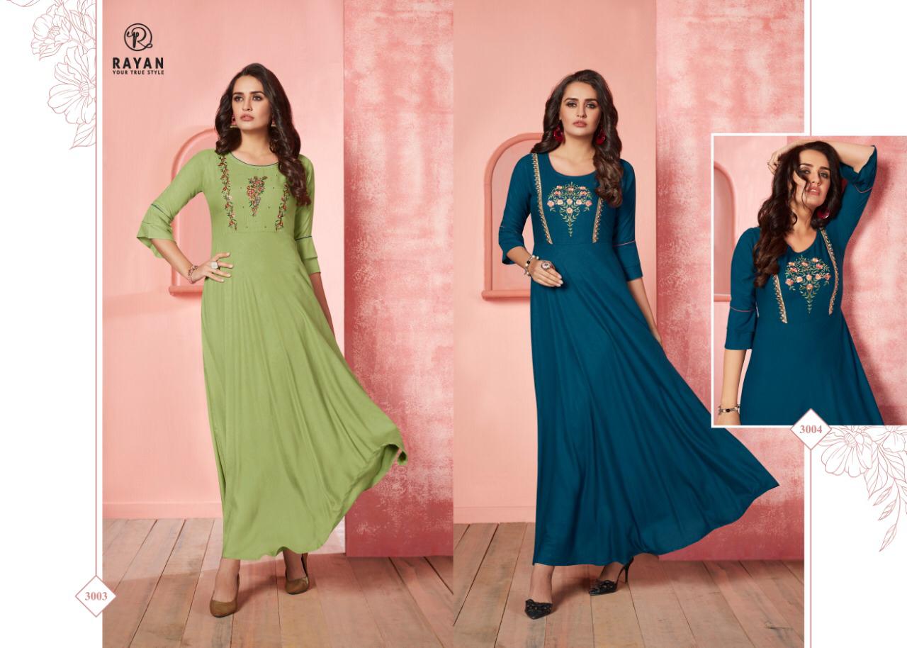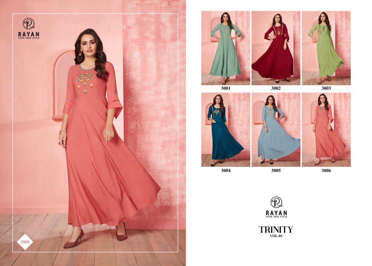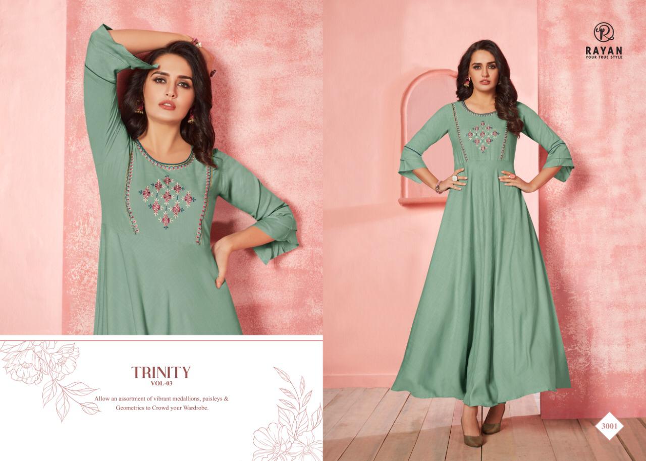 Baanvi Present Trinity Vol 3 Rayon Exclusive Long Kuri Supplier In Surat Market