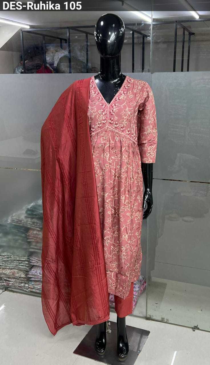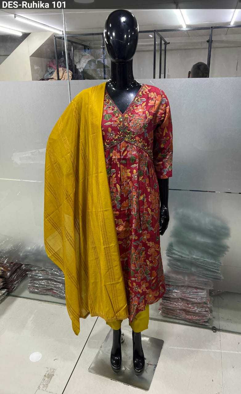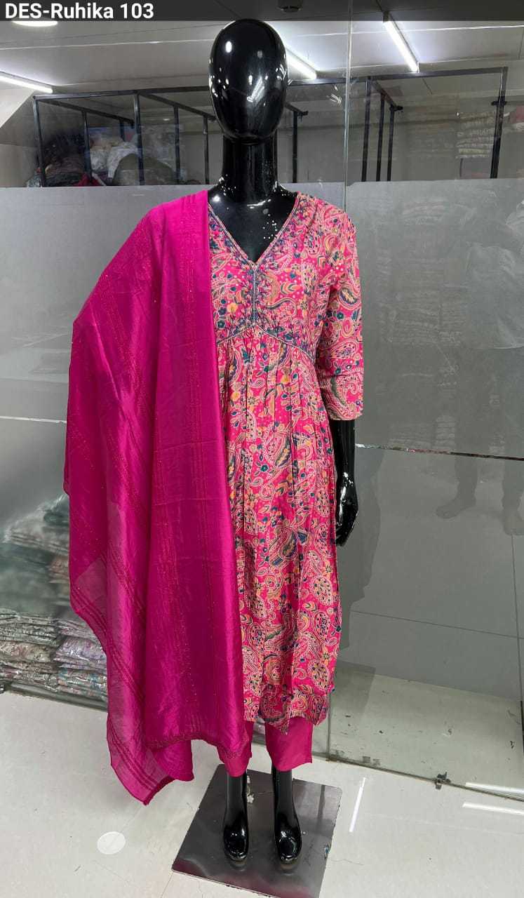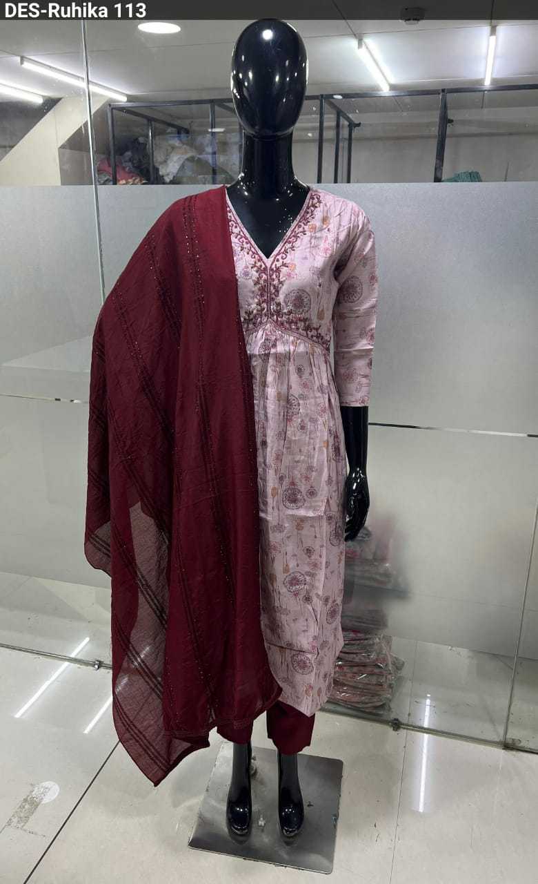 baanvi ruhika chanderi foil printed fancy readymade salwar kameez