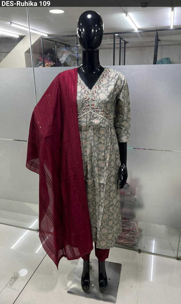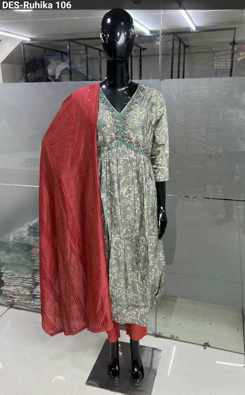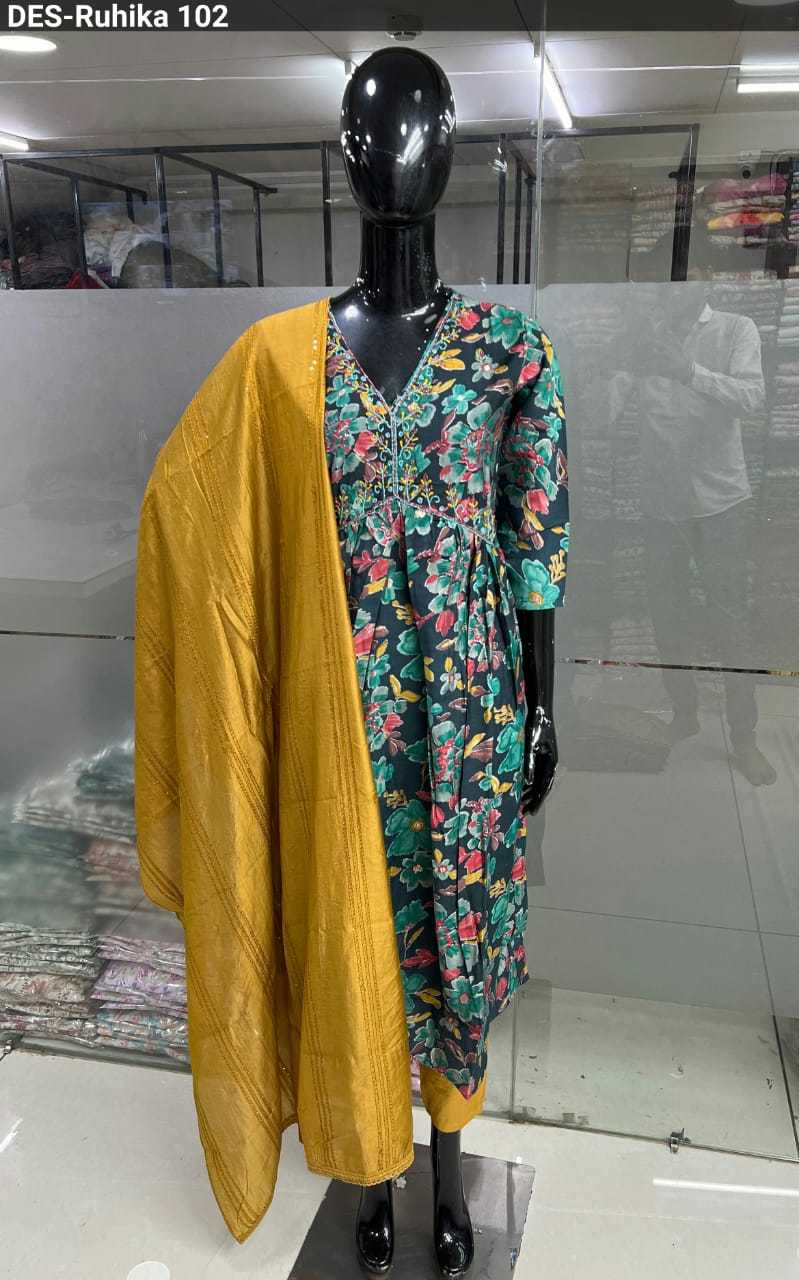 baanvi ruhika chanderi foil printed fancy readymade salwar kameez