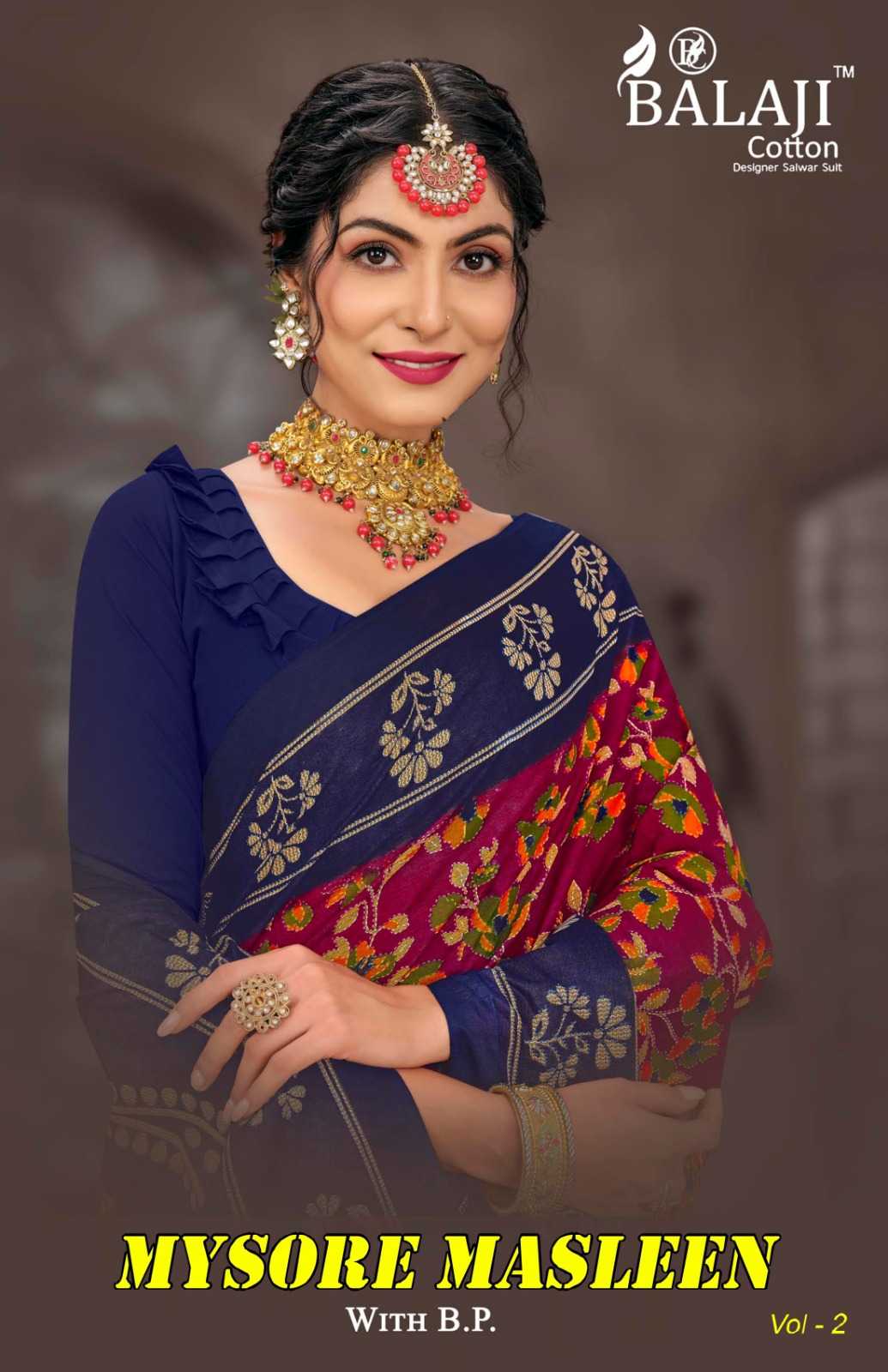 BALAJI COTTON MYSORE MASLEEN VOL 2 COTTON SAREE WITH BLOUSE RATE 315/- PC :- 10 |