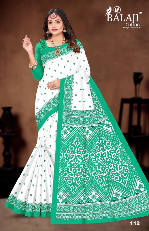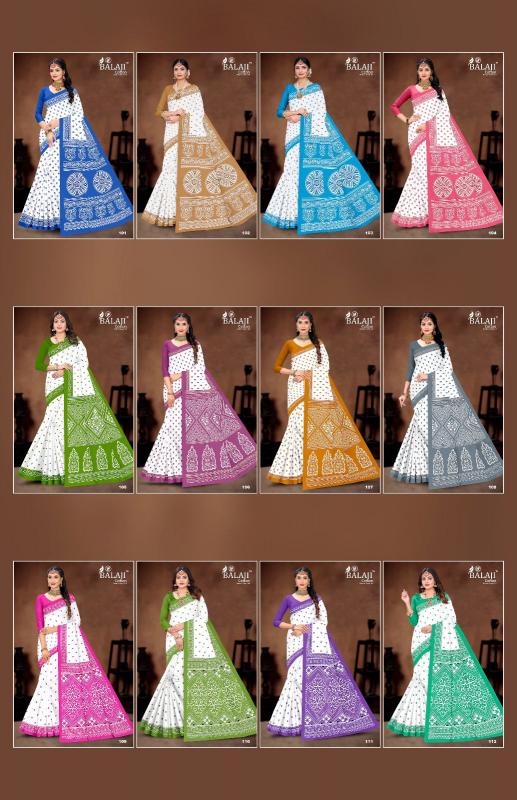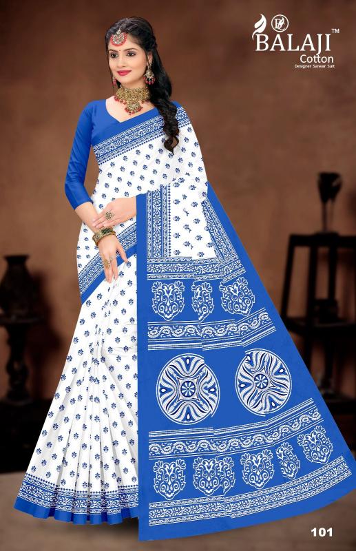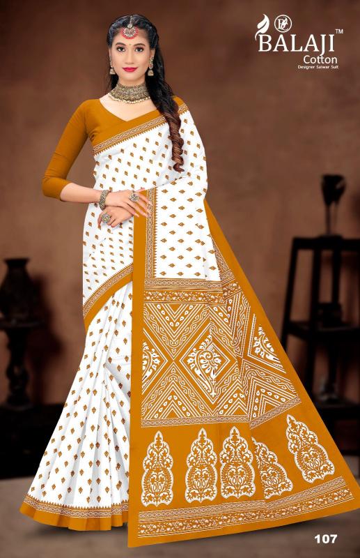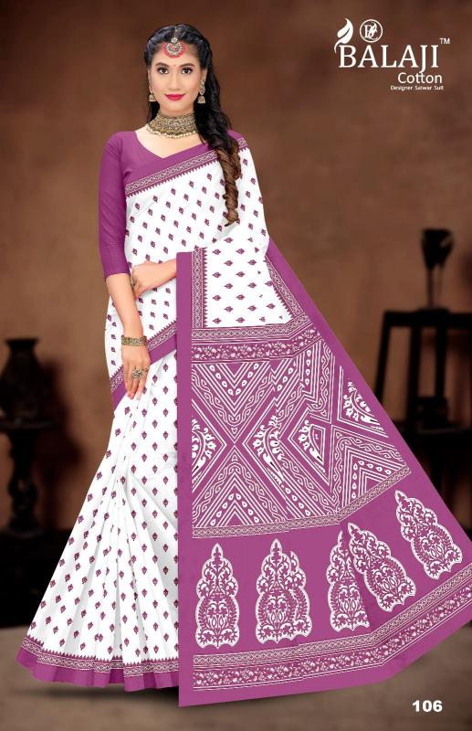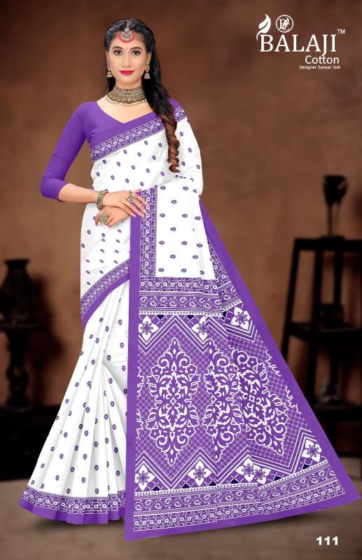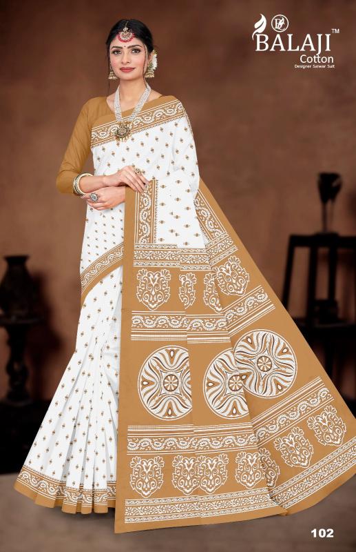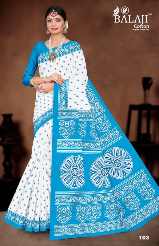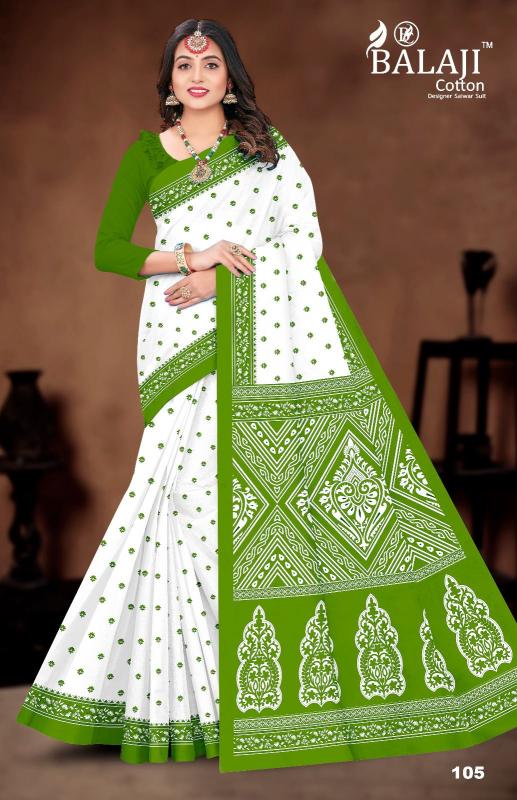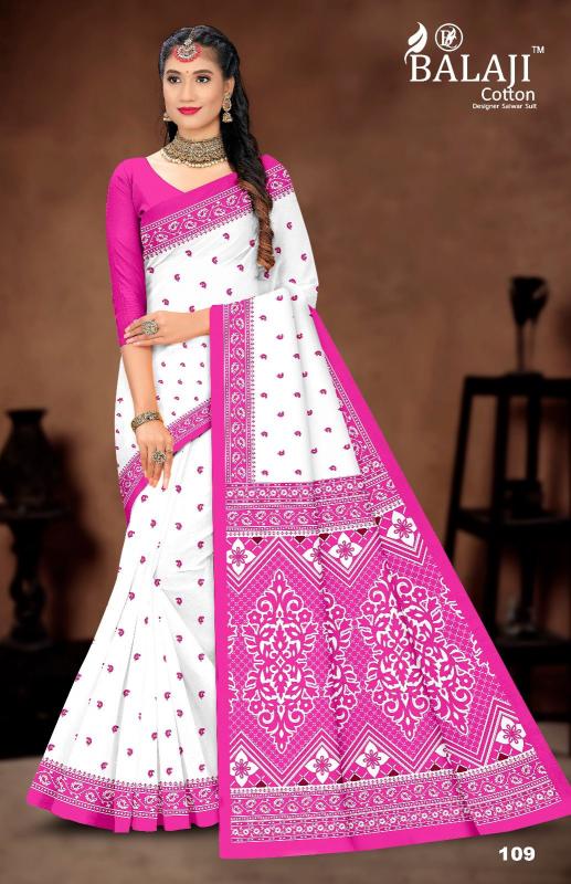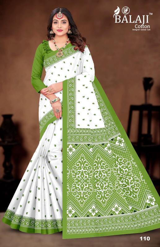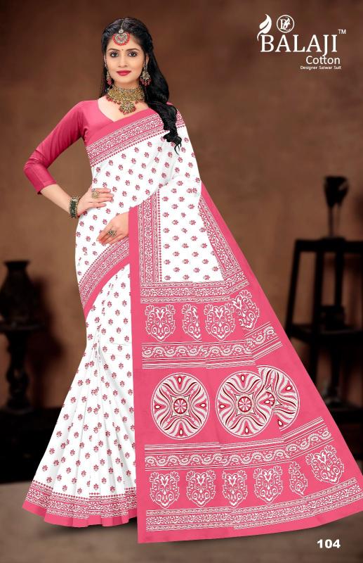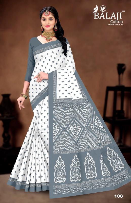 balaji cotton white butti casual wear cotton saree online