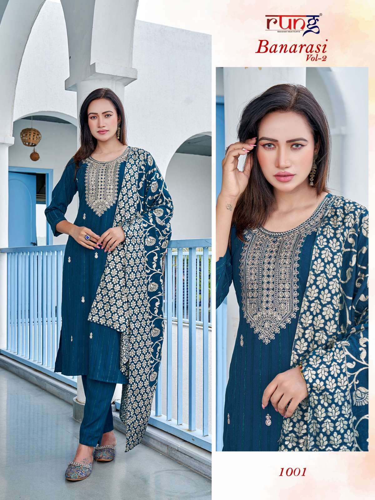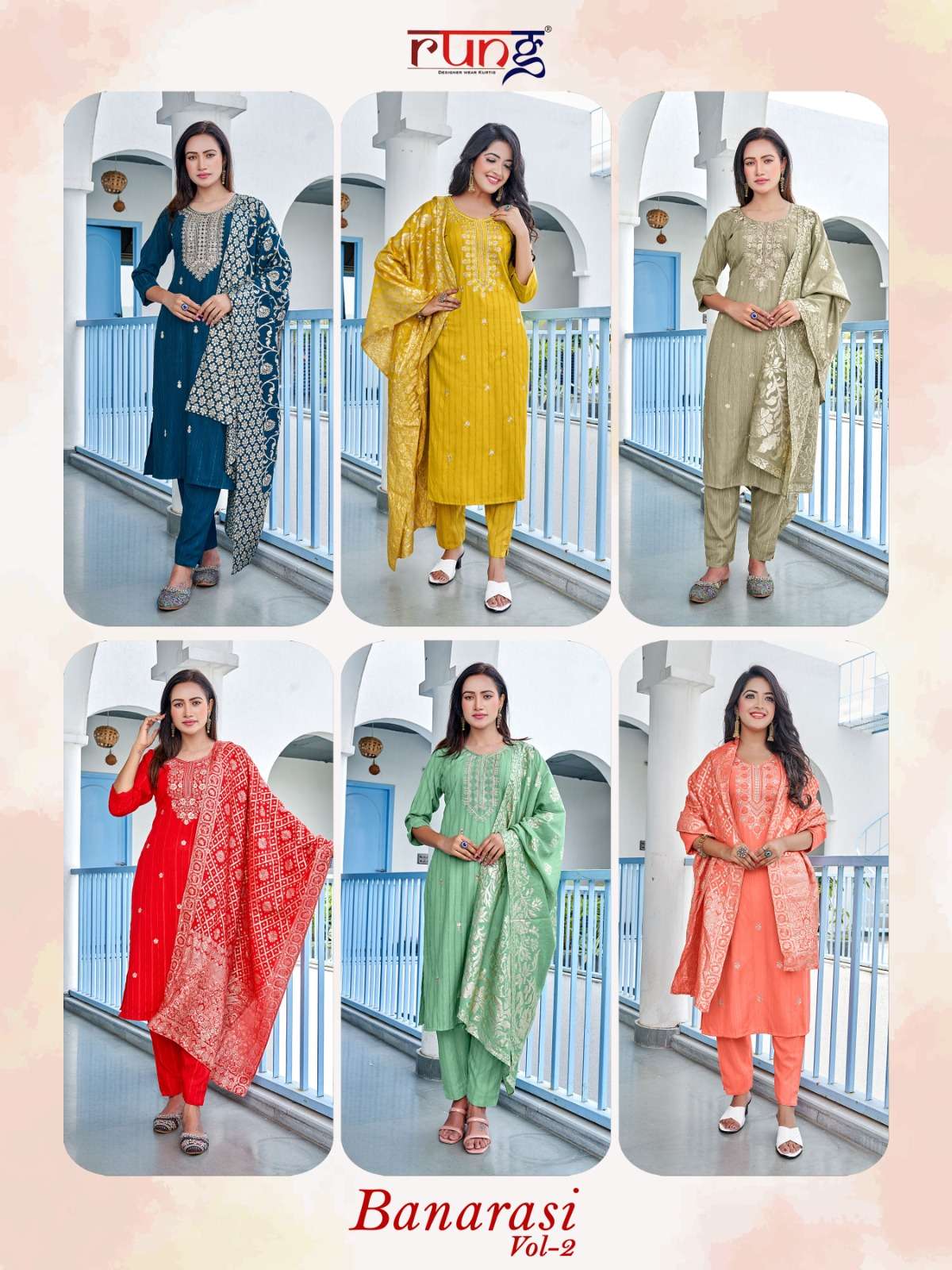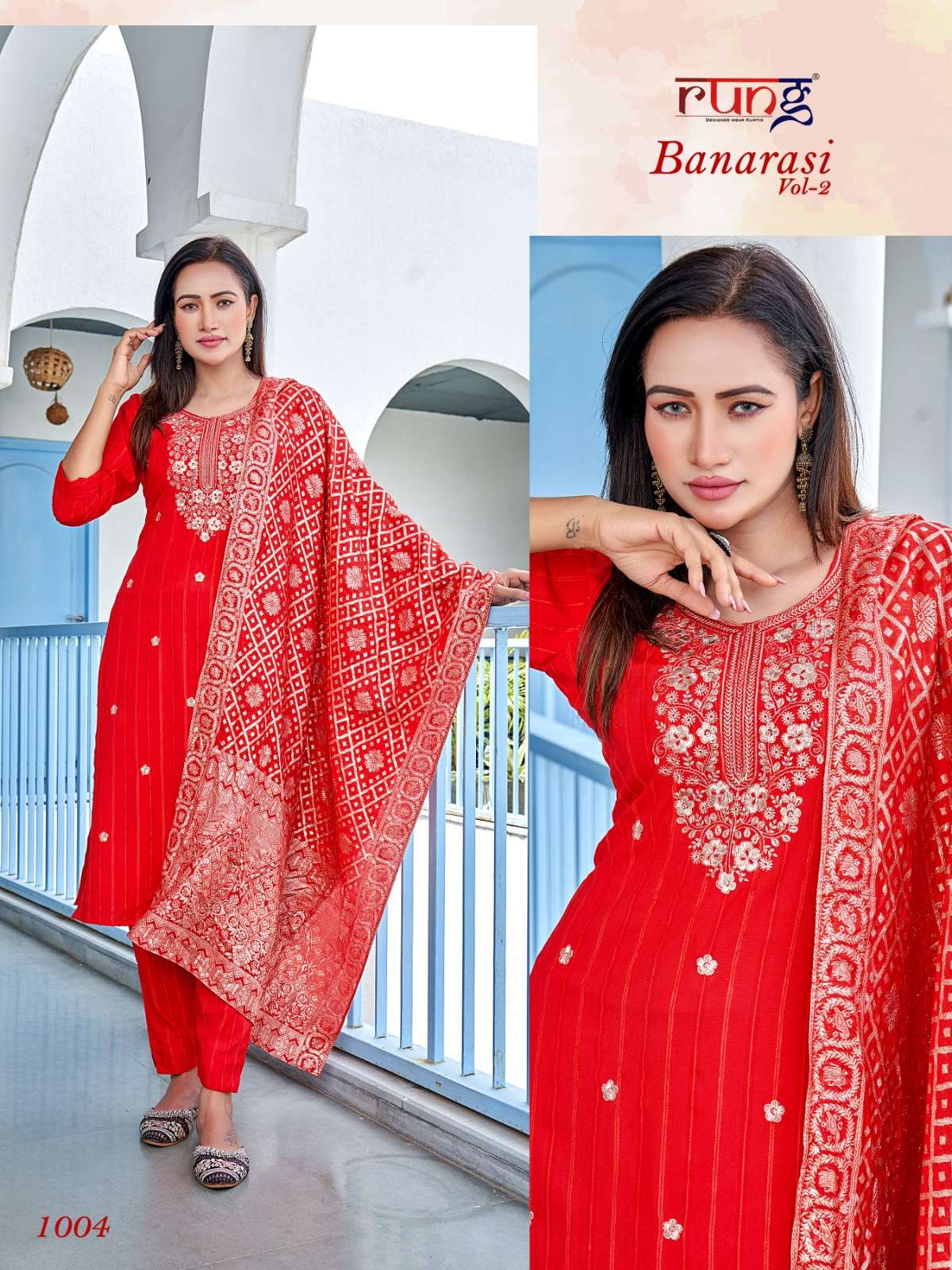 banarasi vol 2 by rung festive wear fancy kurti with pant and silk dupatta catalog