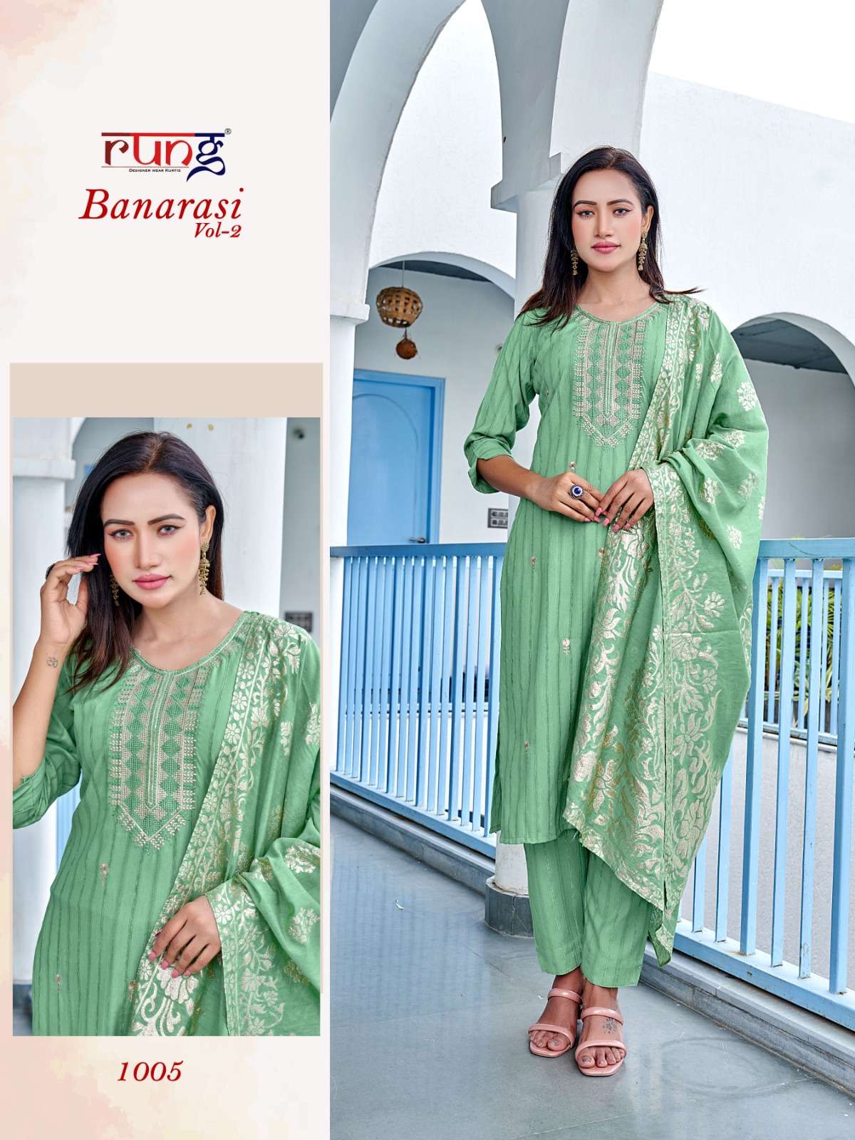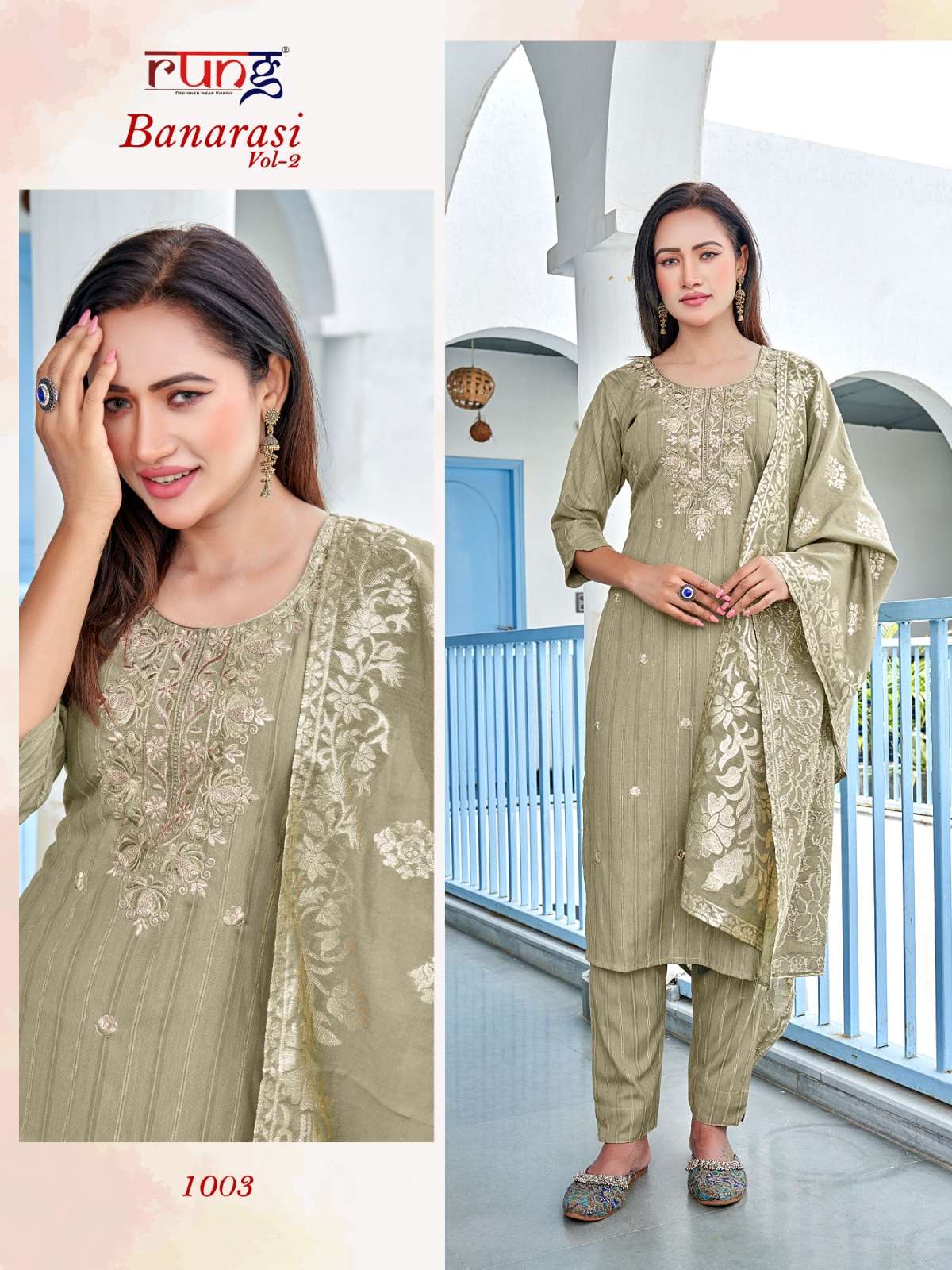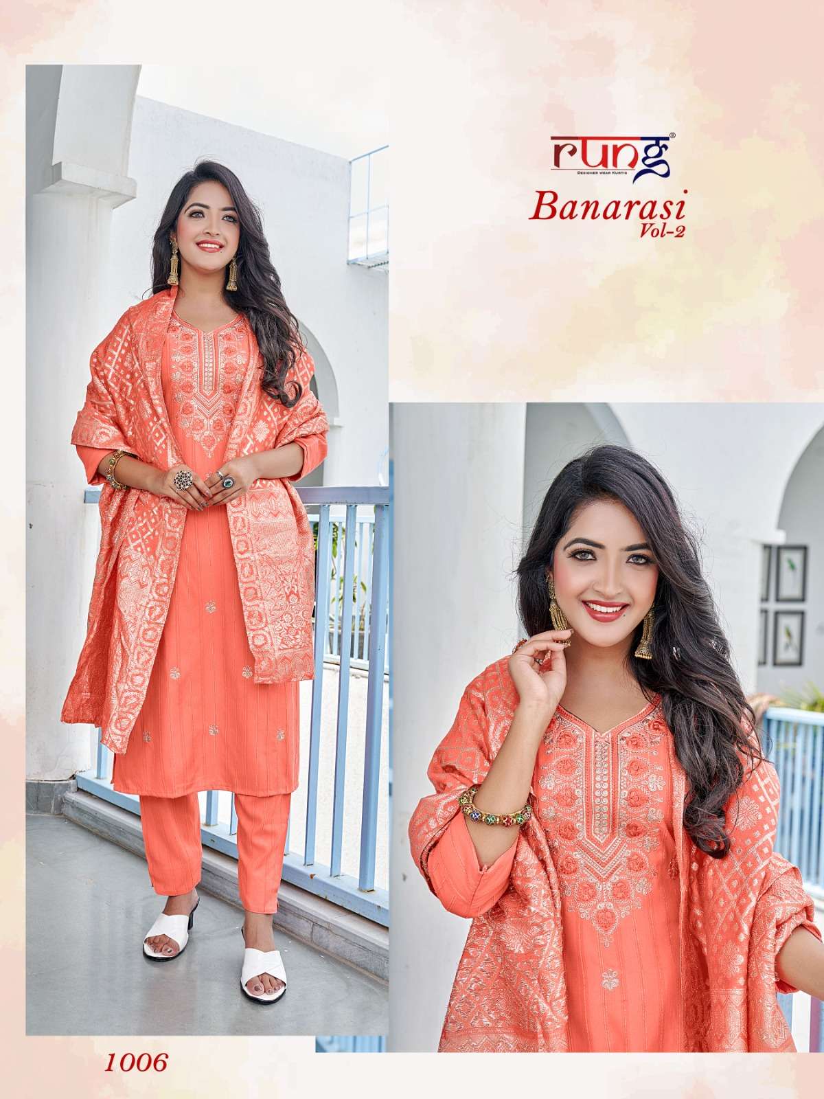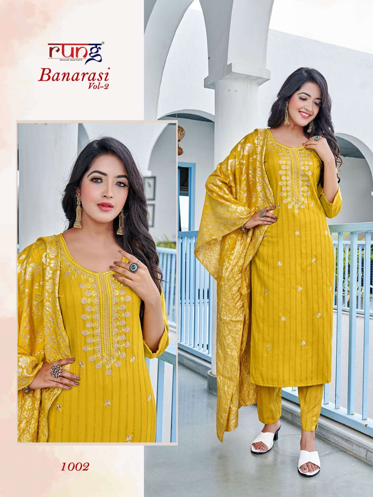 banarasi vol 2 by rung festive wear fancy kurti with pant and silk dupatta catalog