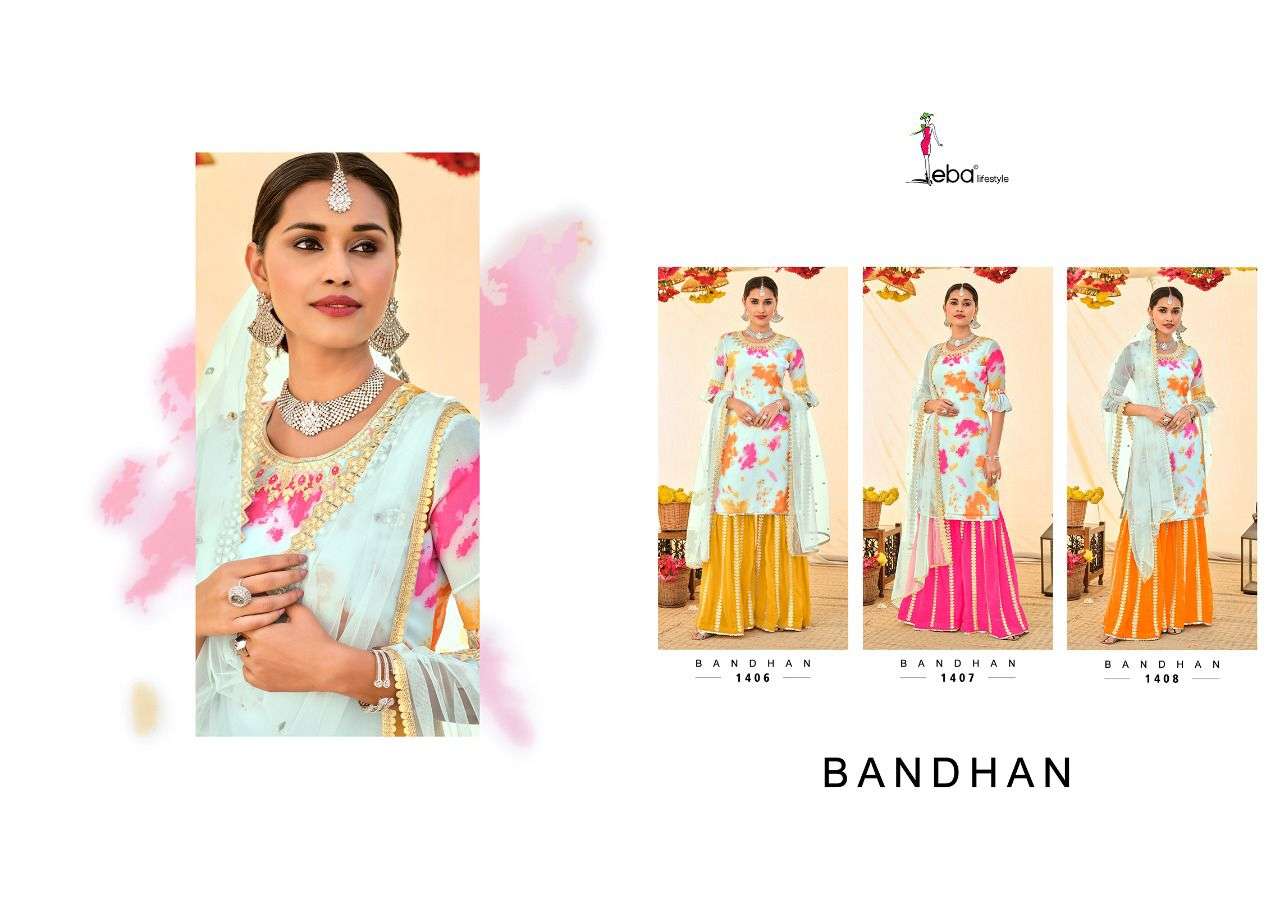 bandhan by eba lifestyle georgette work plazzo suit collection
