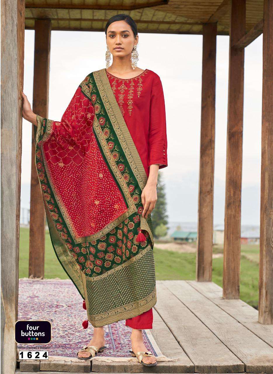 FOUR BUTTONS proudly launches its FESTIVE collection 2021 "BANDHANI 2" FABRIC KURTI - INTRICATE EMBROIDERIES ON PURE VISCOSE SILKÂ BOTTOM - HEAVY VISCOSE SILK Â DUPATTA- PLACEMENT DIGITAL PRINT ON PURE VISCOSE JACQUARD SILKÂ RATE - Rs 1699/-Â SIZES - S, M, L, XL, XXL, 3XL Set to set. Delivery 2/3 days |