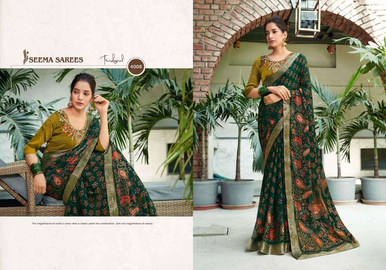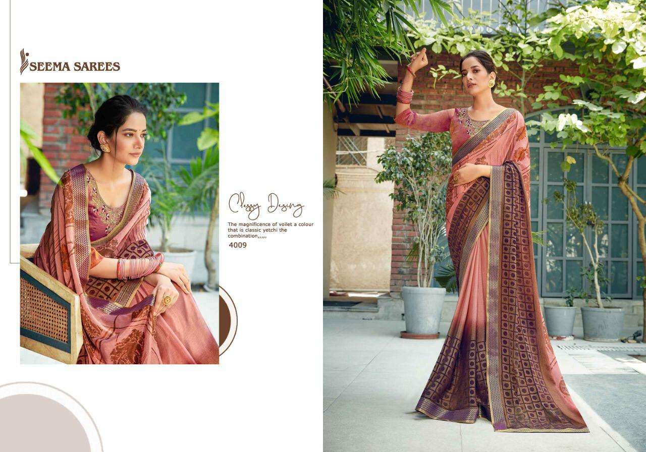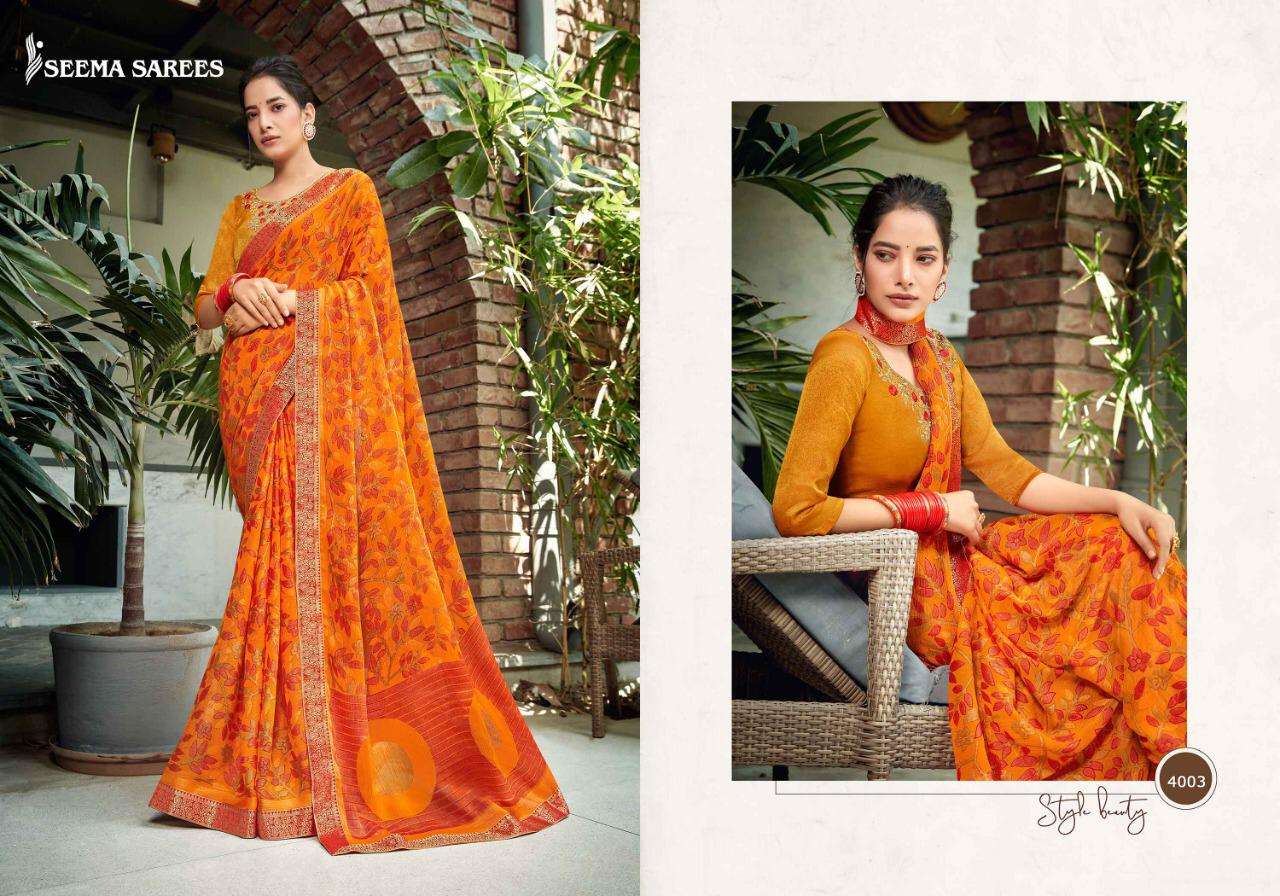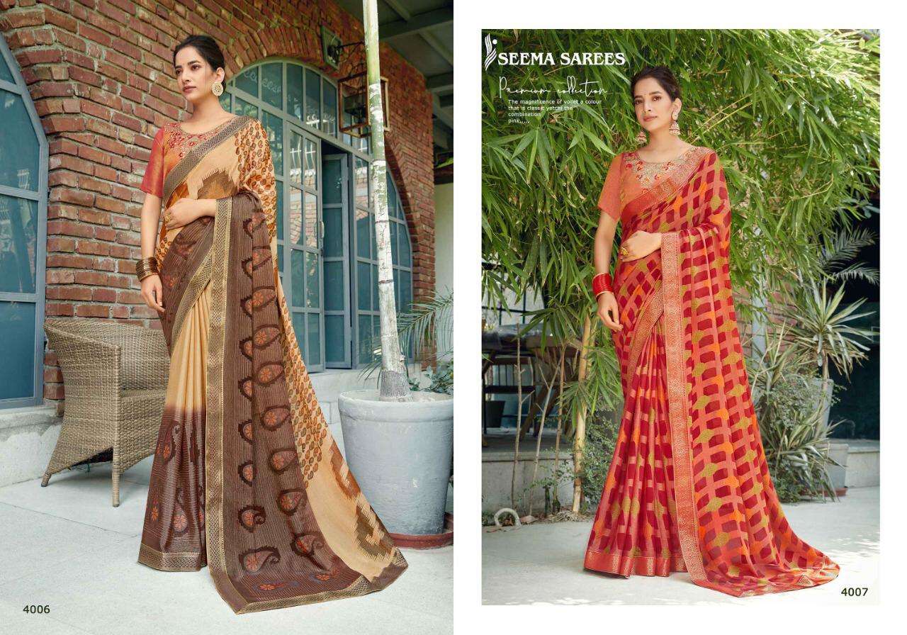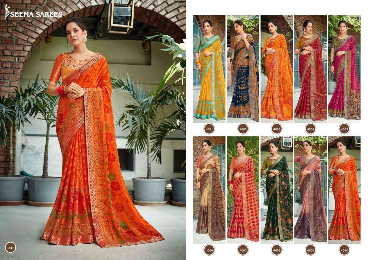SEEMA SAREES BANDISH BANDITS VOL 2 RATE : * 775/- per pcs * Set to set FABRIC : CHIFFON BRASSO   WORK BLOUSE FULL SAREE LACE Delivery from today |