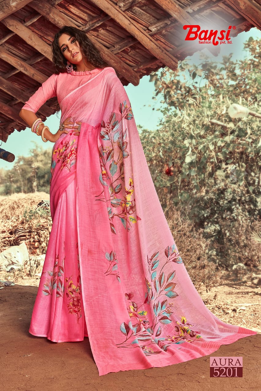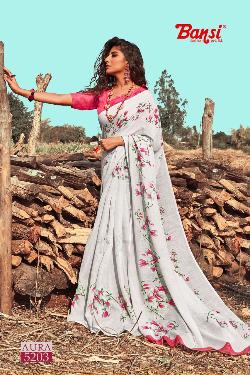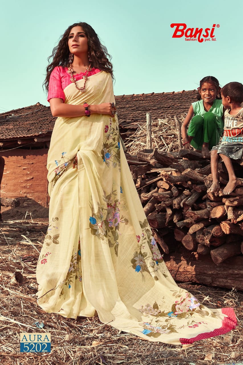 Bansi Fashion Aura Plain Linen Printed Stylish Saree Catalogs Collections