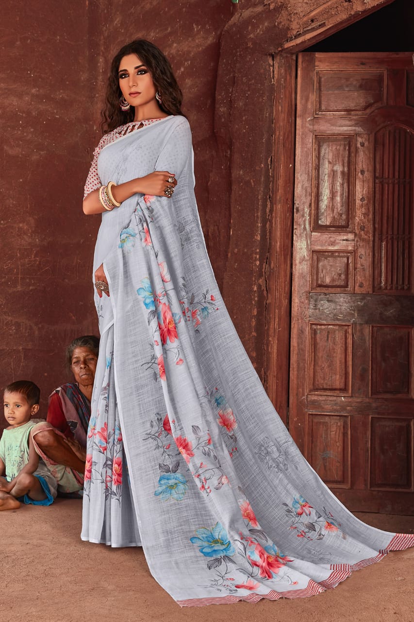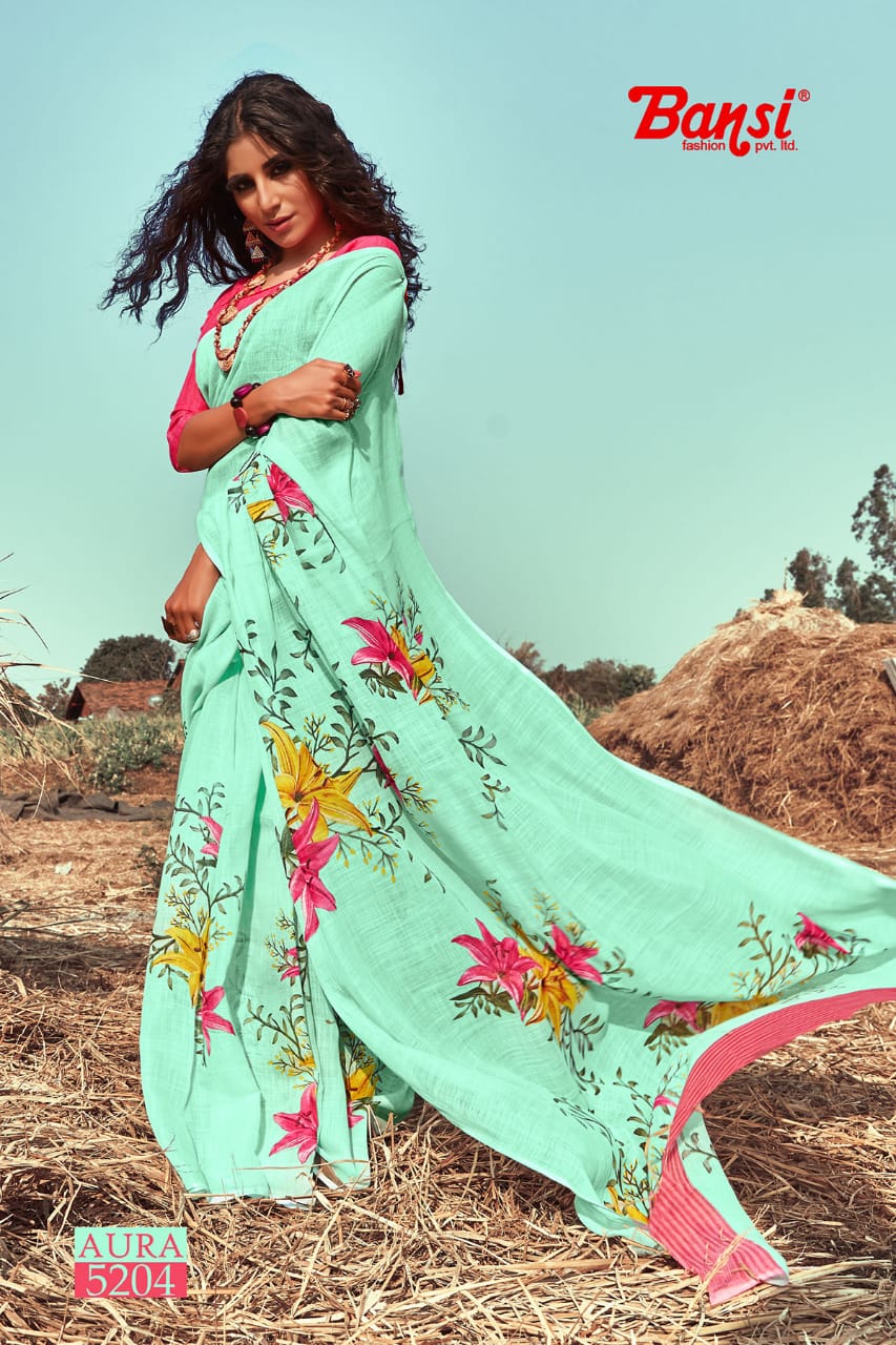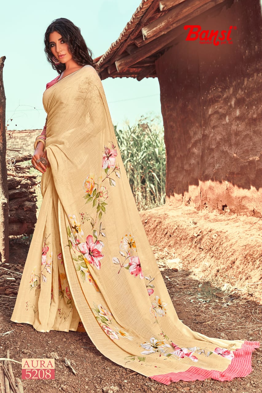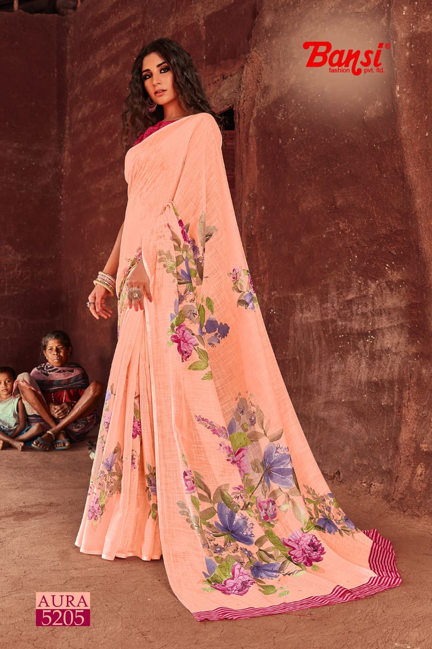 Bansi Fashion Aura Plain Linen Printed Stylish Saree Catalogs Collections