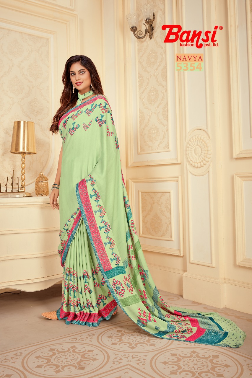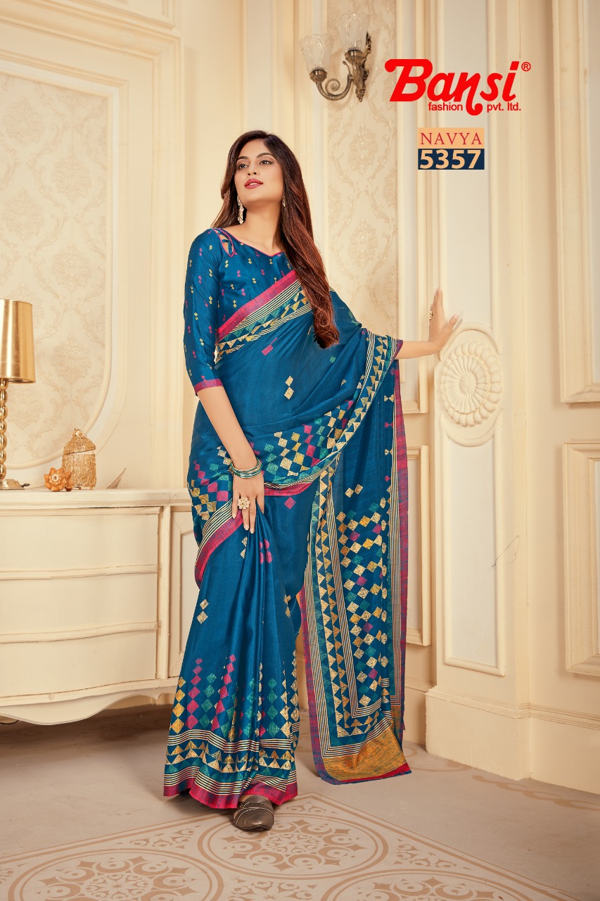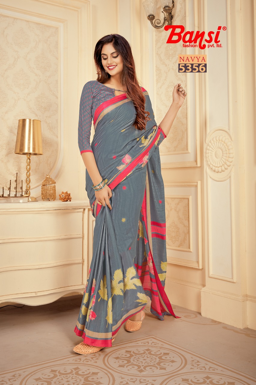 Bansi Launch Navya Fiona Satin Print Simple Sobar Saree At Chipest Price In Surat Market