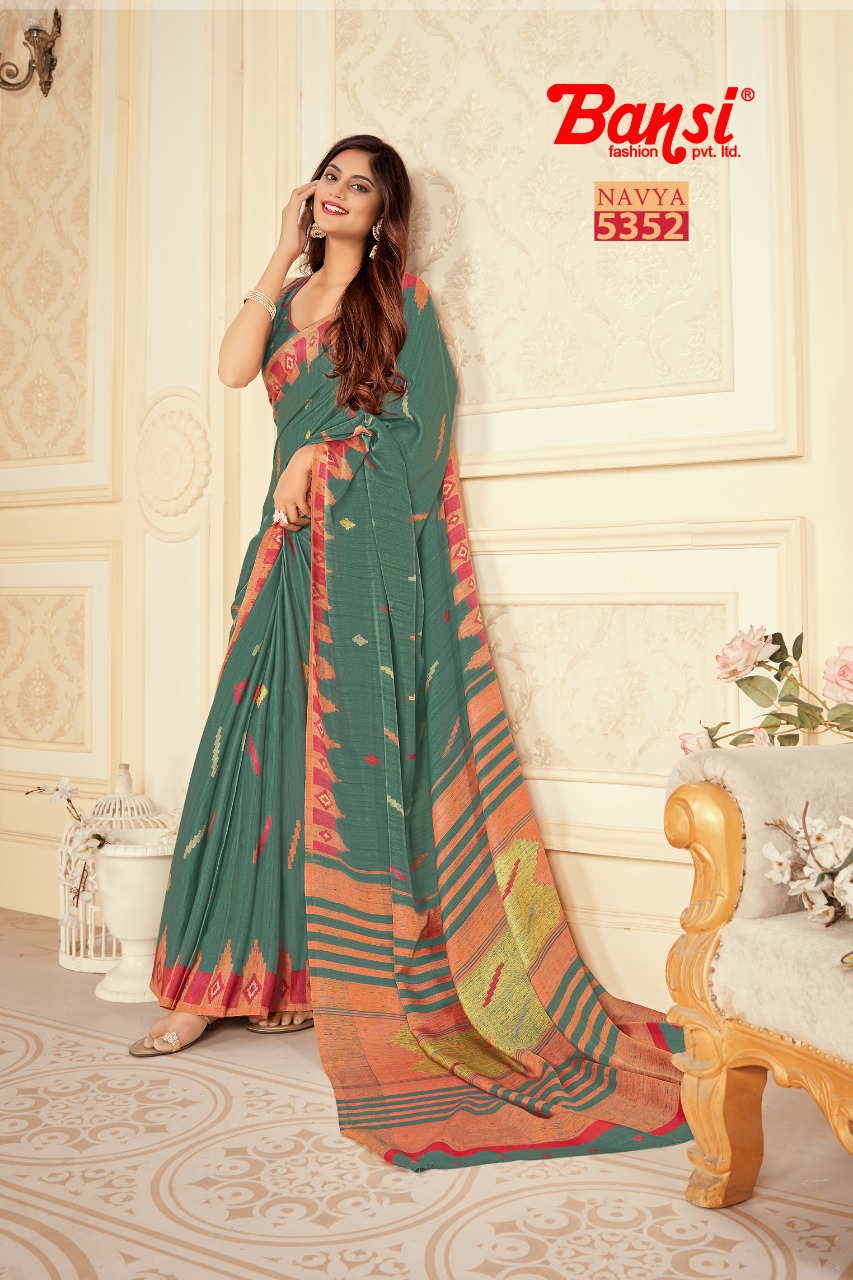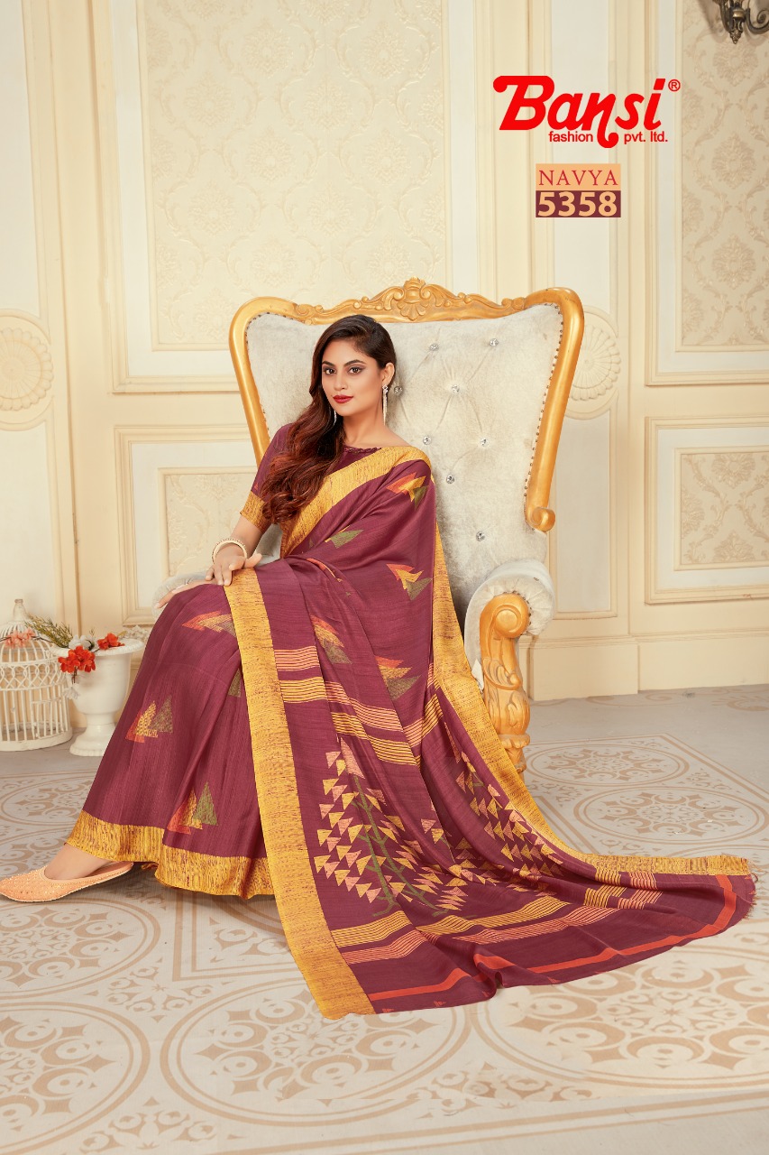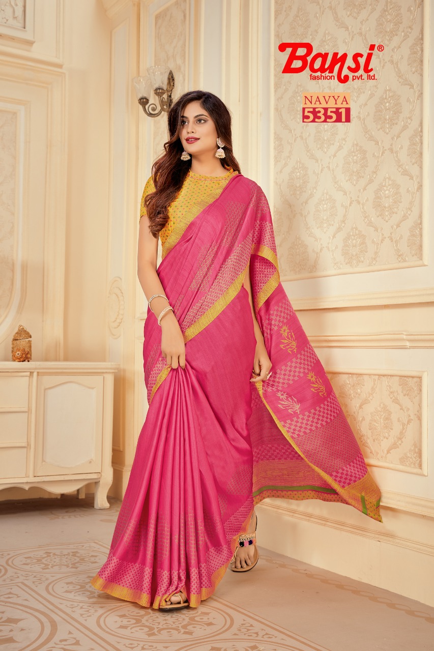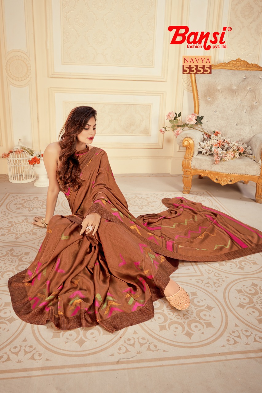 Bansi Launch Navya Fiona Satin Print Simple Sobar Saree At Chipest Price In Surat Market