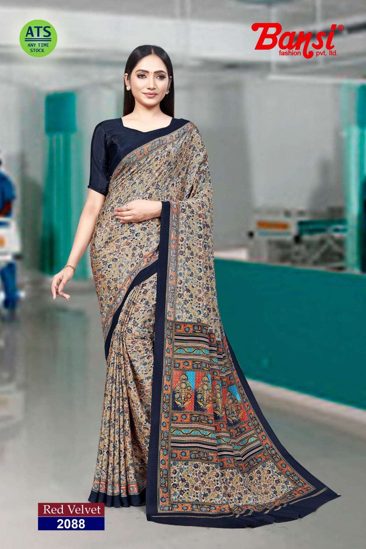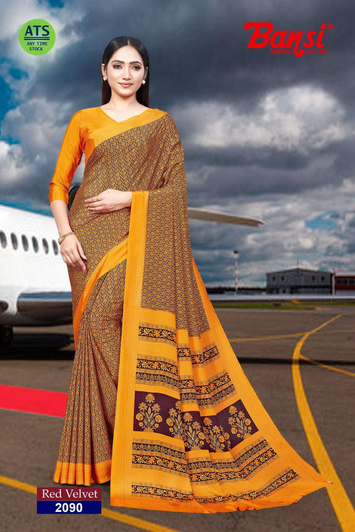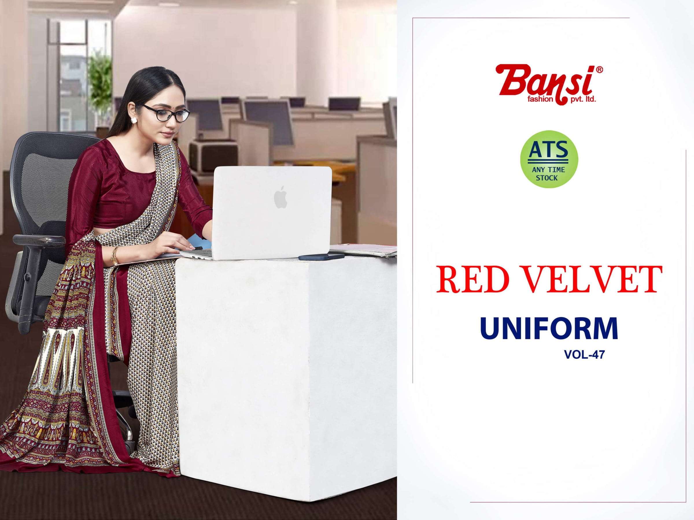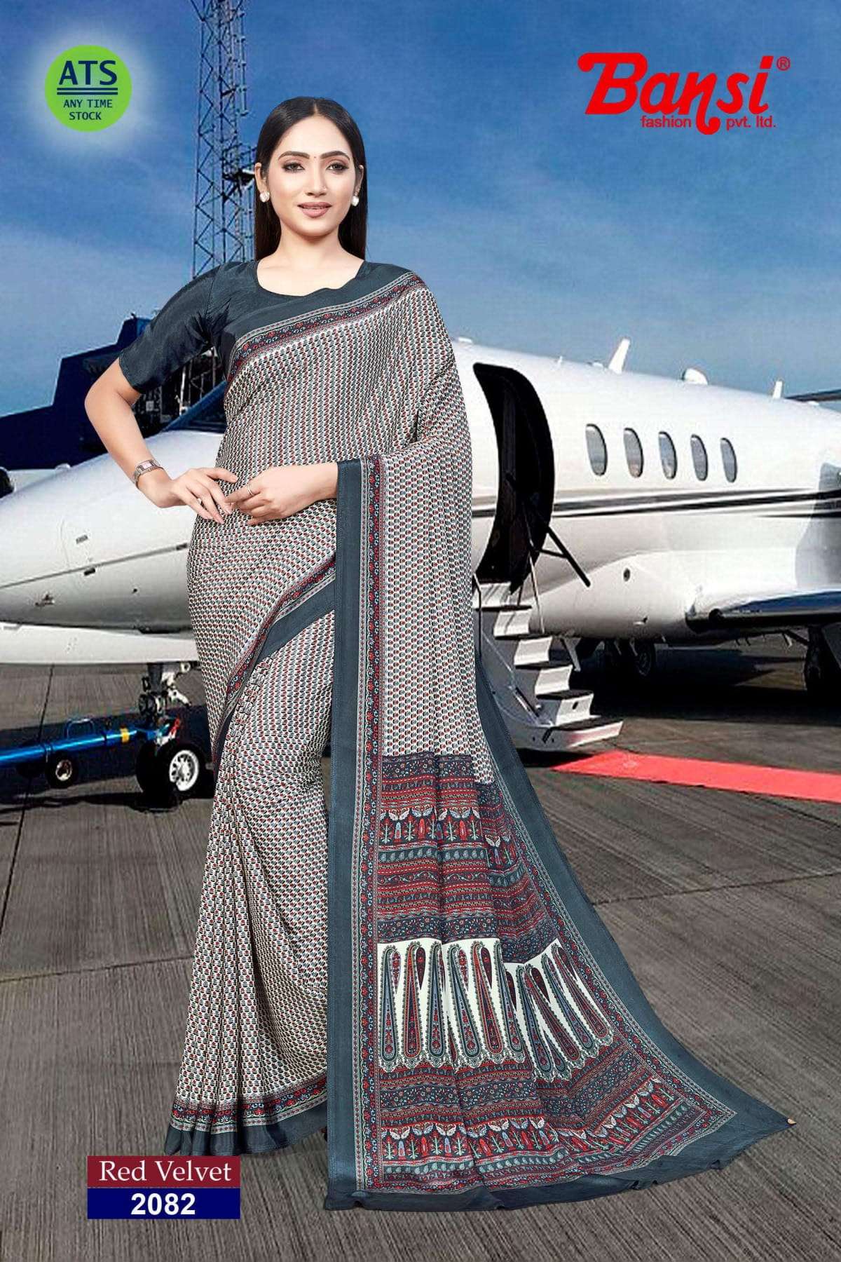bansi red velvet uniform vol 47 silk crepe airline uniform sarees