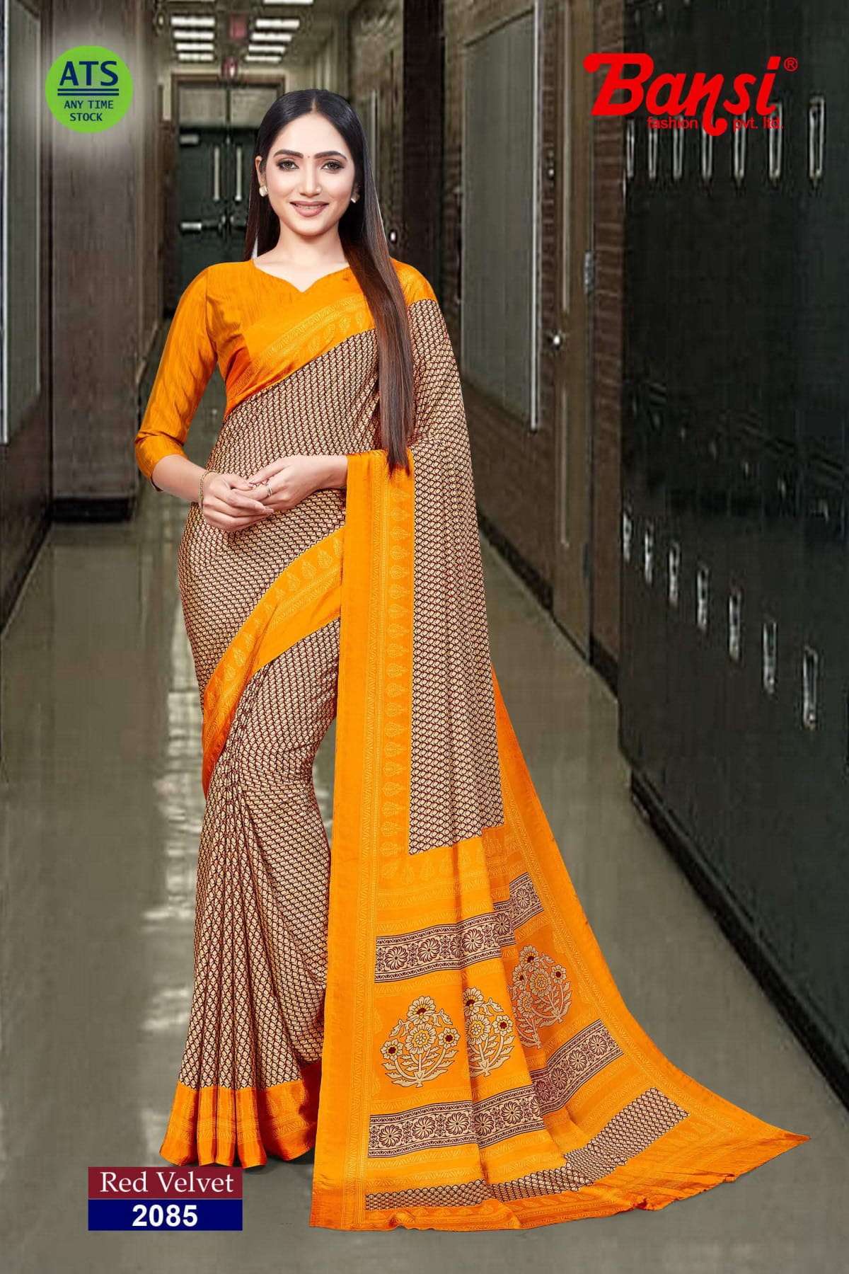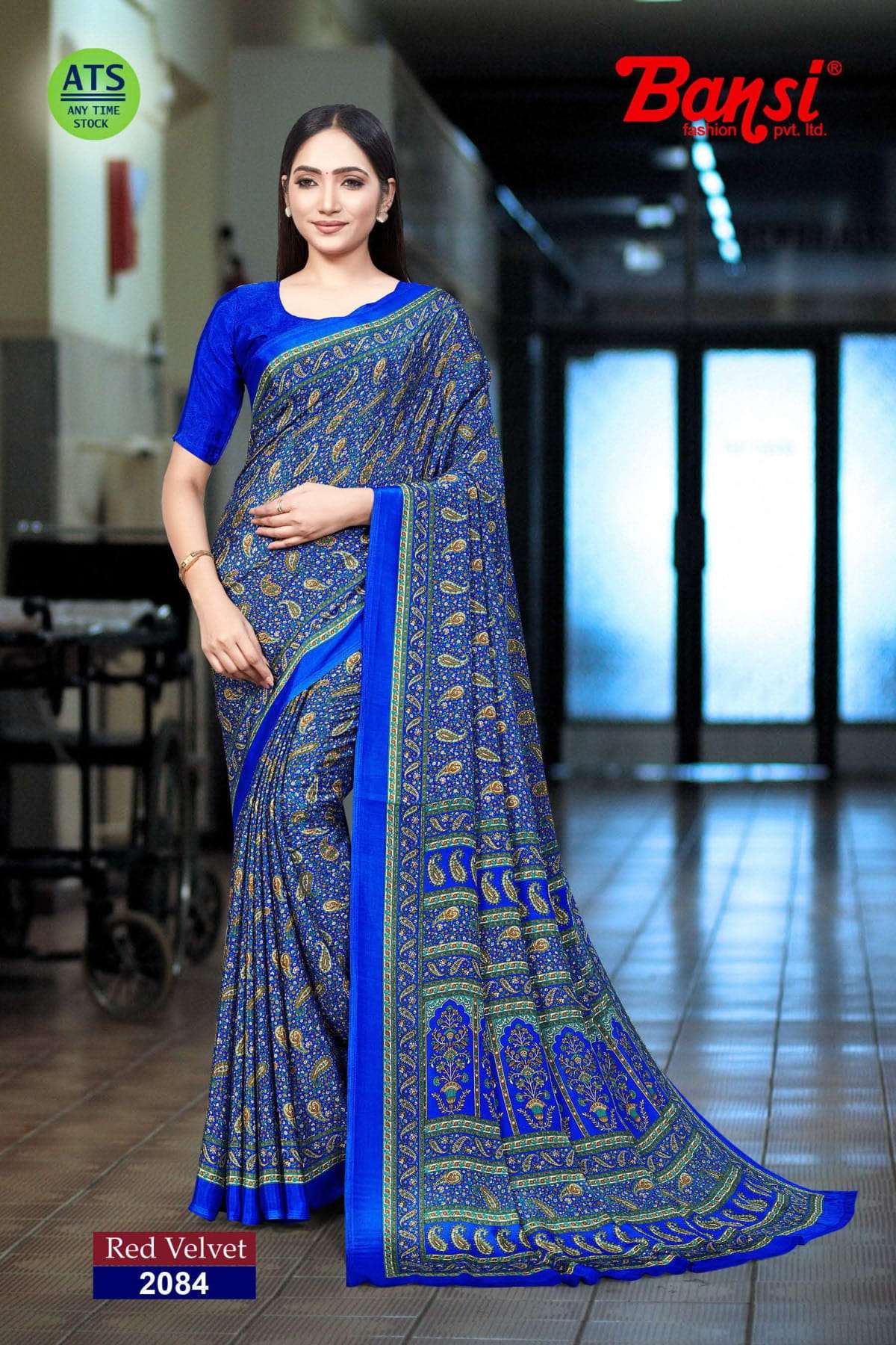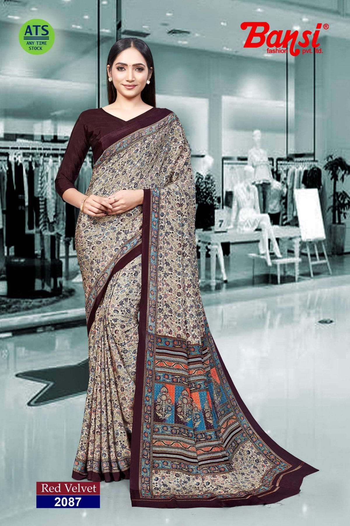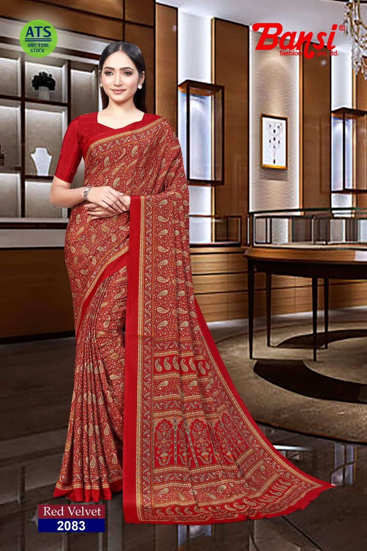 bansi red velvet uniform vol 47 silk crepe airline uniform sarees