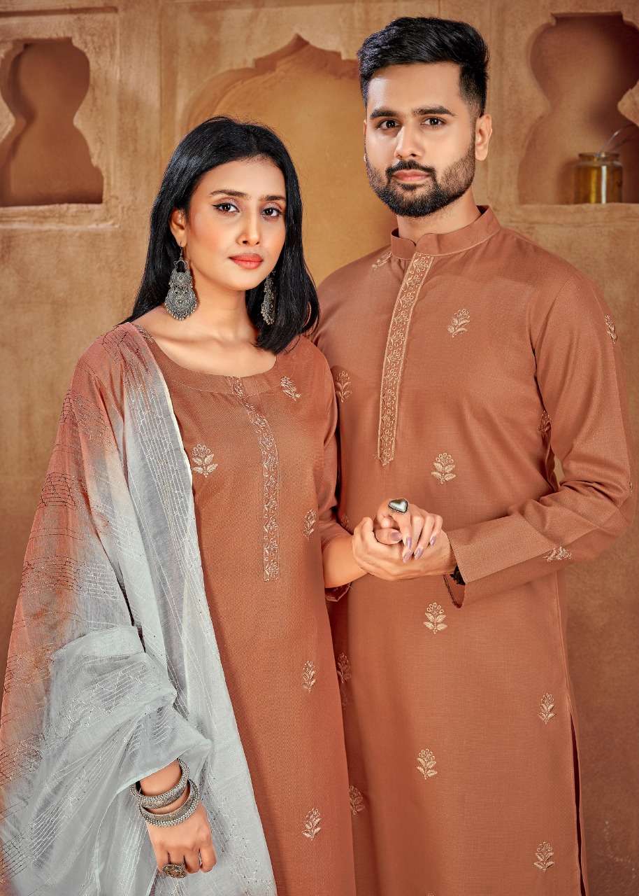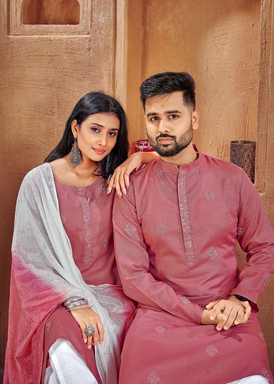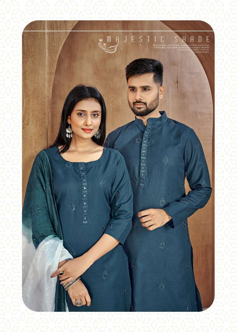 banwery fashion couple goal vol 2 embroidery work kurta and pajama couple combo set