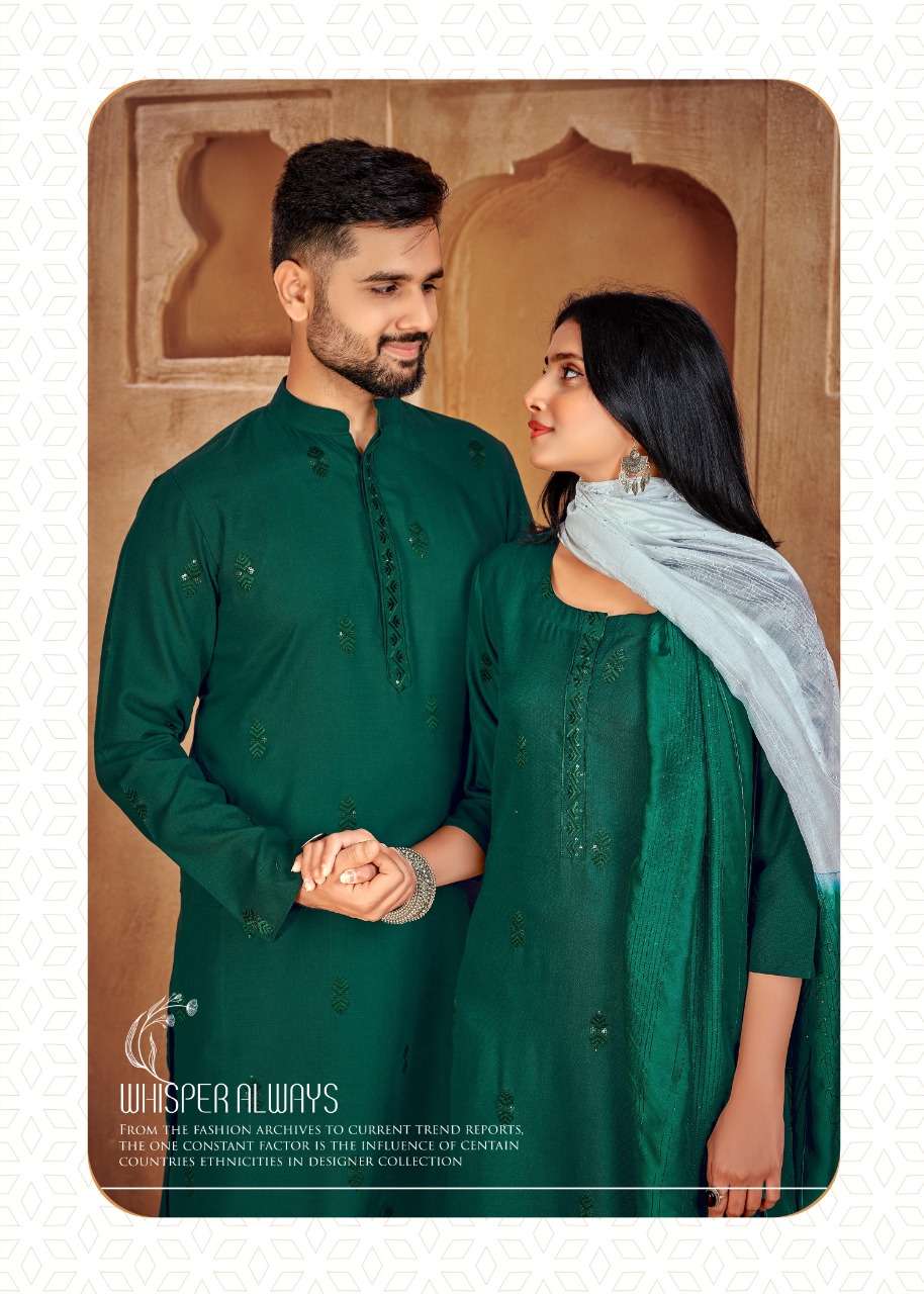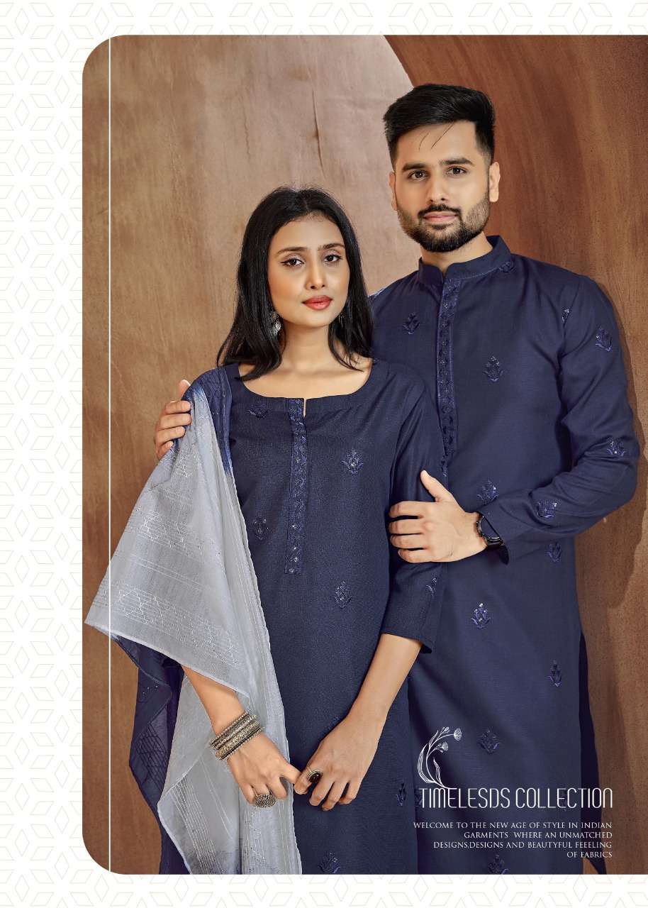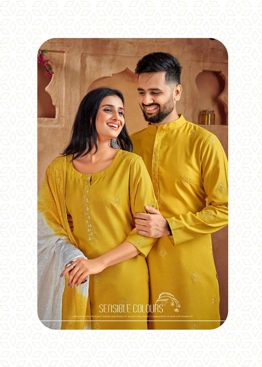banwery fashion couple goal vol 2 embroidery work kurta and pajama couple combo set