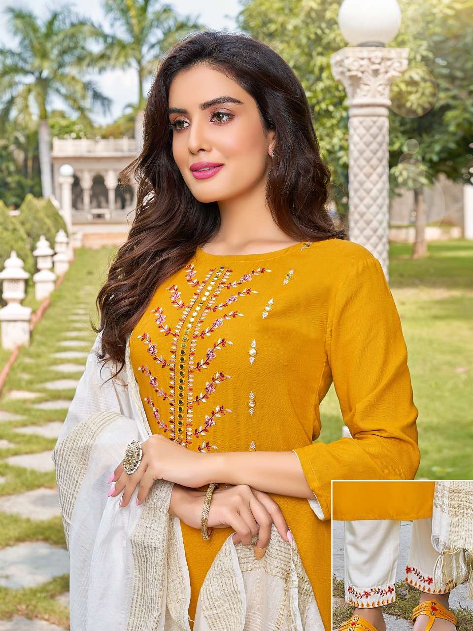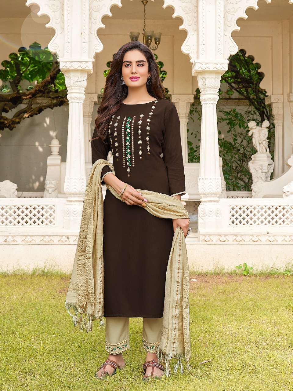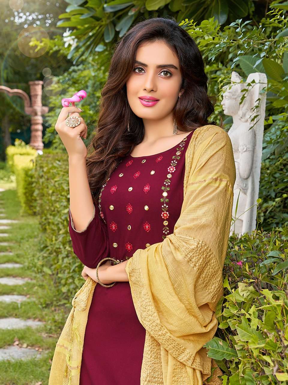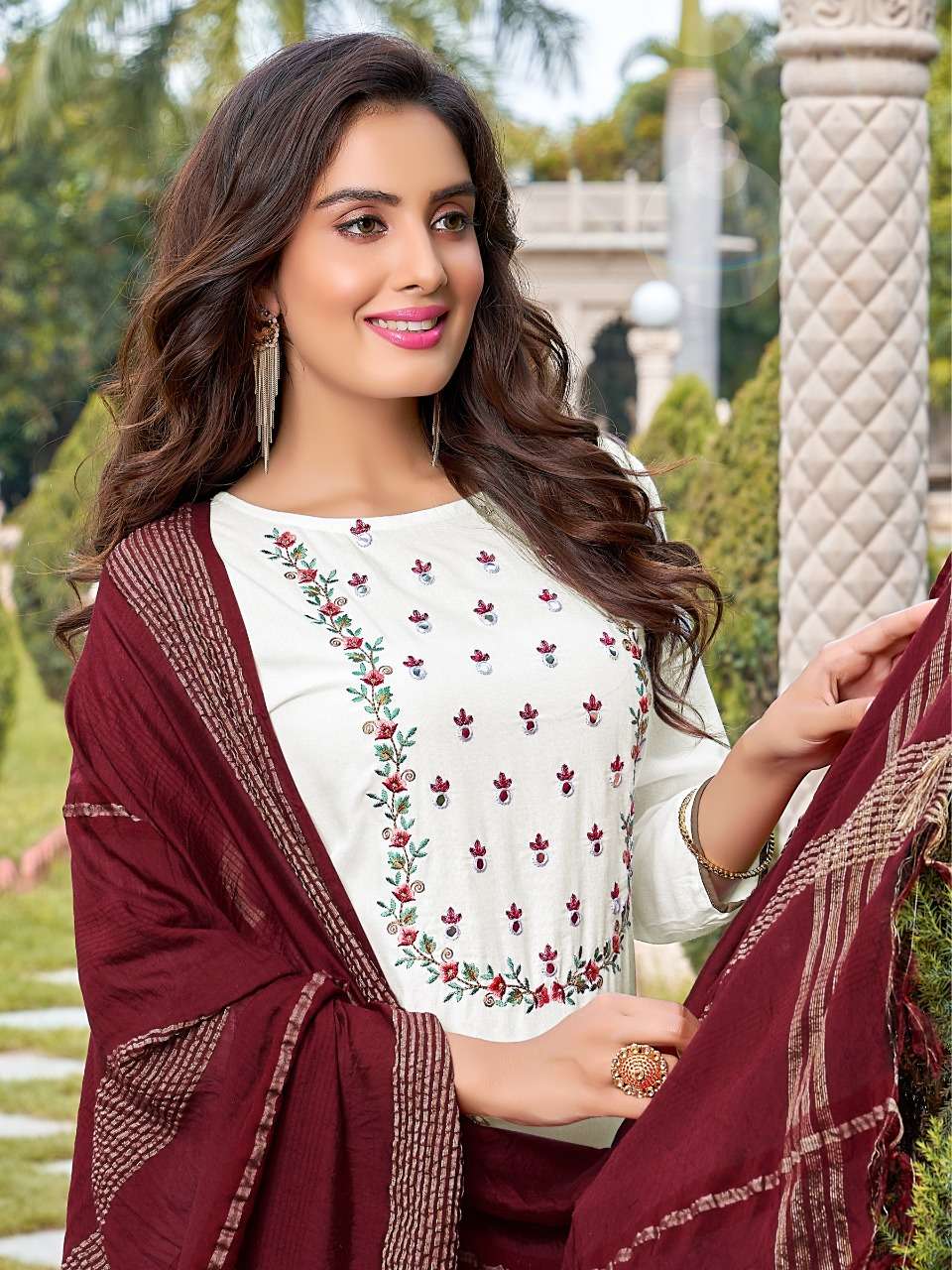 🔥🔥BANWERY🔥 THREE PIECE CATALOGUE KURTI WITH PENT WITH DUPATTA - TOP - PENT - DUPATTA - WORK - TOP 46" inch length Color : 6 Color 💢RATE - 850/- + 5%GST