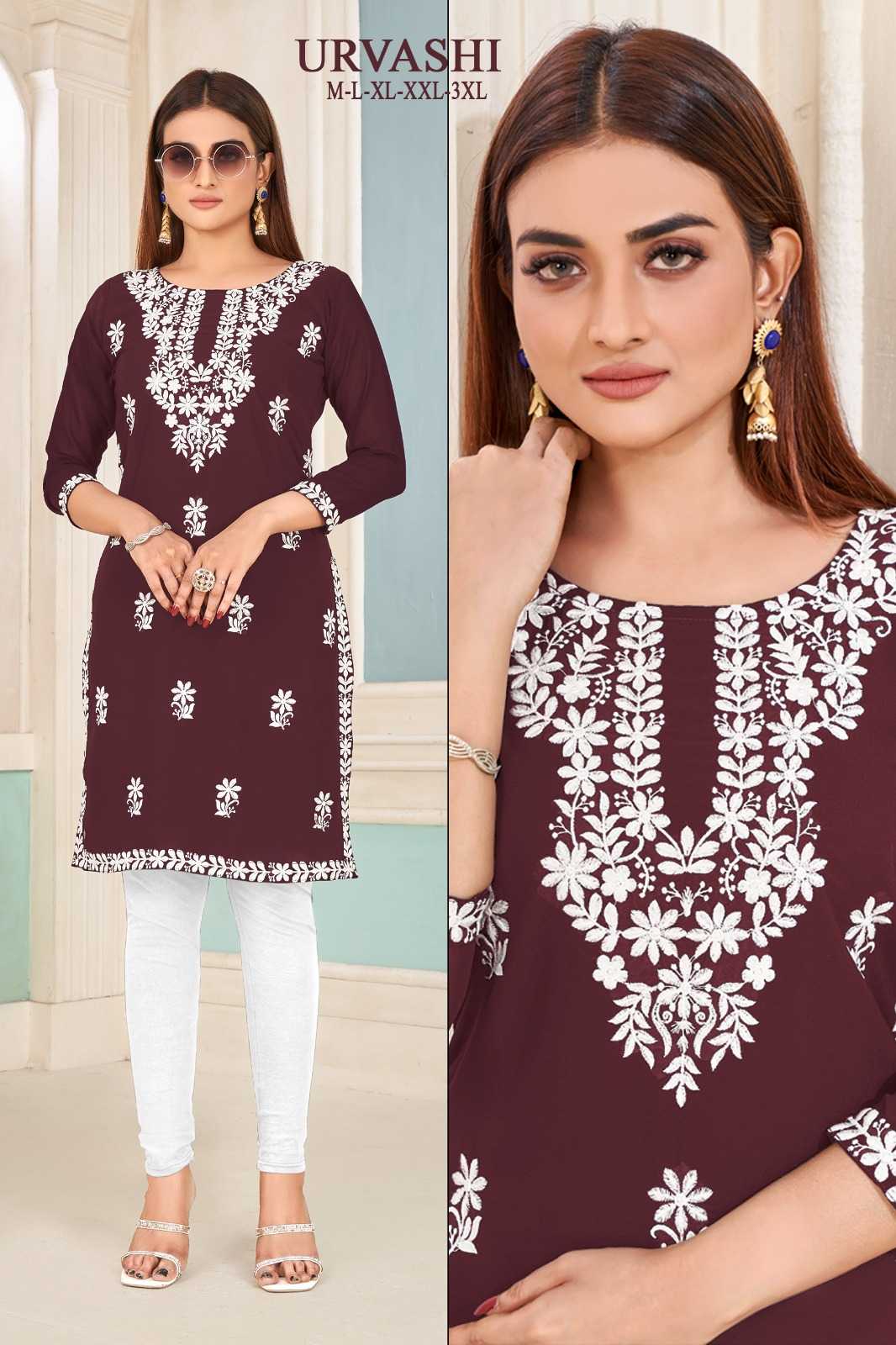 banwery fashion urvashi stitched white cotton embroidery elegant kurti