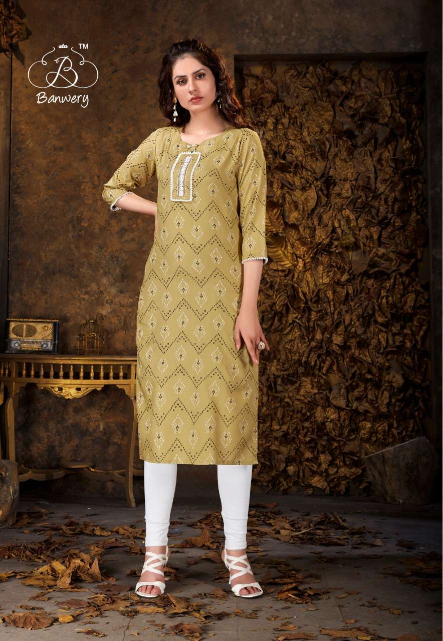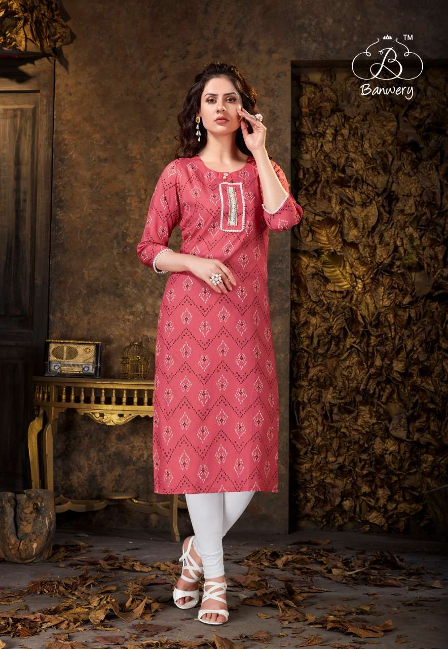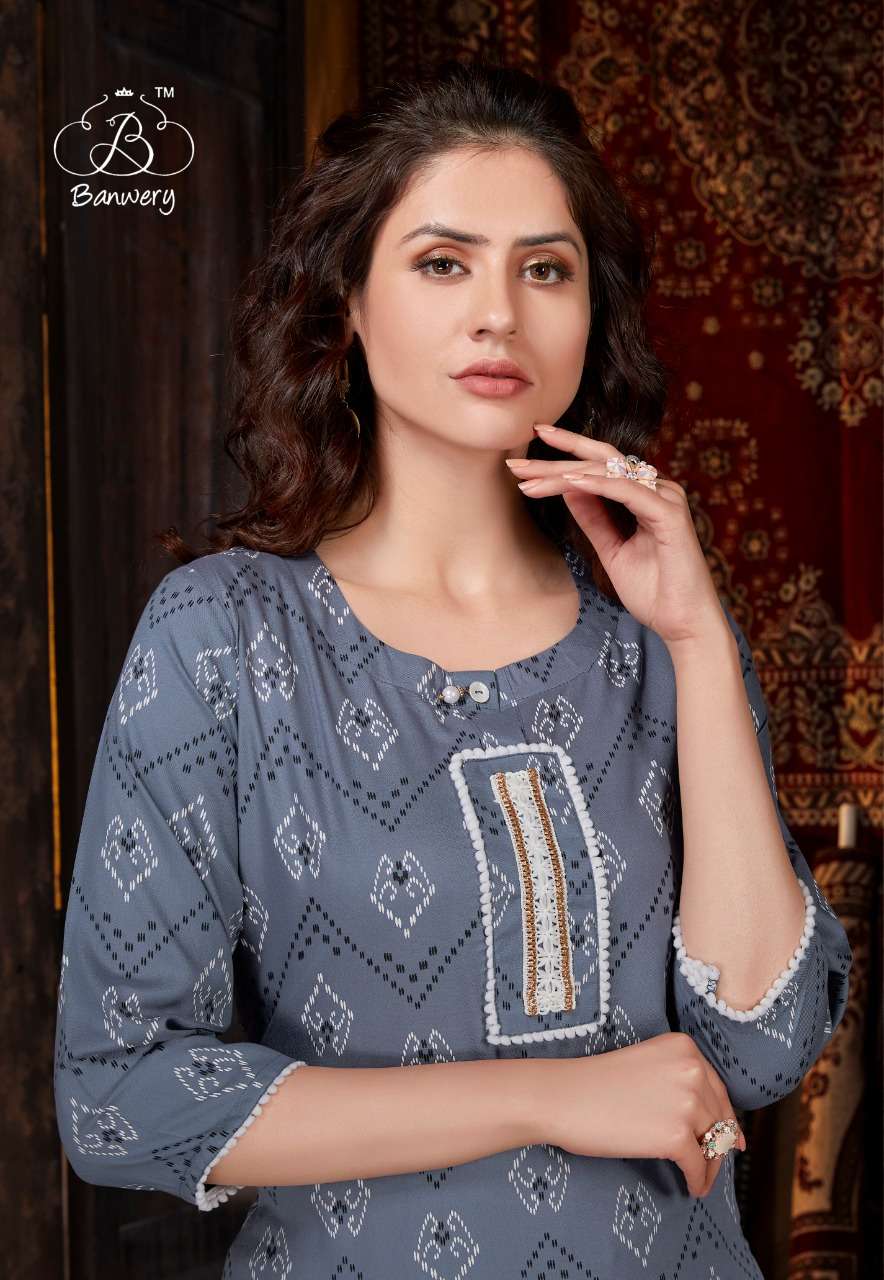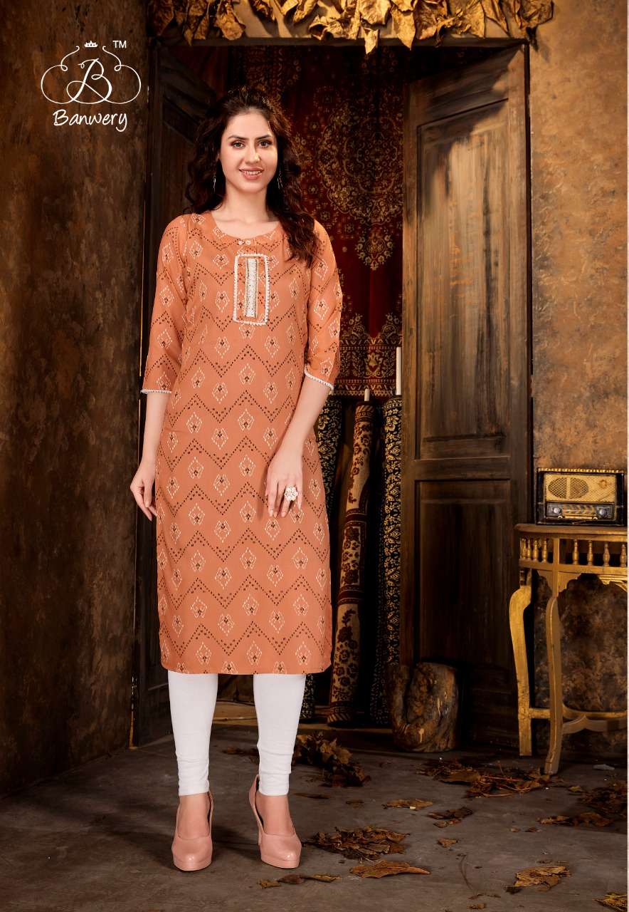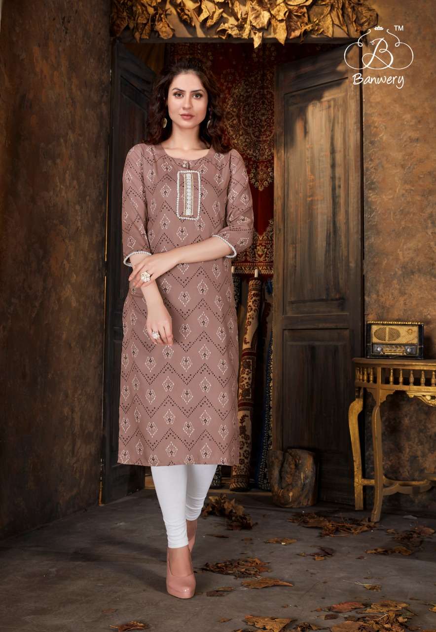 banwery kizie rayon printed simple ladies kurti wholesaler