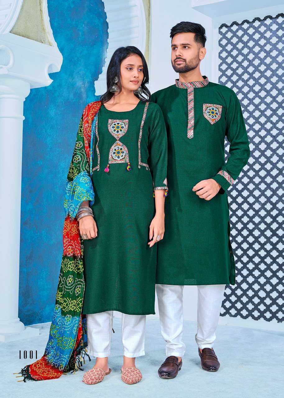 banwery navratri Special Couple combo of Kurta with Payjama and Kurti with Pants & Dupatta