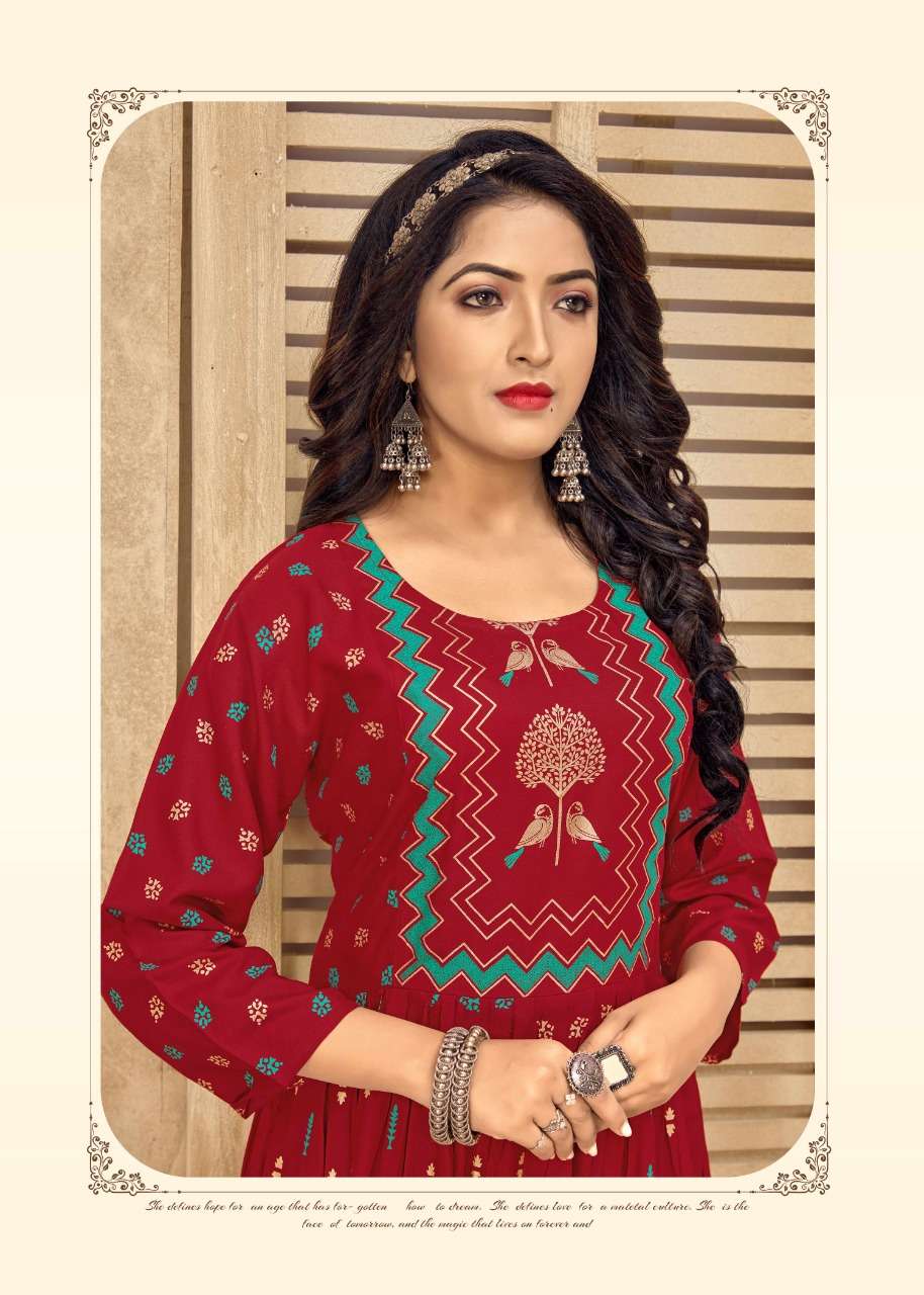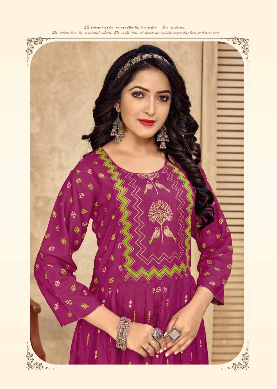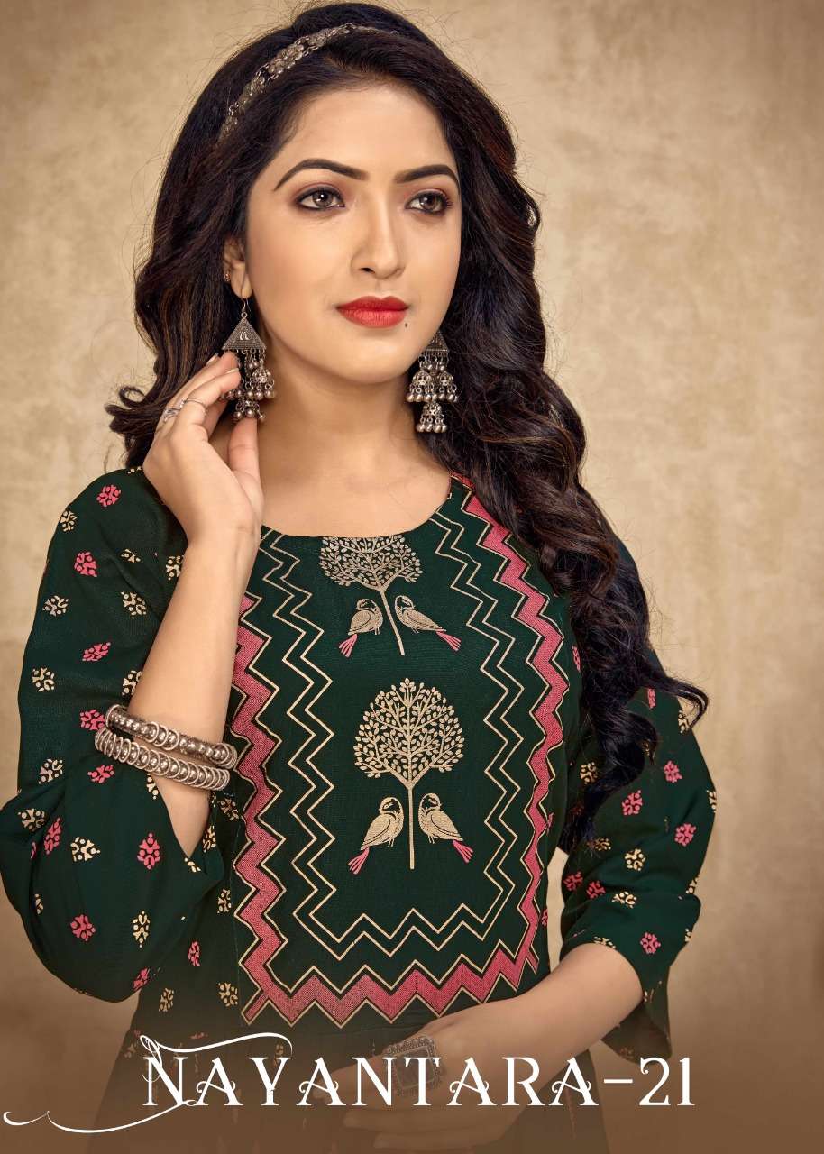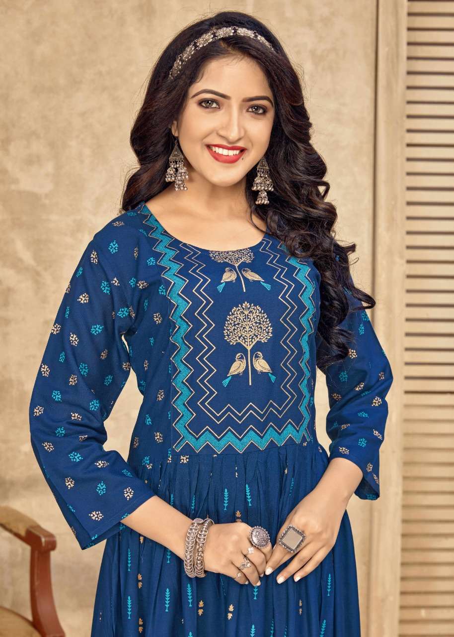 Banwery fashion Present NAYANTHARA V-21 Foil Print Flair Gown Fabric: 14kg Rayon with Foil Print Size: Length: 52” Price: 699/- + GST |