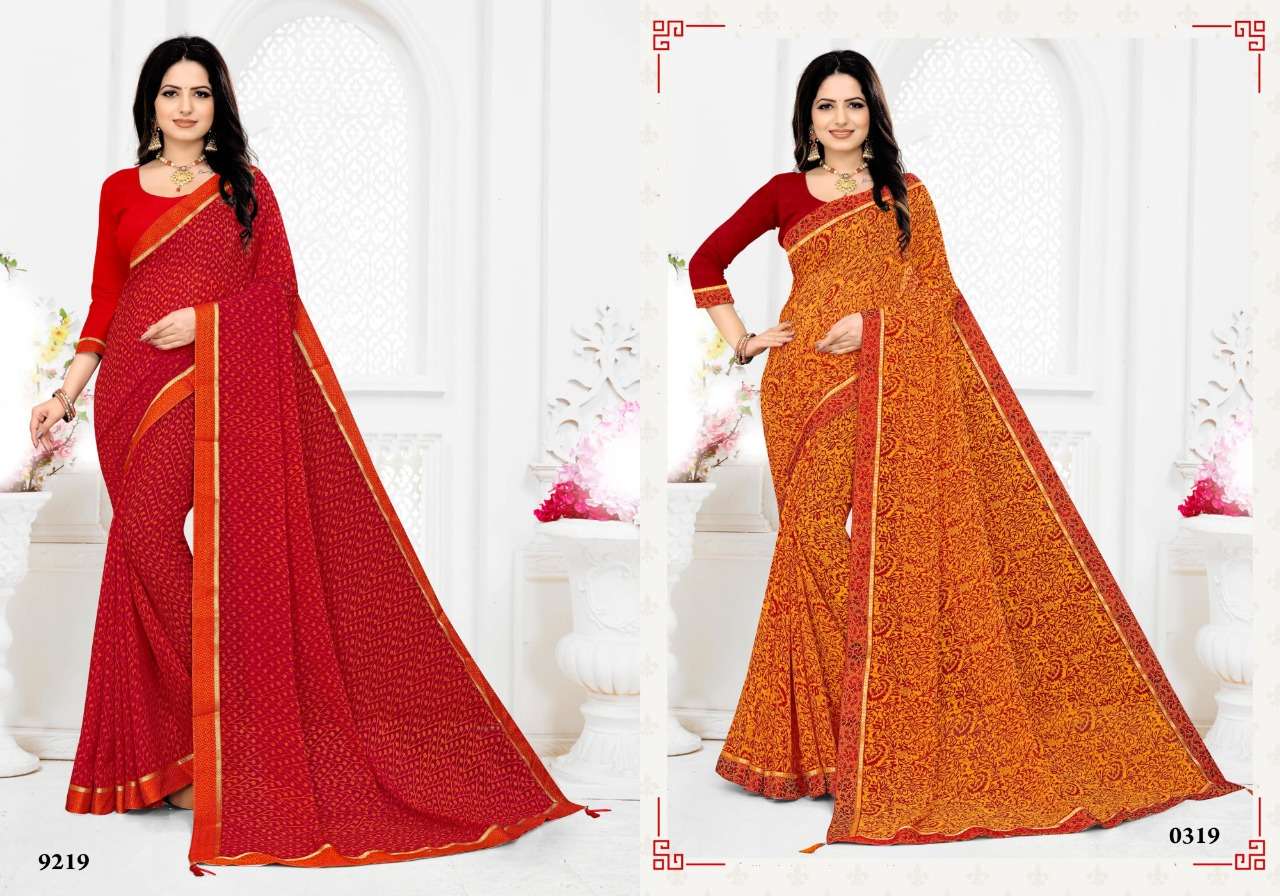 NEW LAUNCHING New ICON-       (PRINT SAREE) CATALOGUE:- WSR Rate:- _* 385 /- per pcs Set to set Brand:- BARGAD Fabric:- _GEORGETTE_ No. Of Designs:- 8 Packing pcs:- Set Combo Pack NOTE:- CUT 6.30 MTR |