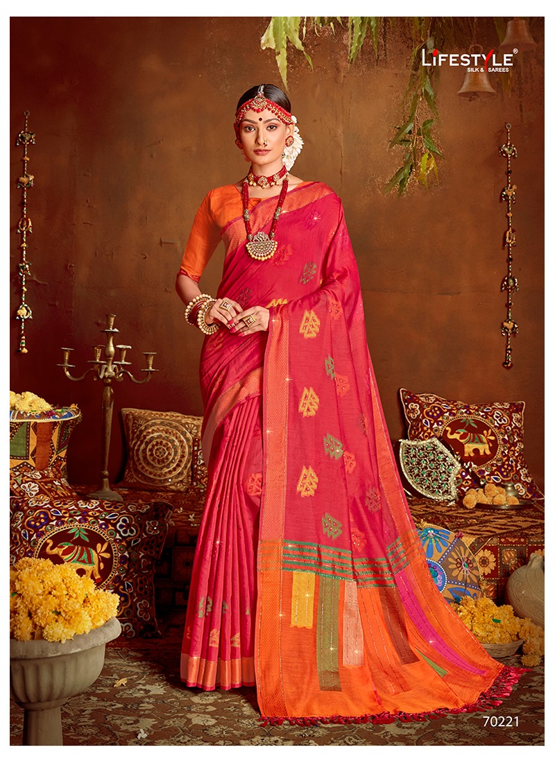 Lifestyle Saree Presents Latest Collection Launched on 20-01-2021. Presenting Beautiful collection of 6 PCS with Unstitched .