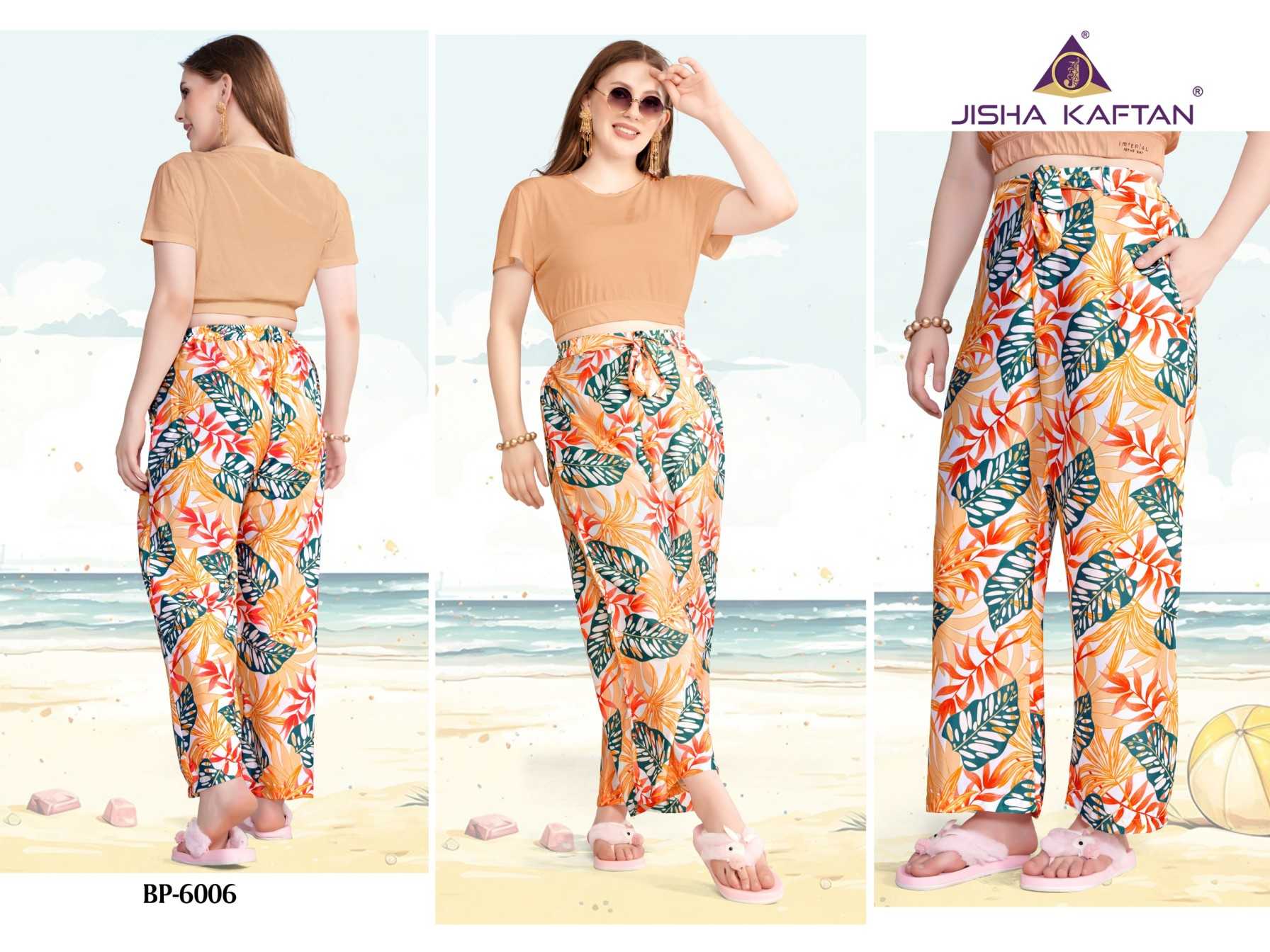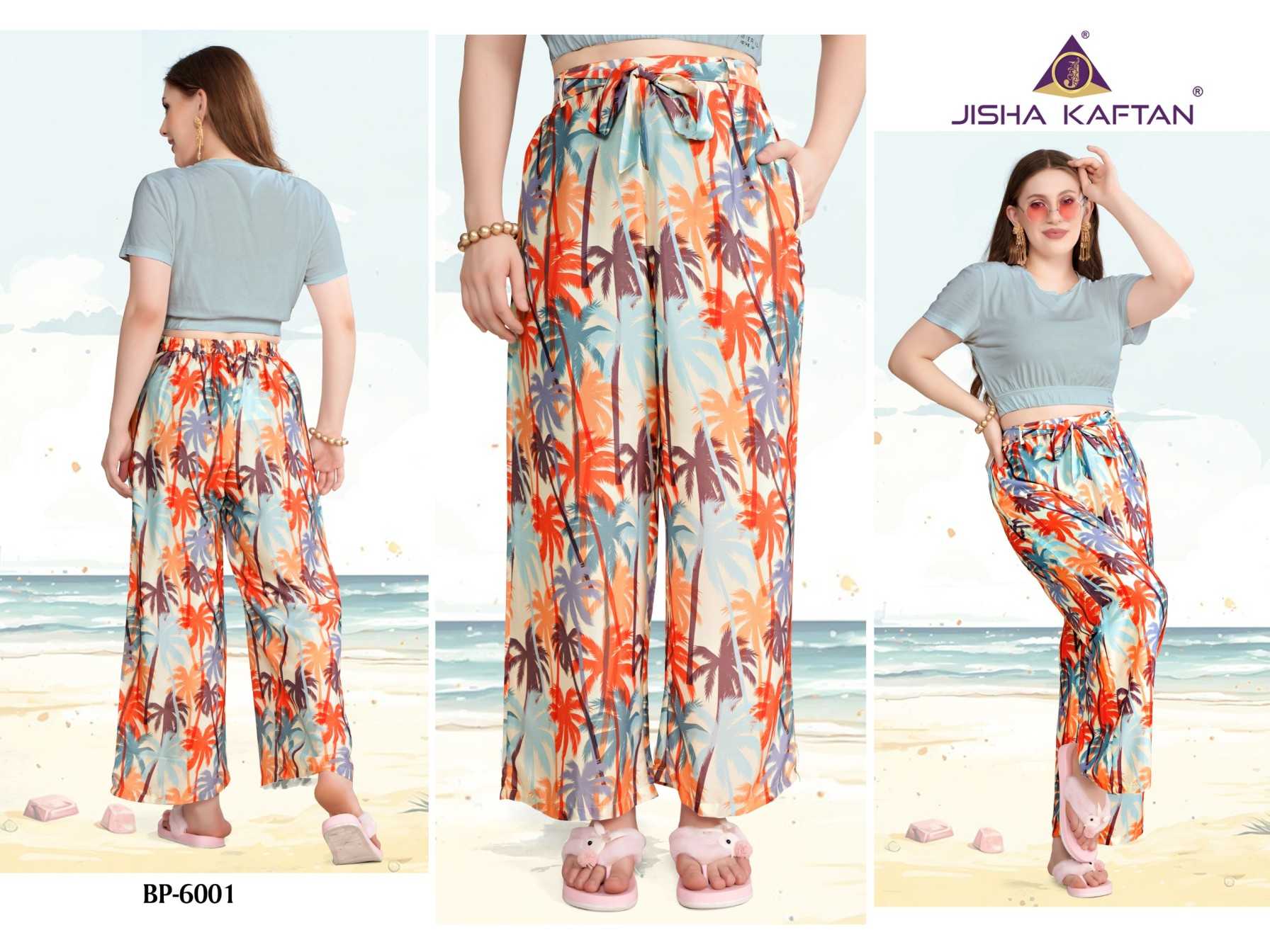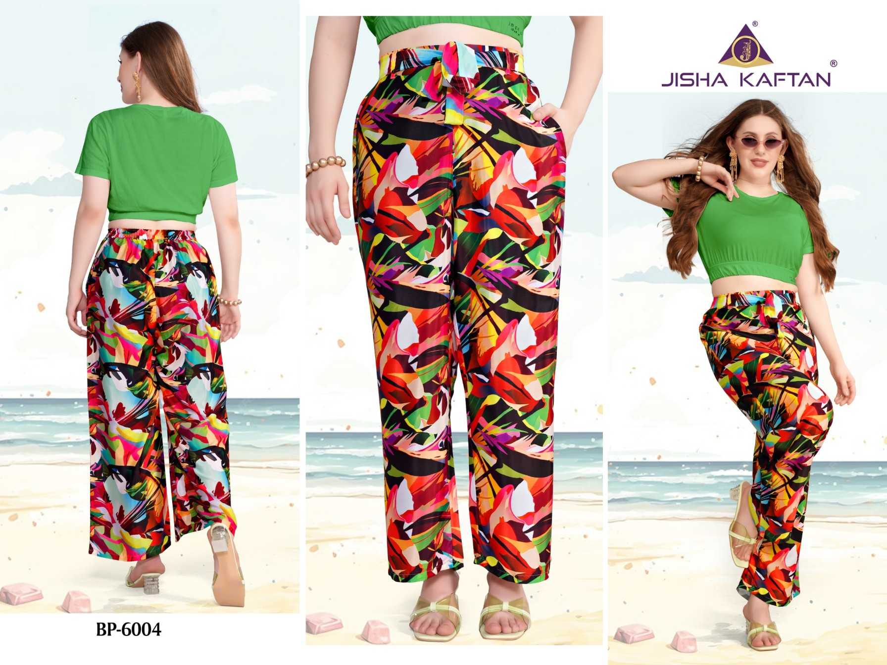 JISHA KAFTAN PRESENTS From Beach to Street: The Must-Have Pant for Any Occasion. Say Goodbye To Uncomfortable Pants This is the future of casual wear pants. Beach pants are made from soft and flowy feather silk fabric, ensuring a comfortable fit that moves with you as you enjoy the sun and surf. Our features digitally printed designs that capture the essence of summer, including vibrant tropical flower patterns, perfect for adding a splash of color to your beach day look. FABRIC :- FEATHER SILK JISHA KAFTAN |