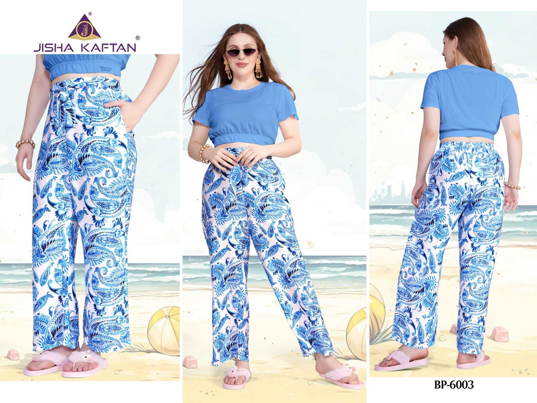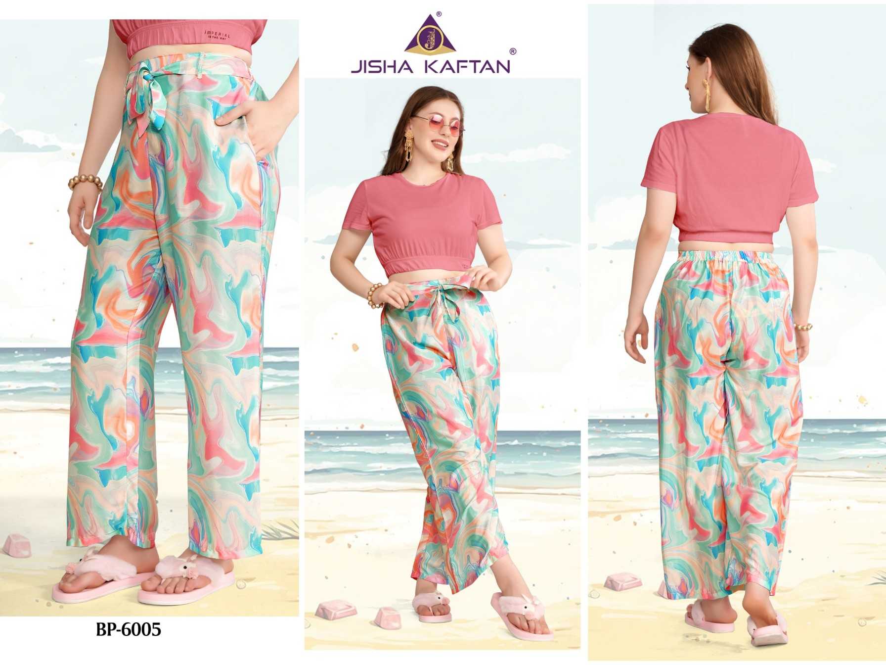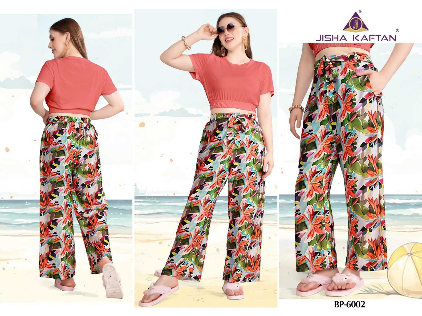 JISHA KAFTAN PRESENTS From Beach to Street: The Must-Have Pant for Any Occasion. Say Goodbye To Uncomfortable Pants This is the future of casual wear pants. Beach pants are made from soft and flowy feather silk fabric, ensuring a comfortable fit that moves with you as you enjoy the sun and surf. Our features digitally printed designs that capture the essence of summer, including vibrant tropical flower patterns, perfect for adding a splash of color to your beach day look. FABRIC :- FEATHER SILK JISHA KAFTAN |