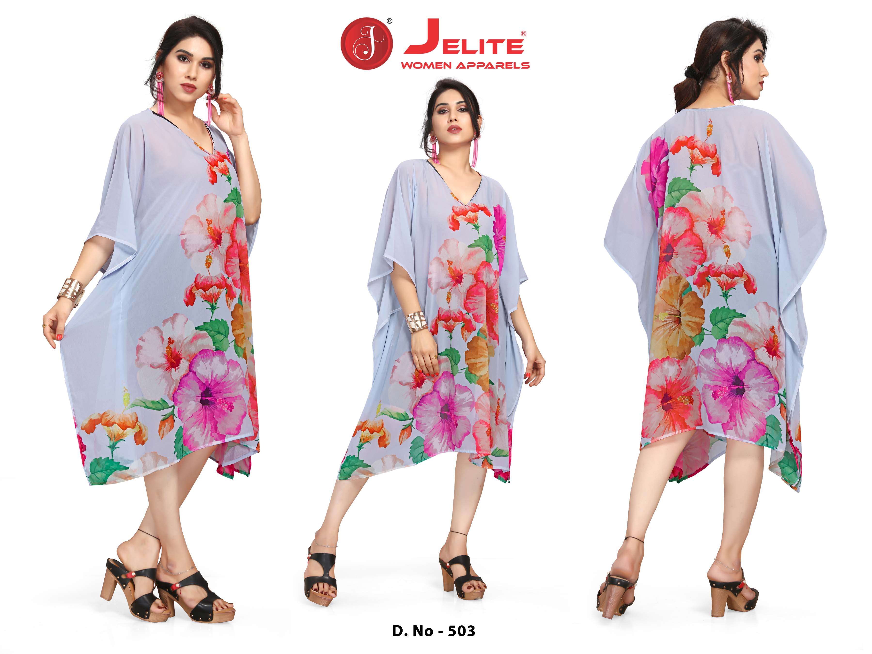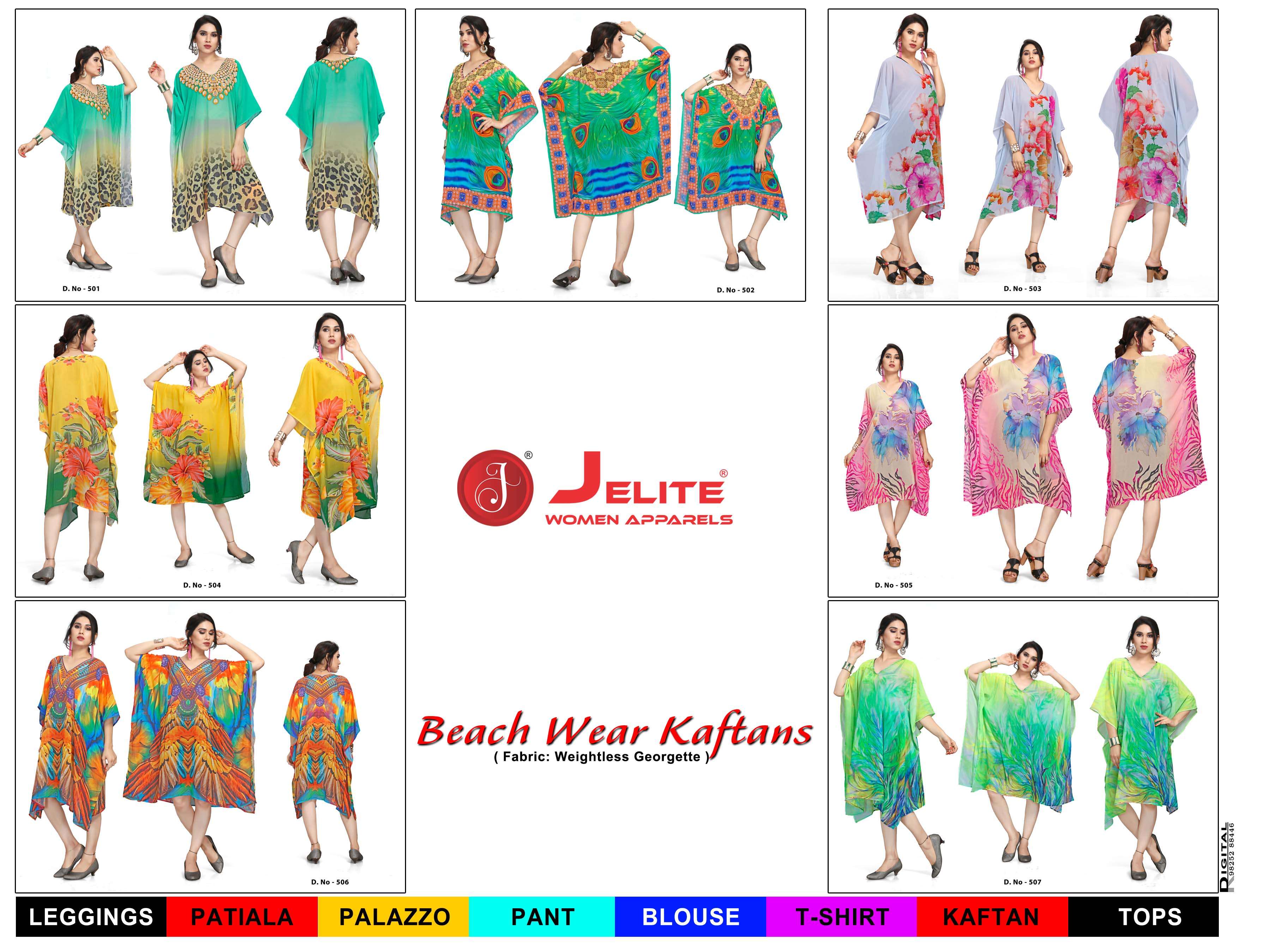 | Other Details | Jelite Presents Beachwear Kaftans Pretty, hot and tempting just how you want to look like on your Casual Days. Casual or vacation style, we have got you covered as Jelite presents Digitally Printed Beachwear Kaftans. It's time to pamper yourself in our contemporary Kaftan collection to keep you comfortable and going all day. Size - Free Size (Fits M to 4Xl) Length : 39 - 40" Fabric - Weightless Georgette Style : Digitally Printed A set of 7 beautiful designs |