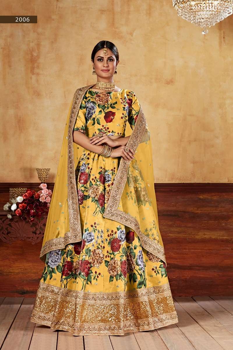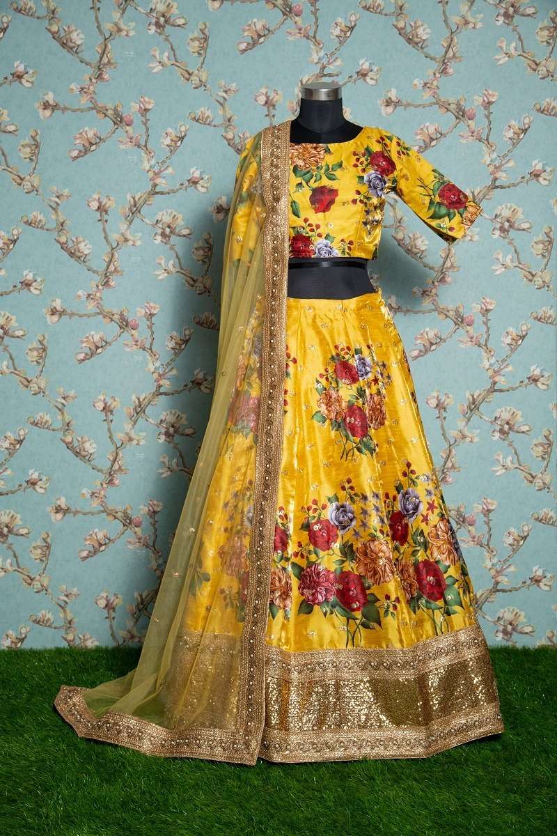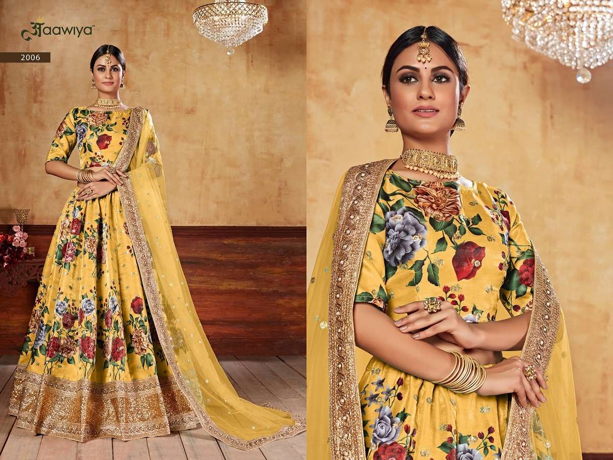 beautiful flower printed yellow colour lehenga choli 2006 lishvaa vol 1 by aawiya