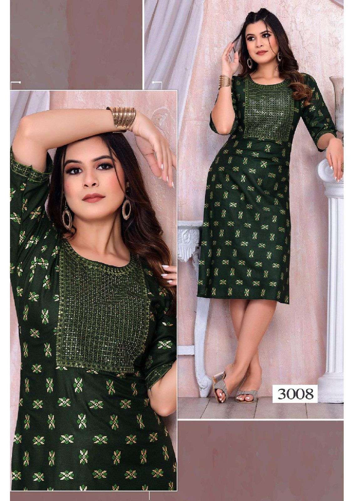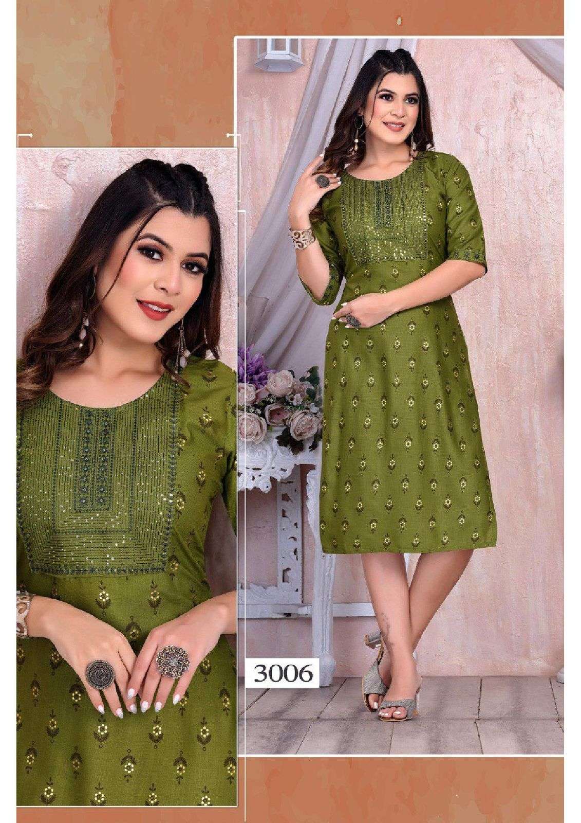 🧶Launching New Catalouge🧵 ✨ Details Catalouge : 💃 BEAUTY GIRL MUSKAN 💃 👗Fabrics - ▶️ HEAVY RAYON SLUB ✂️Style - STRAIGHT WITH ROUND NECK AND EMBROIDERED SLEEVES 🧥Pattern : WITH SELF SEQUINS EMBRO WITH DUAL COLOR AND GOLD FOIL PRINTED 📯Sleeves type : 3/4TH ☣ No. Of Designs - 10 🎨colors - 10 🎗Size - XL(20) , XXL(22) 🌈 Length - 41+📐 Rate - 299/- |