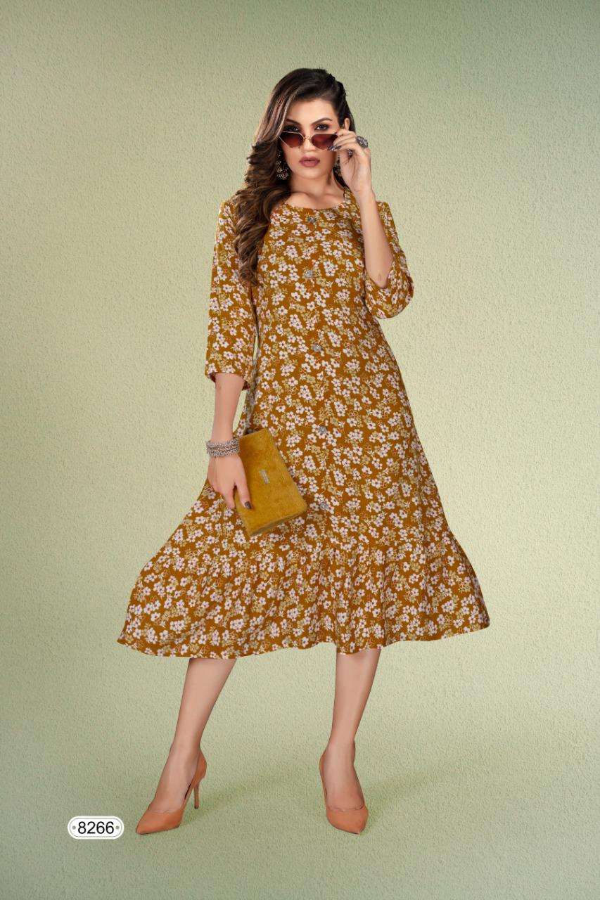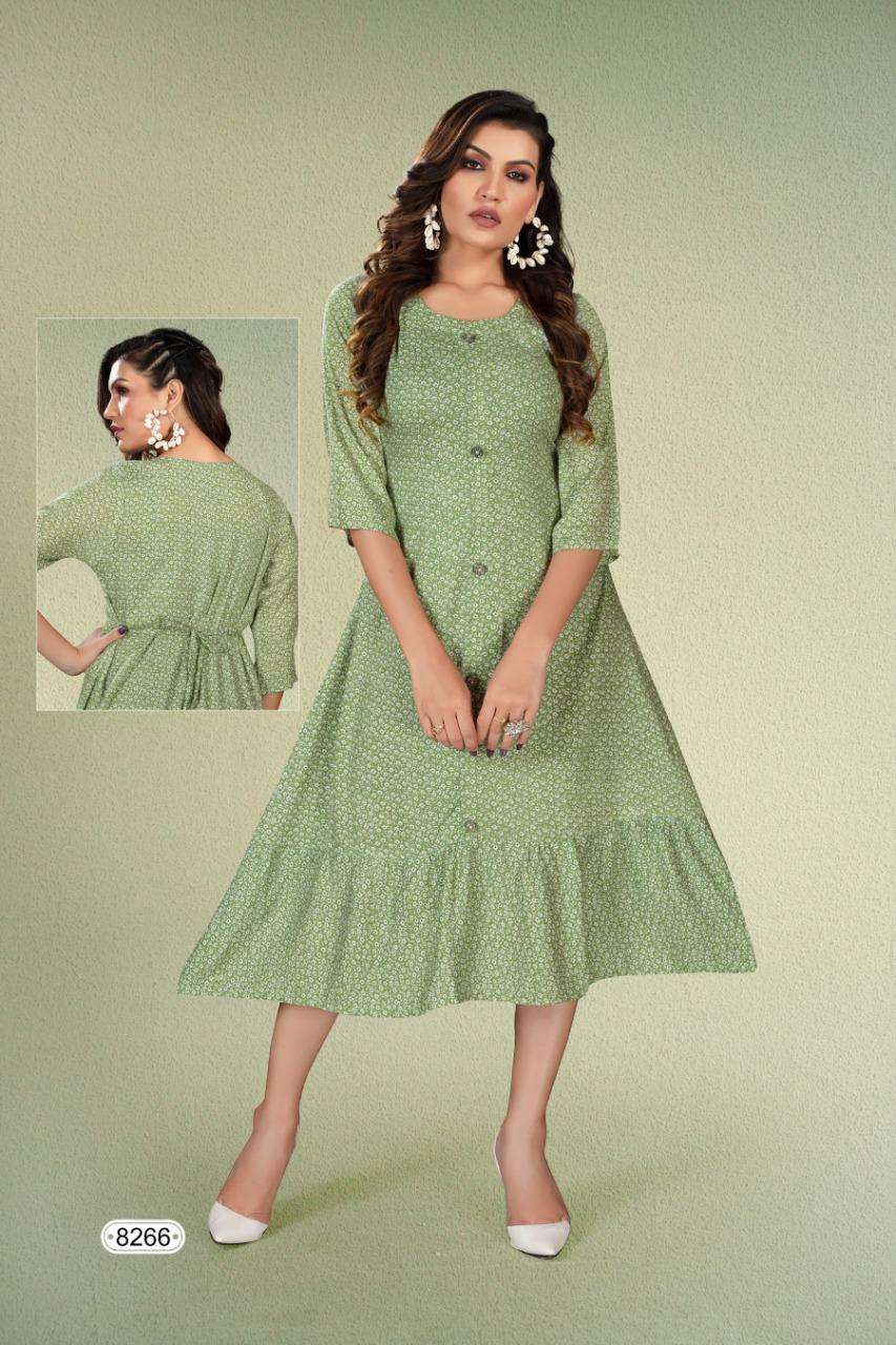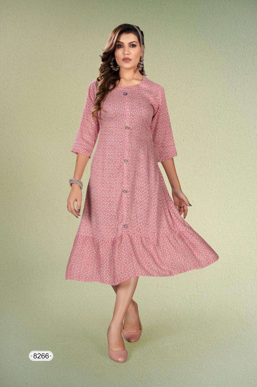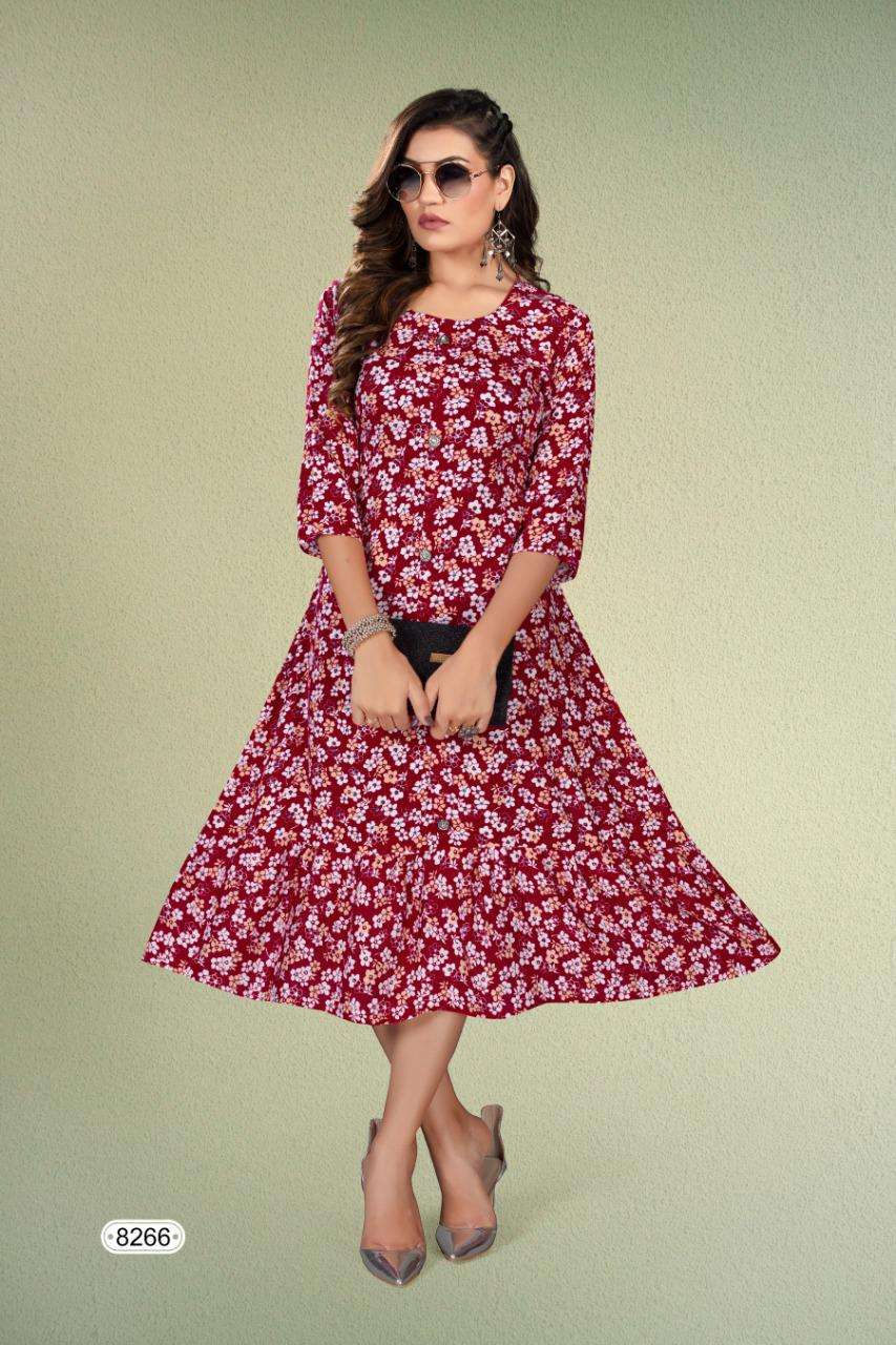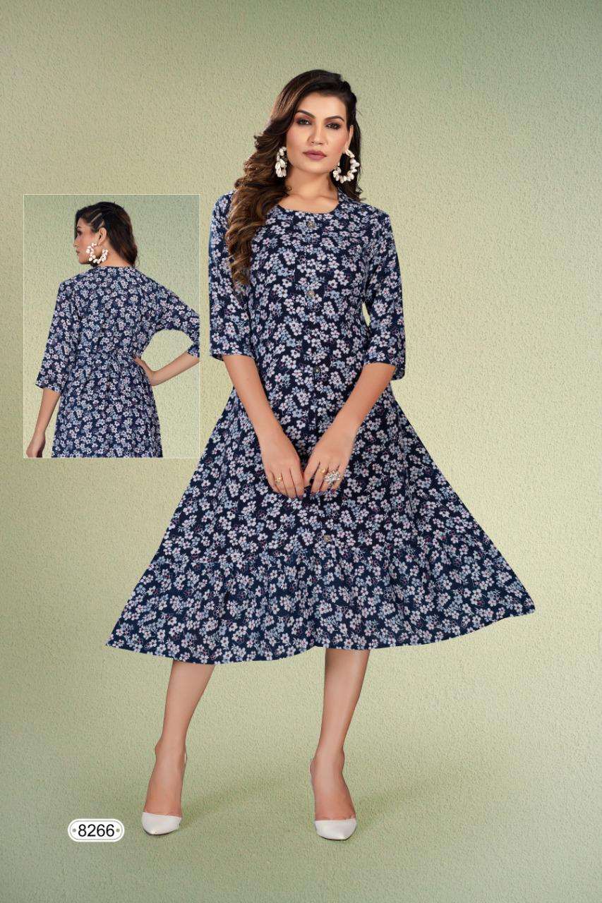 📒NAME: BEAUTY KANCHAN VOL.1 👗 Fabric: HEAVY WRINKLE RAYON PRINT Concept: FROCK STYLE ⚜️DESIGNs: 8 SIZEs: M, L, XL, XXL Rate: 495/- |