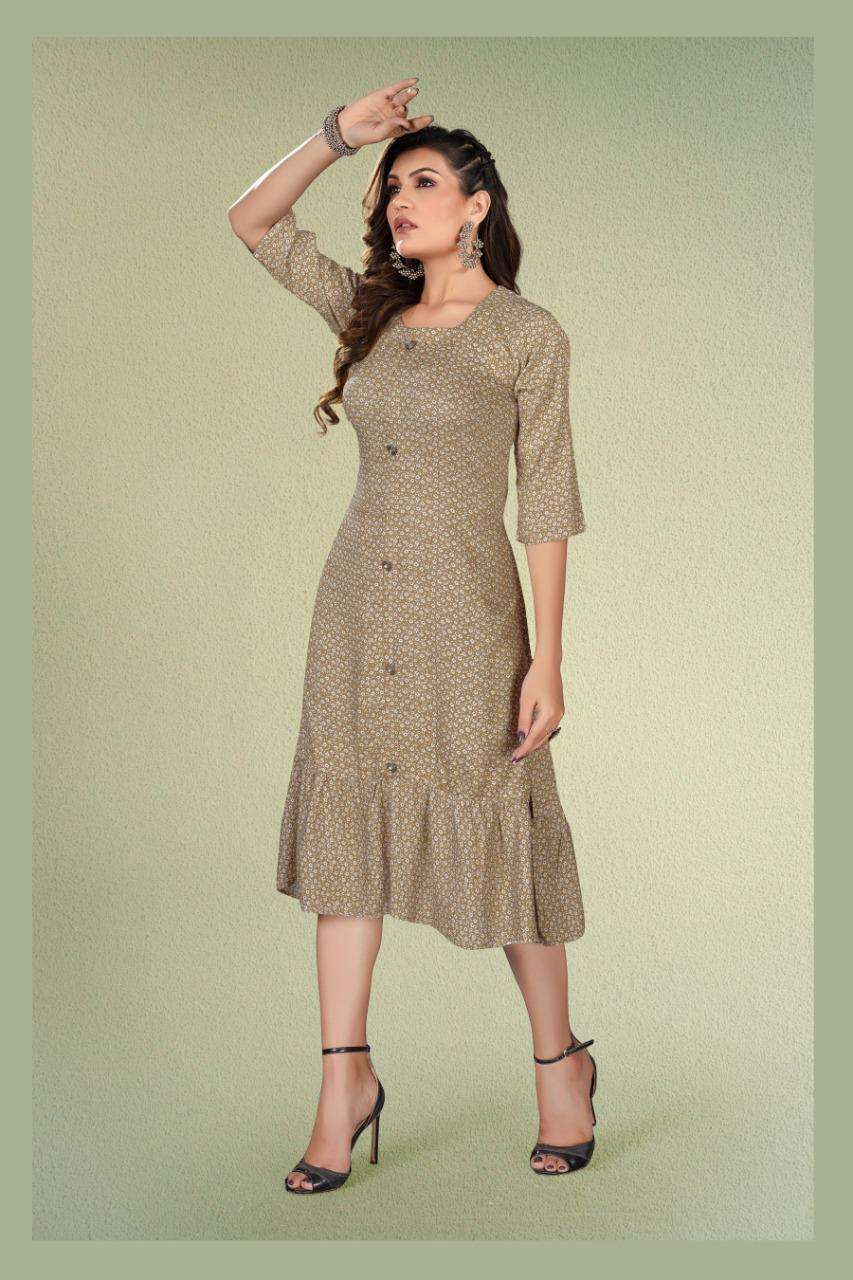 BEAUTY KANCHAN VOL.1 HEAVY WRINKLE RAYON PRINT FROCK STYLE KURTI CATALOG WHOLESALER BEST RATE