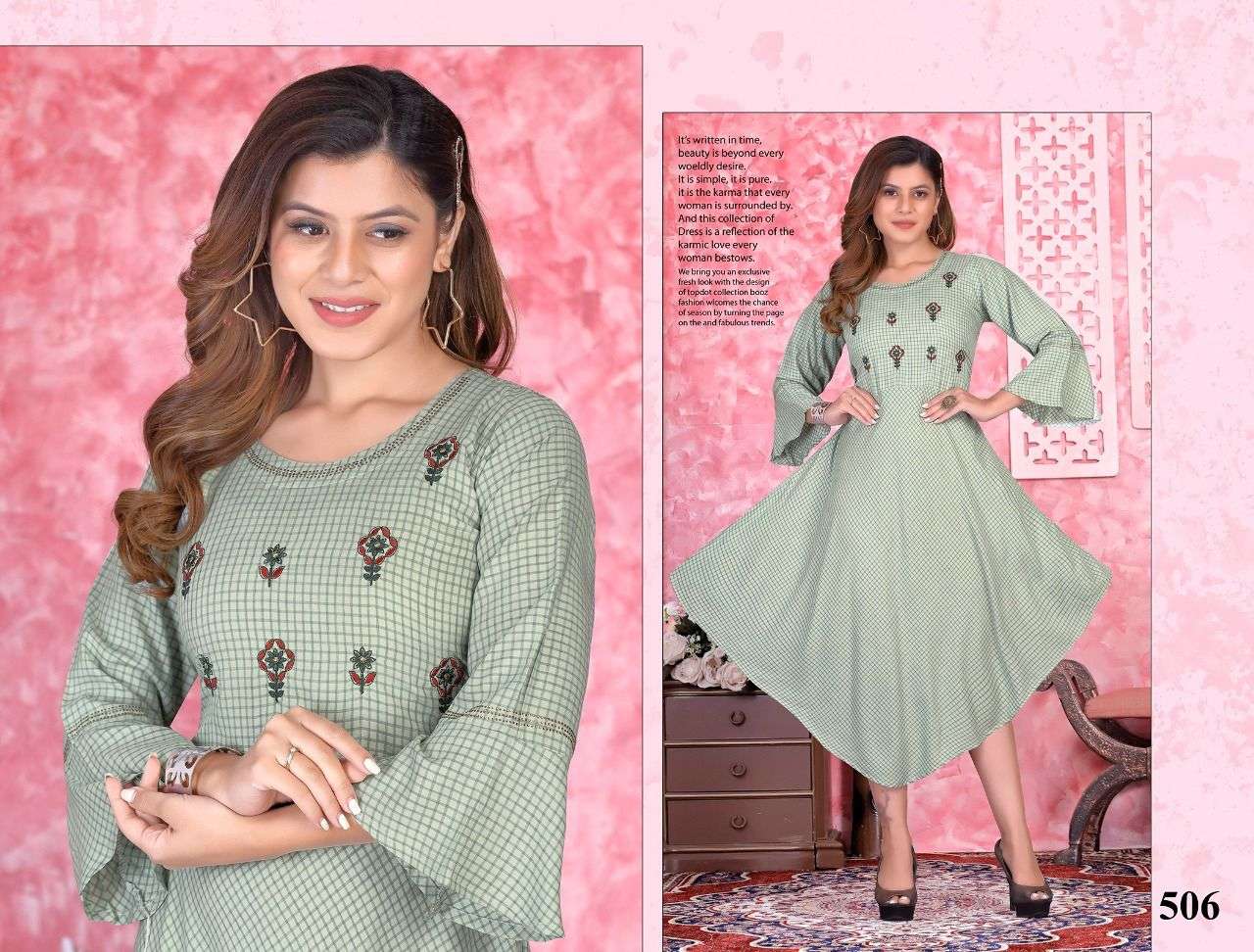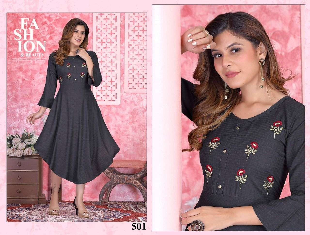Name :- Beauty Queen Canty Vol.1 Design :- 06 STYLE :- A-LINE Kurta Pattern :-Embroidered Size :- M. L. XL. 2XL. 3XL Length :- 46 inch Price :- 425/- |