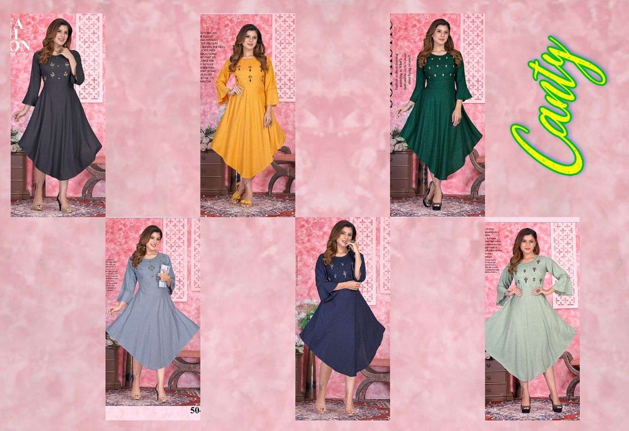 Beauty Queen Canty Vol.1 14 Kg Self Ambosse Bomay Rayon Embroidered KURTI CATALOG WHOLESALER BEST RATE