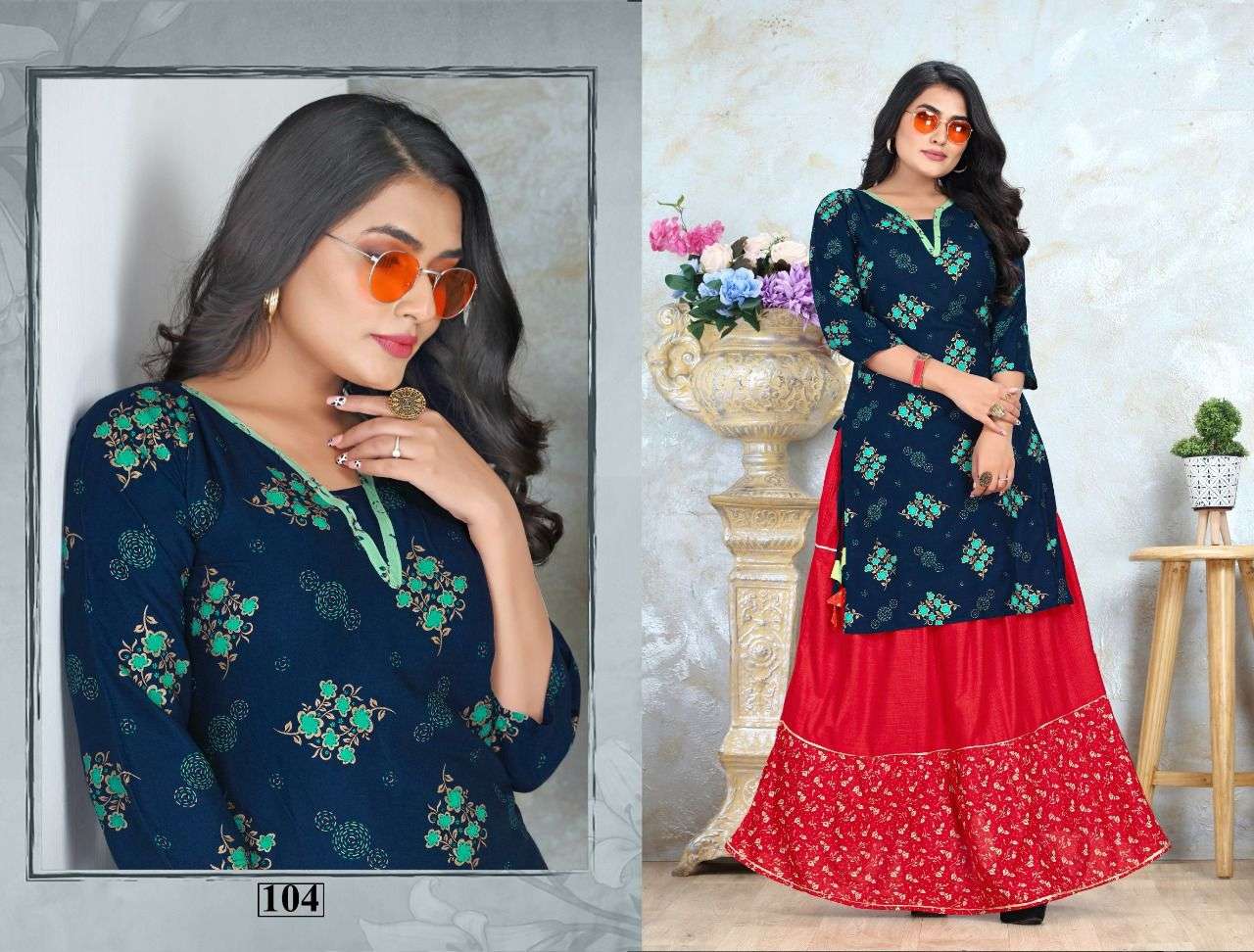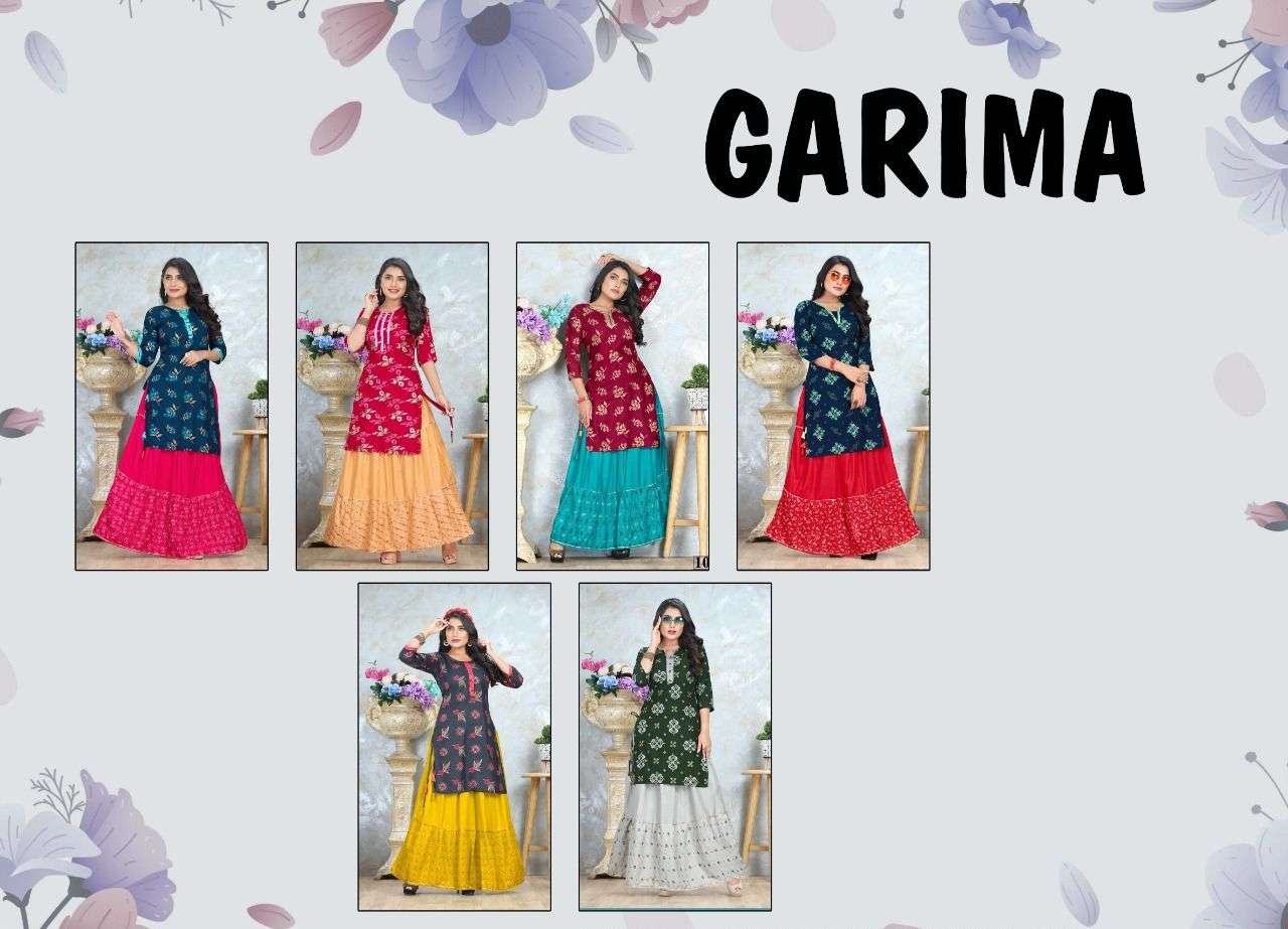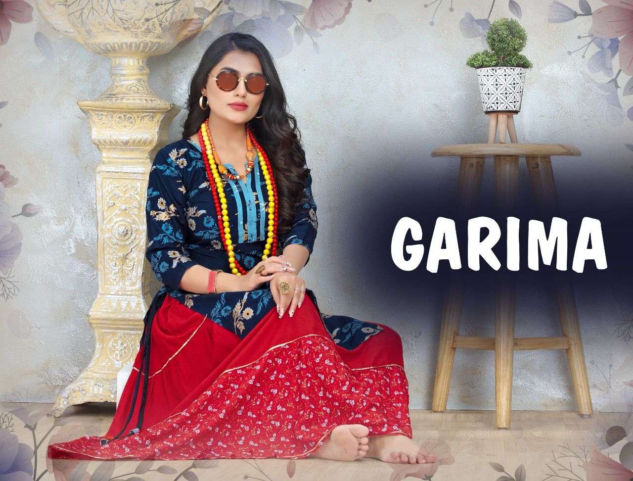 BEAUTY QUEEN GARIMA HEAVY 4 kg Rayon Foil PRINT KURTI WITH SKIRT CATALOG WHOLESALER BEST RATE