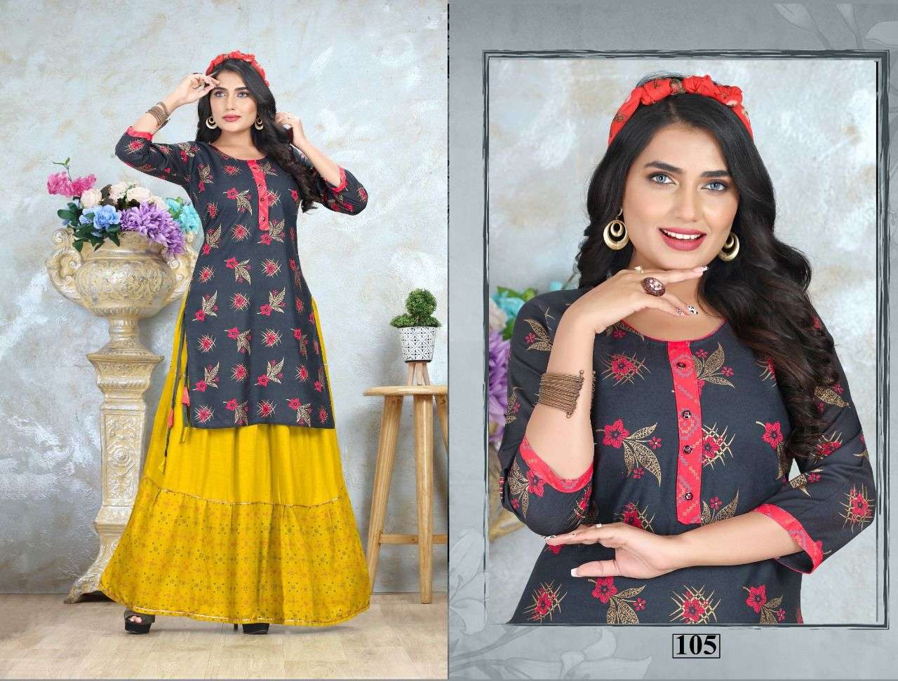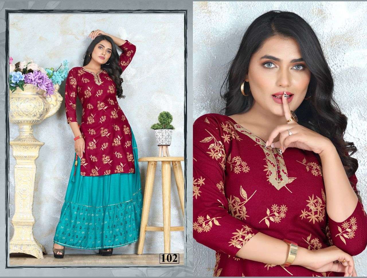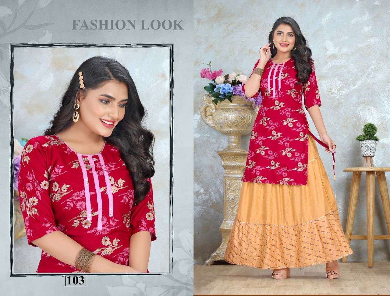 BEAUTY QUEEN GARIMA HEAVY 4 kg Rayon Foil PRINT KURTI WITH SKIRT CATALOG WHOLESALER BEST RATE
